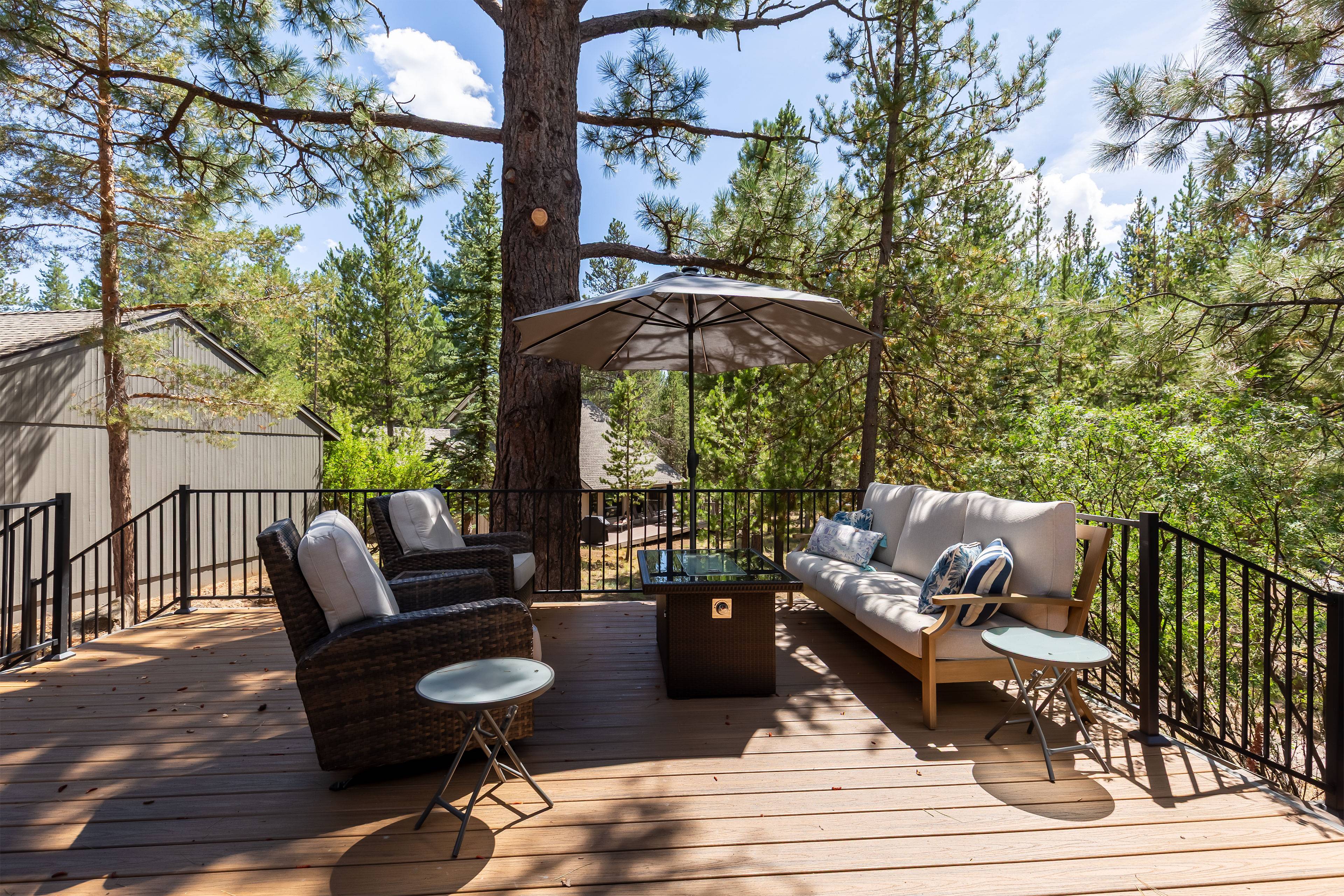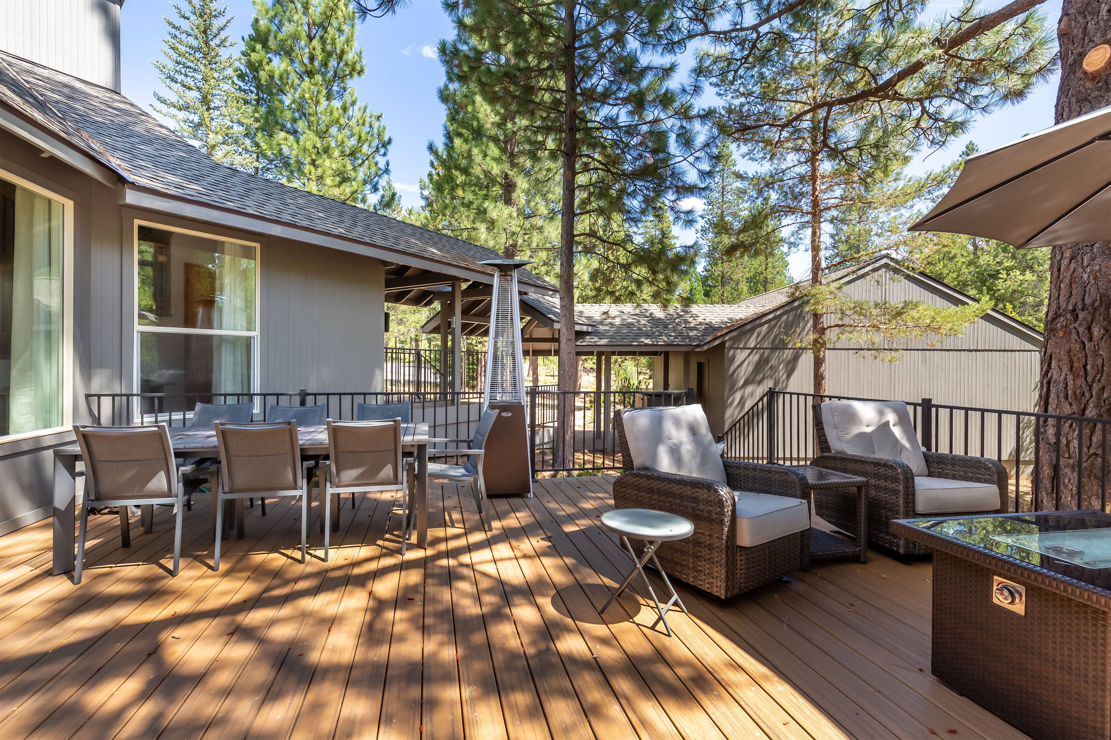Great location, close to pools, parks, bike paths, and the Sunriver Lodge where the wedding was held. The best part of this house is the huge deck under the big, shady pines and comfy outdoor furniture. Also, enjoyed the bikes and cooking a family dinner using the barbeque. Comfy, large home, we had 8 family members ranging in age 9-87!