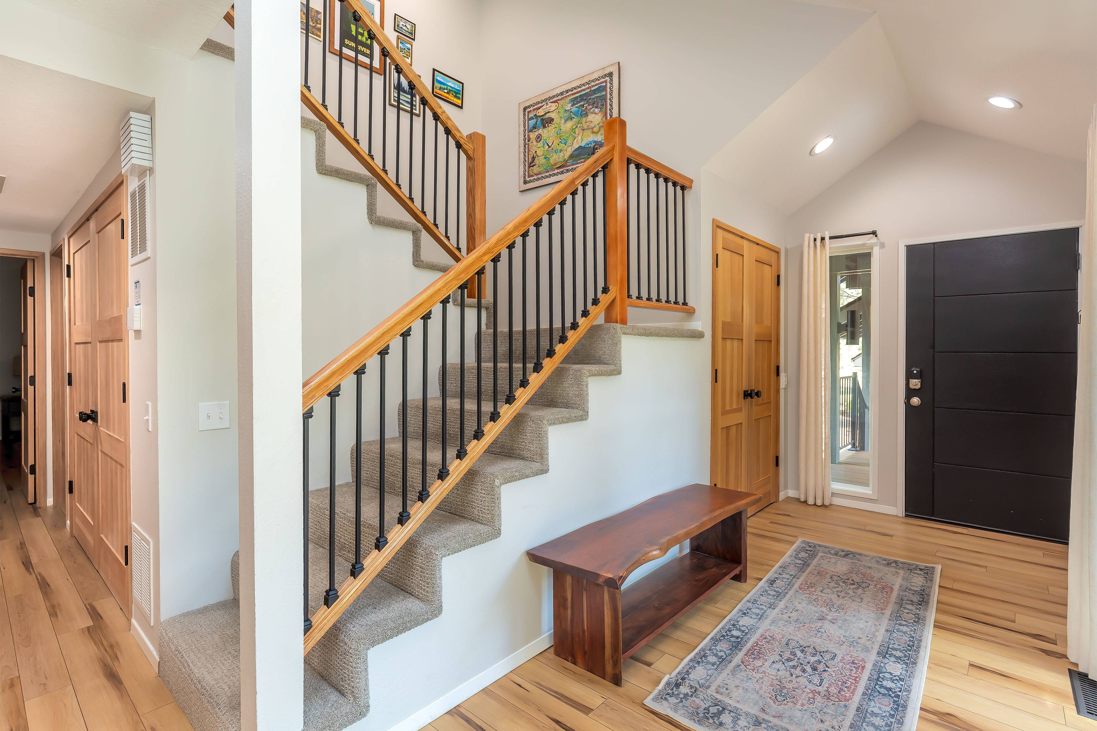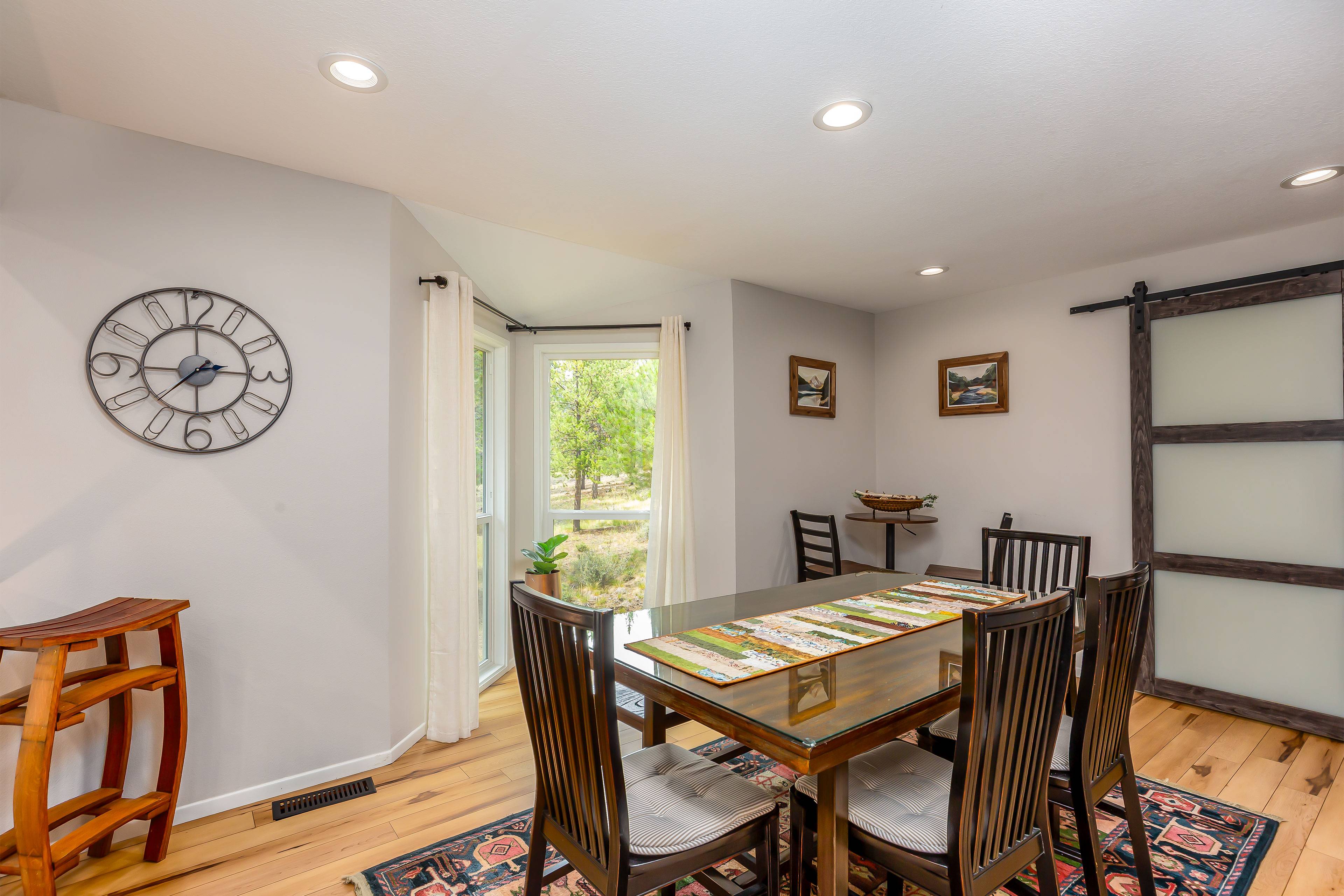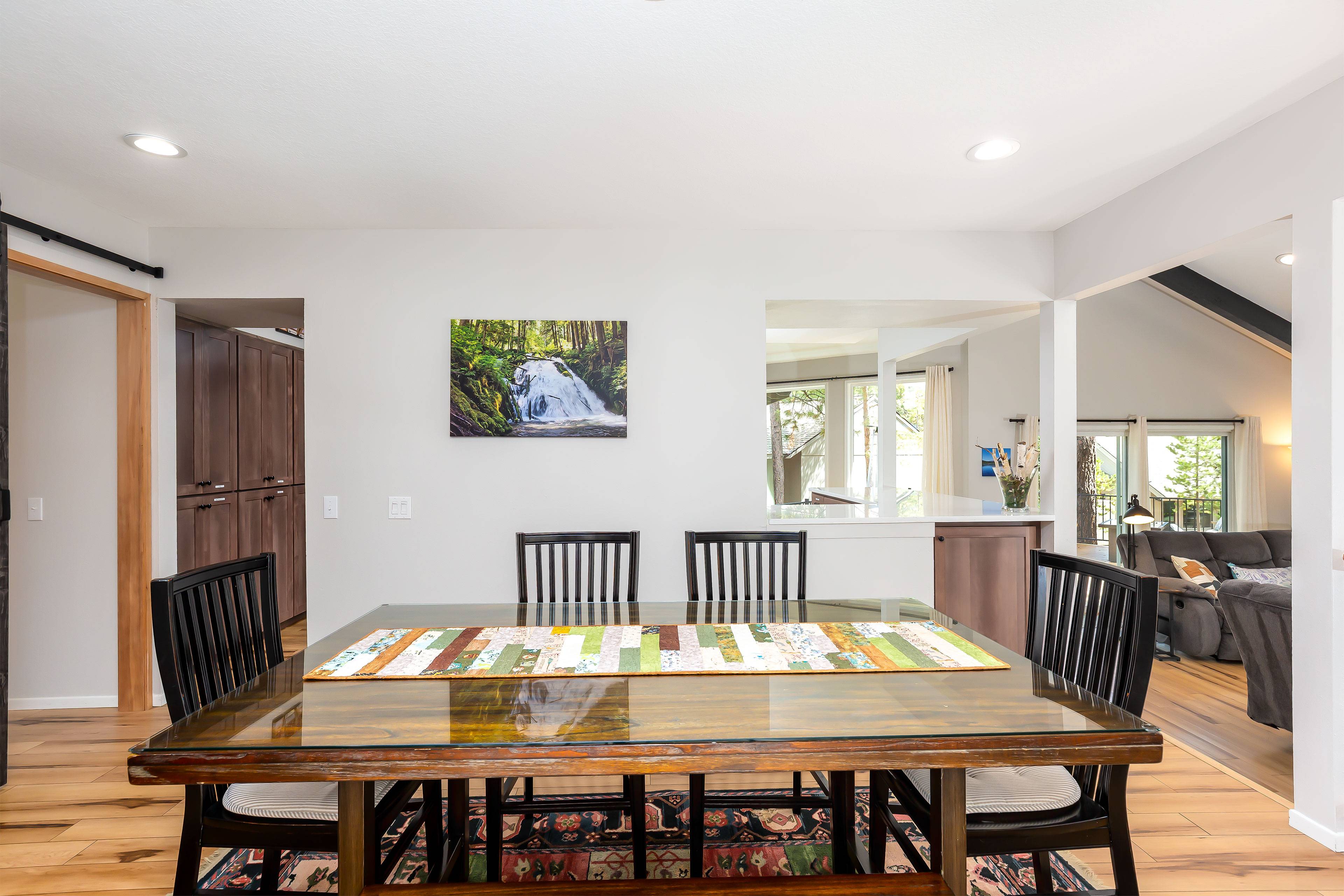 This Sunriver getaway is the perfect retreat for families looking to create unforgettable memories together! With its open and inviting living space, soaring vaulted ceilings, and floor-to-ceiling windows, this home is bathed in natural light—ideal for game nights, movie marathons, or just cozying up on the reclining sofas with a good book. The Smart TV with Roku ensures endless entertainment options, while the warm glow of the fireplace makes chilly evenings extra special.