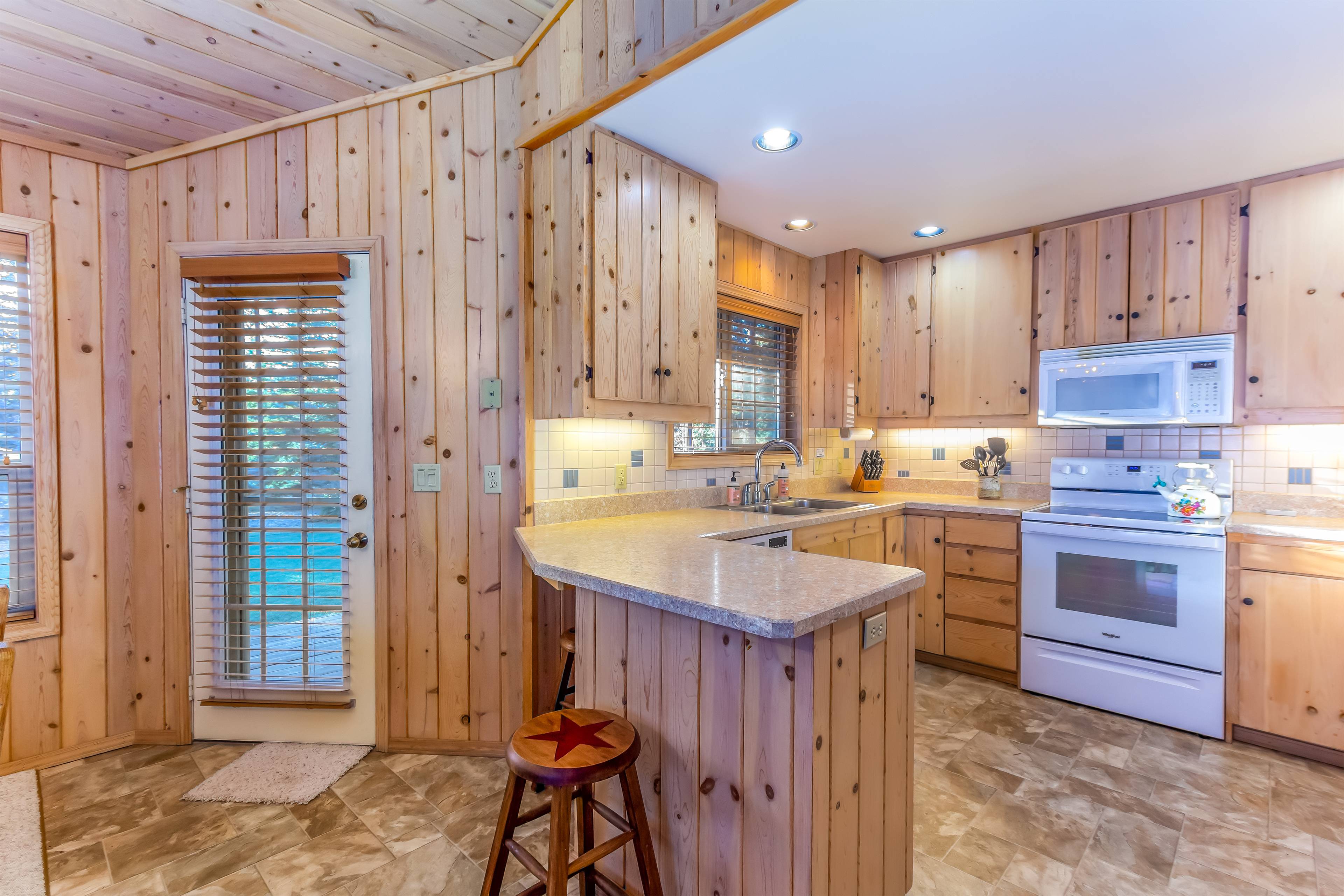 This cabin is gorgeous and perfect for a holiday get away! We are a family with two little kids and we all had a great vacation here. The kitchen is super well stocked with everything you need. The home has plenty of room for family gatherings with a beautiful dining table and lots of seating in the living room along with patio seating. Bedrooms are great too. Two king bedrooms and one single bed room along with a bonus room with bunk beds. Kids can play there or it’s a good place for family movie night!! The house is on a quiet street with access to the bike trails, the North Store and you can easily ride bikes to the mall or head out to Benham Falls. We rented bikes and a child carrier, however, the host already has 4 bikes there for your convenience. The patio and backyard is nice, too, even has a play structure. We give this a 5 star and would highly recommend this home!