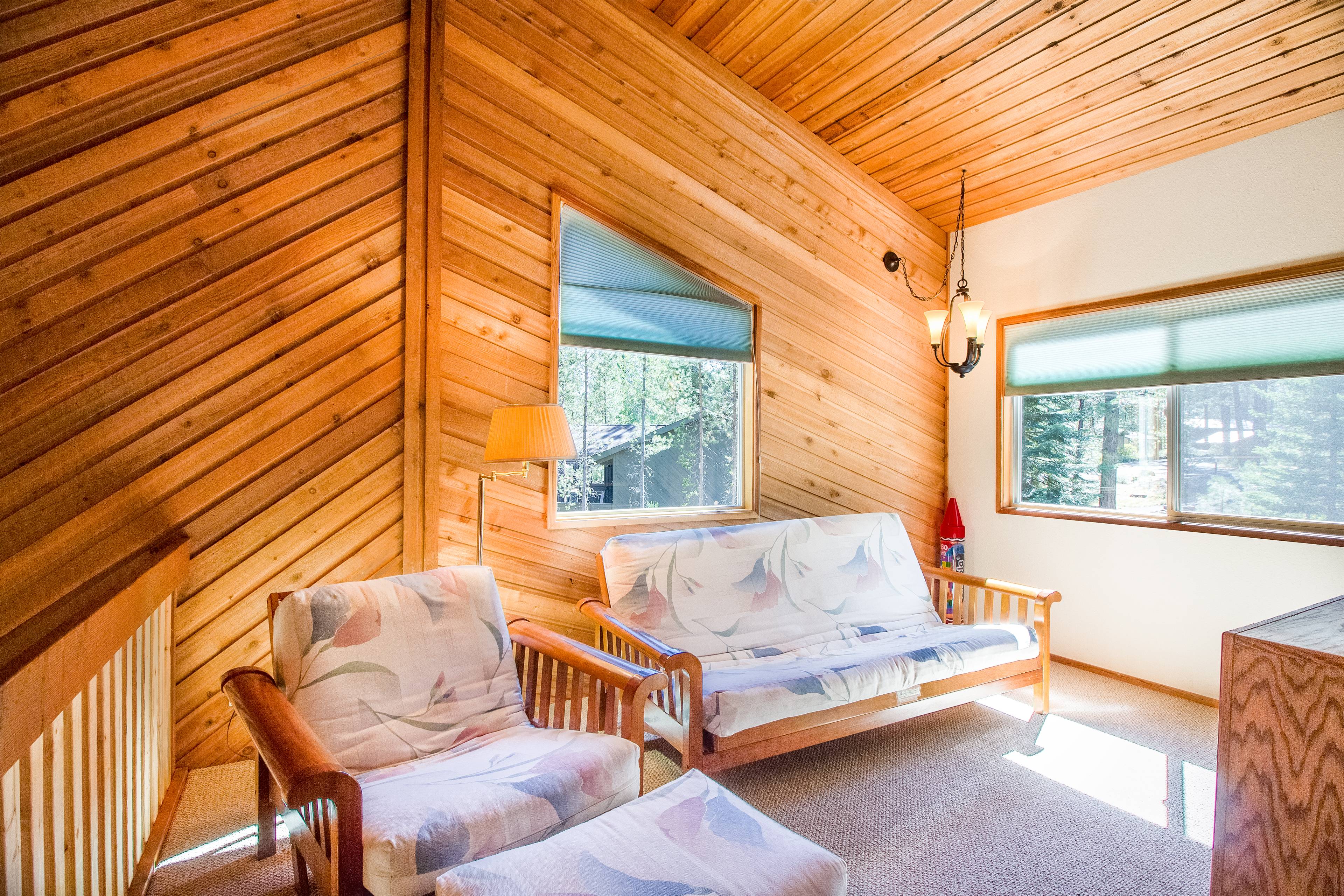 Head upstairs for the second bedroom, an ensuite bedroom with a King bed. Also upstairs is a loft with a Queen futon for extra sleepers. There is a portable A/C unit for guests to use on those warm summer days.