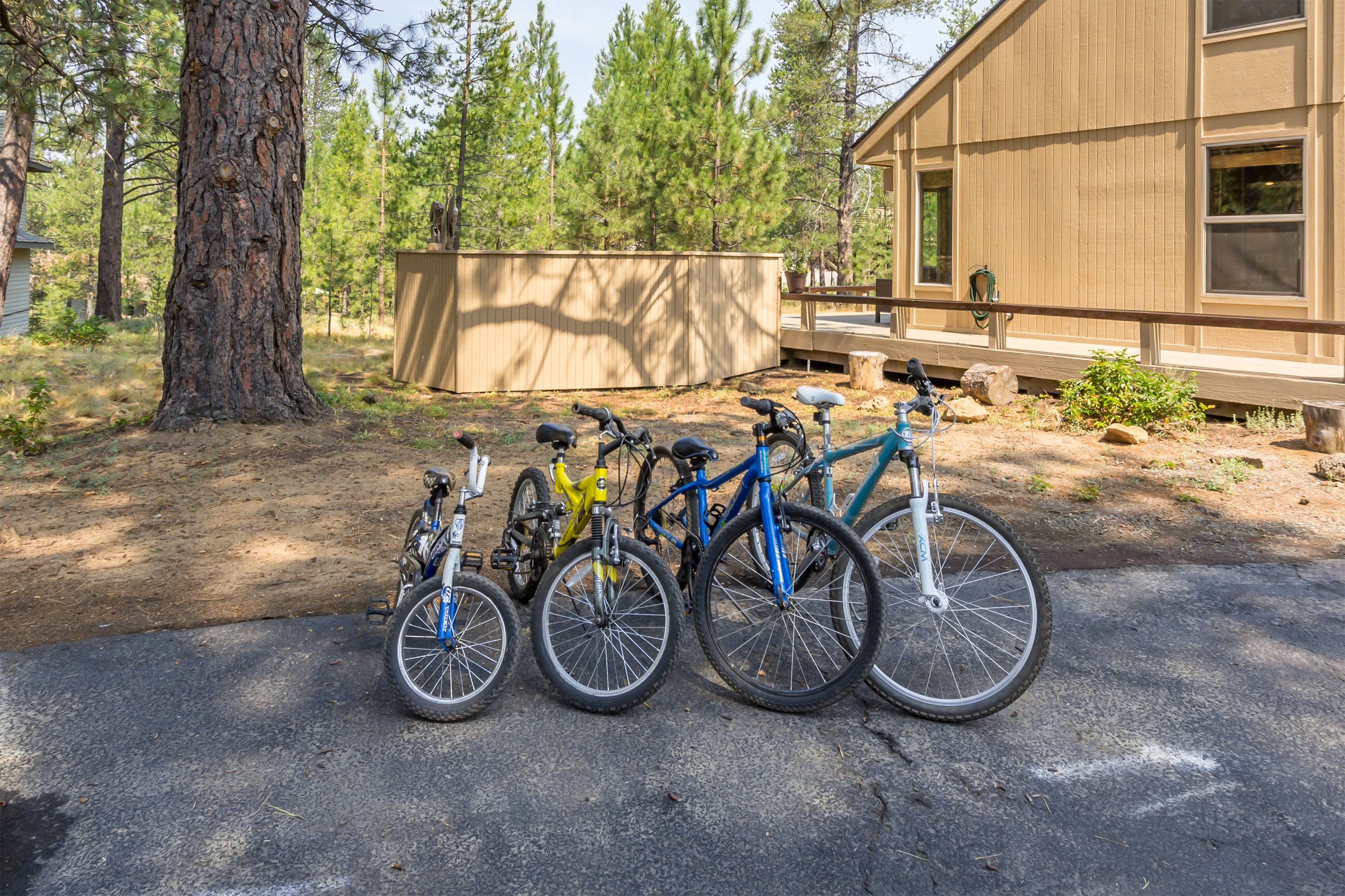 When you are ready to get out and explore Sunriver, head off down the path on foot, or hop on one of the 3 adult and 2 kid's bicycles waiting for you in the garage, play some cornhole or mini ping pong. 4 Pine Ridge boasts a central location, making for a short trip to the Sharc or to Fort Rock Park where you can enjoy a playground, large, open field, picnic benches, tennis, and basketball courts. Shops and restaurants, horseback riding, and lazy summertime floats along the Deschutes River are all accessible within a few miles.