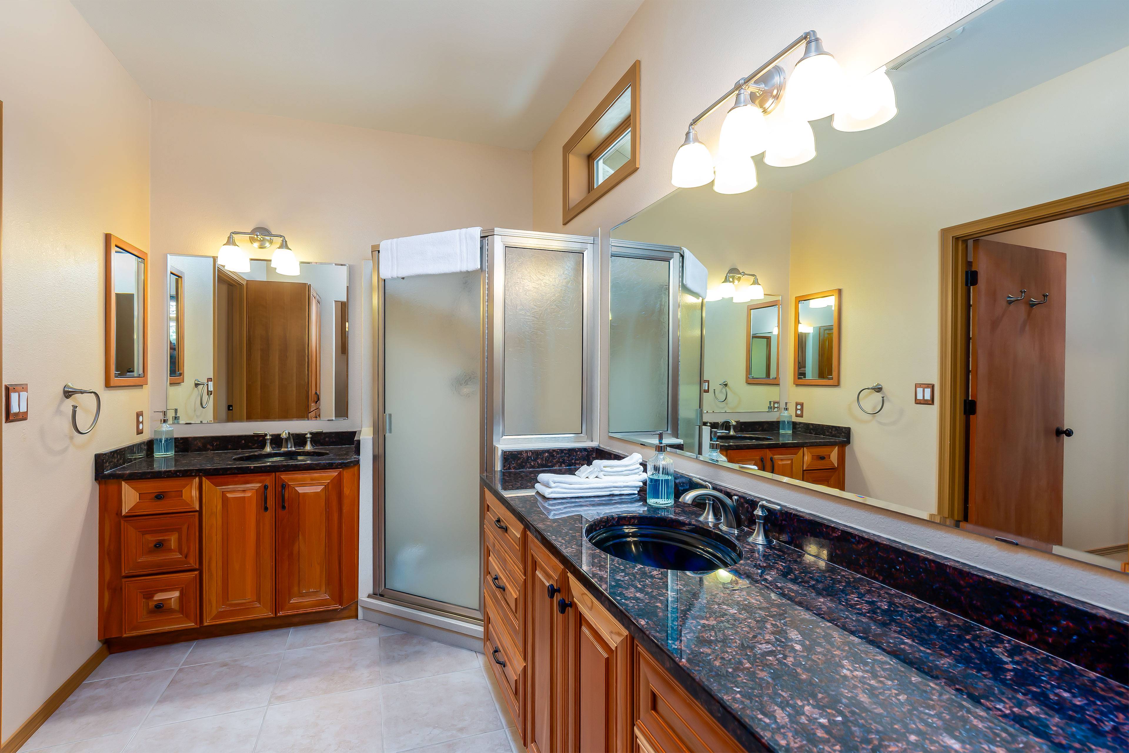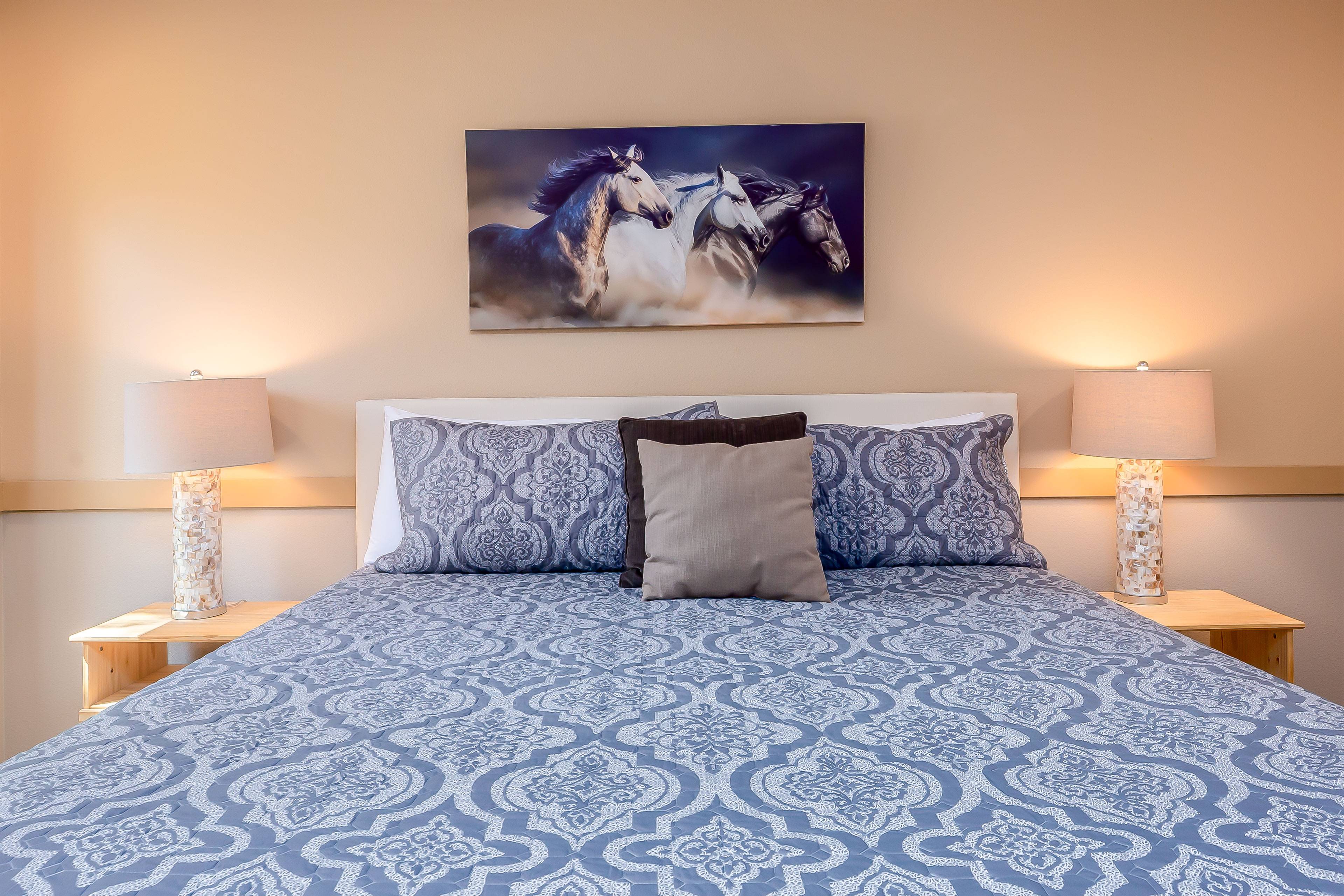 When you're ready to recharge, retreat to one of the three comfortable bedrooms. The primary suite has a king bed and private bathroom with a walk-in shower. Bedrooms two and three each have a king bed, giving everyone plenty of space and privacy.
