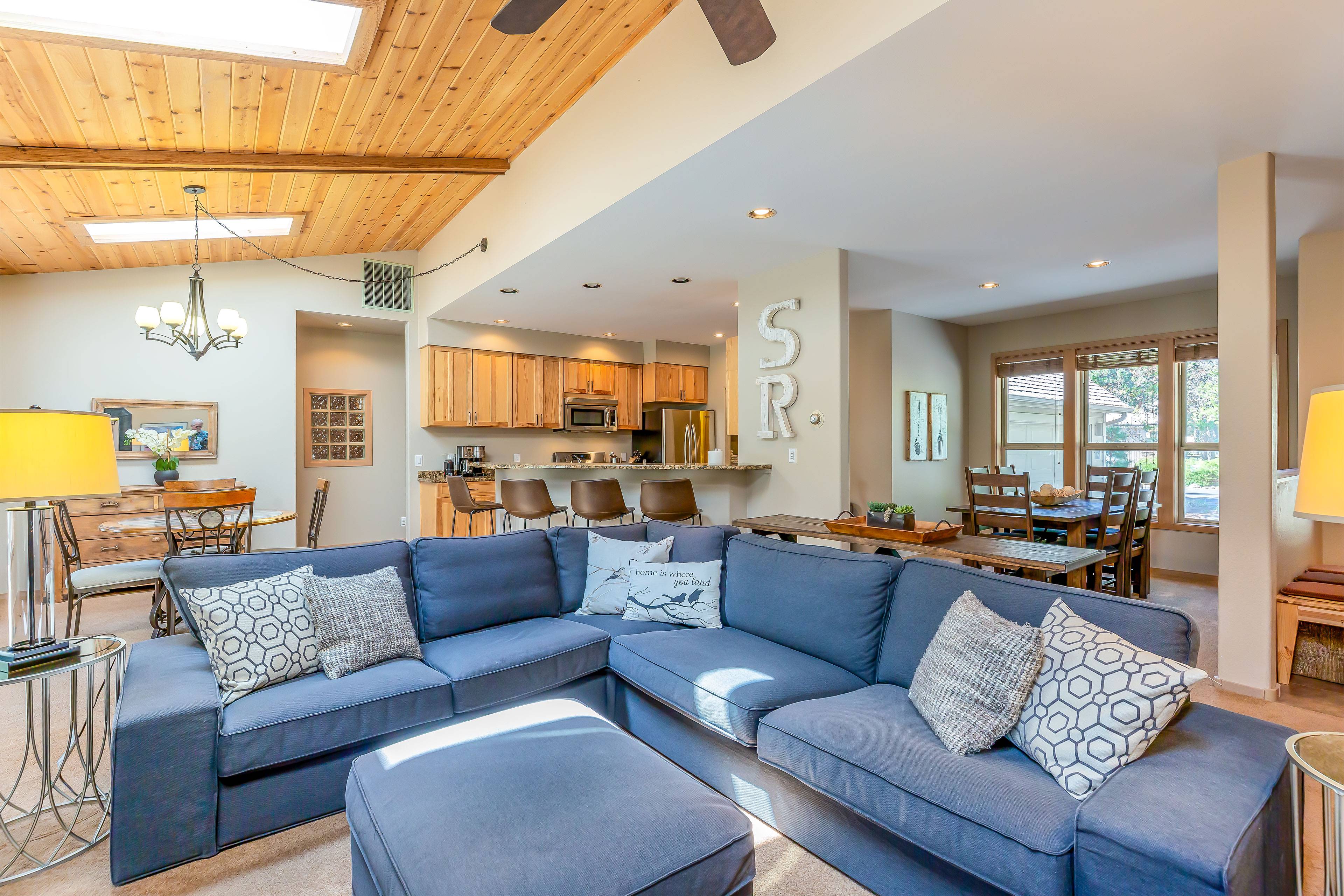 We had an absolutely wonderful stay at this beautifully appointed home in the heart of Sunriver! The house is spacious, welcoming and was just what we needed for a family getaway! We were impressed by how well-equipped and well-maintained this property is. The cozy loft was perfect for our grandsons and their cousins. Perfectly tucked upstairs so mom, dad and the grandparents could have a little "adult" time. The kitchen is well stocked, the beds are comfortable, and the cozy living room with a gas fireplace invited long conversations and hosted a lively game of charades! There's lots of dining area available. A big plus is the outside deck with hot tub. The kids and adults alike enjoyed this feature! The location was an absolute plus. The kids loved the biking trails and the feeling of independence as they explored their way to a near-by park. We shopped at the village, ate at one of the local restaurants and topped the day off with ice cream. It was such a treat to come back to a space that feels like home - only better! My family recommends this lovely home to anyone heading to central Oregon.