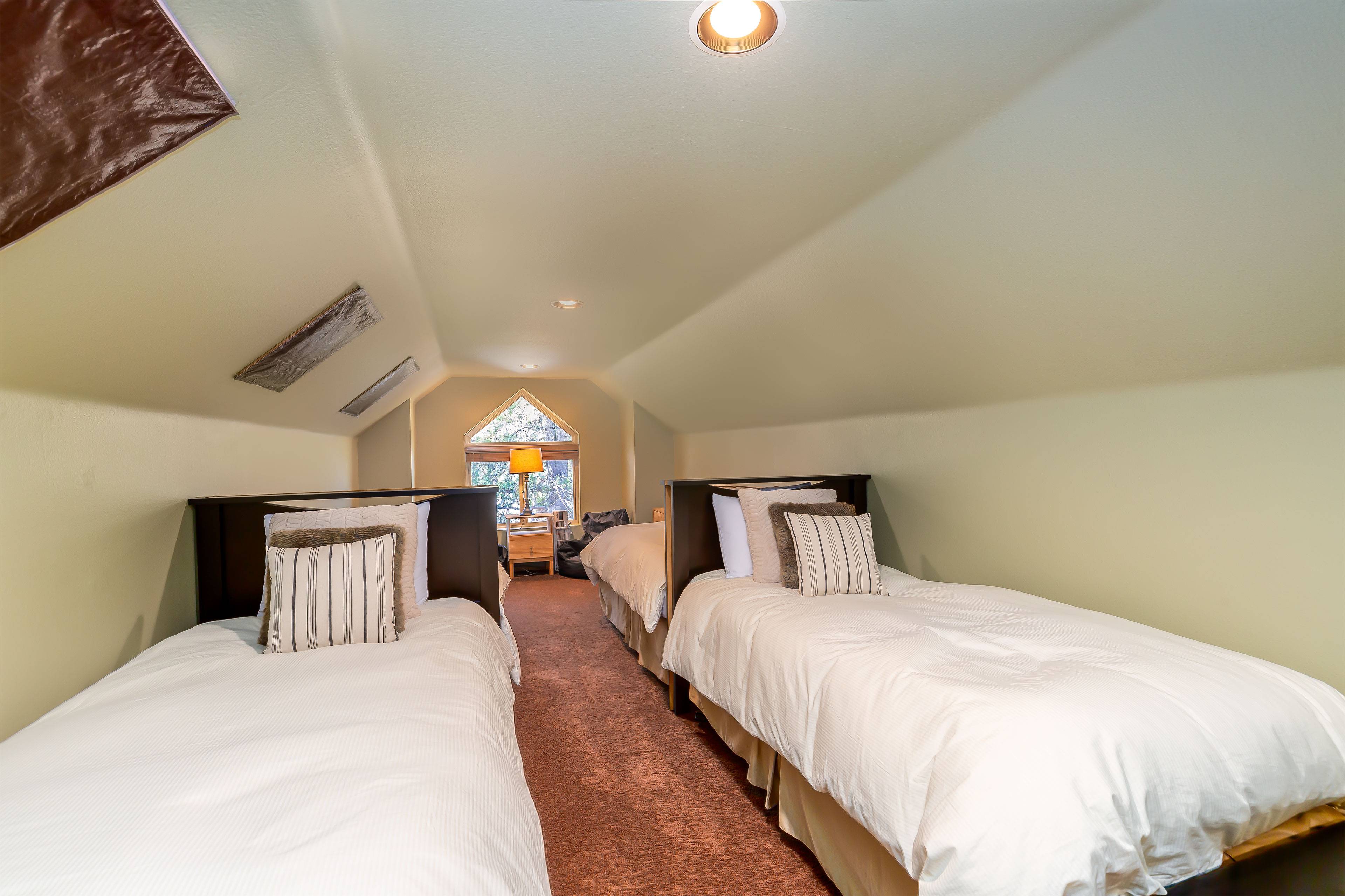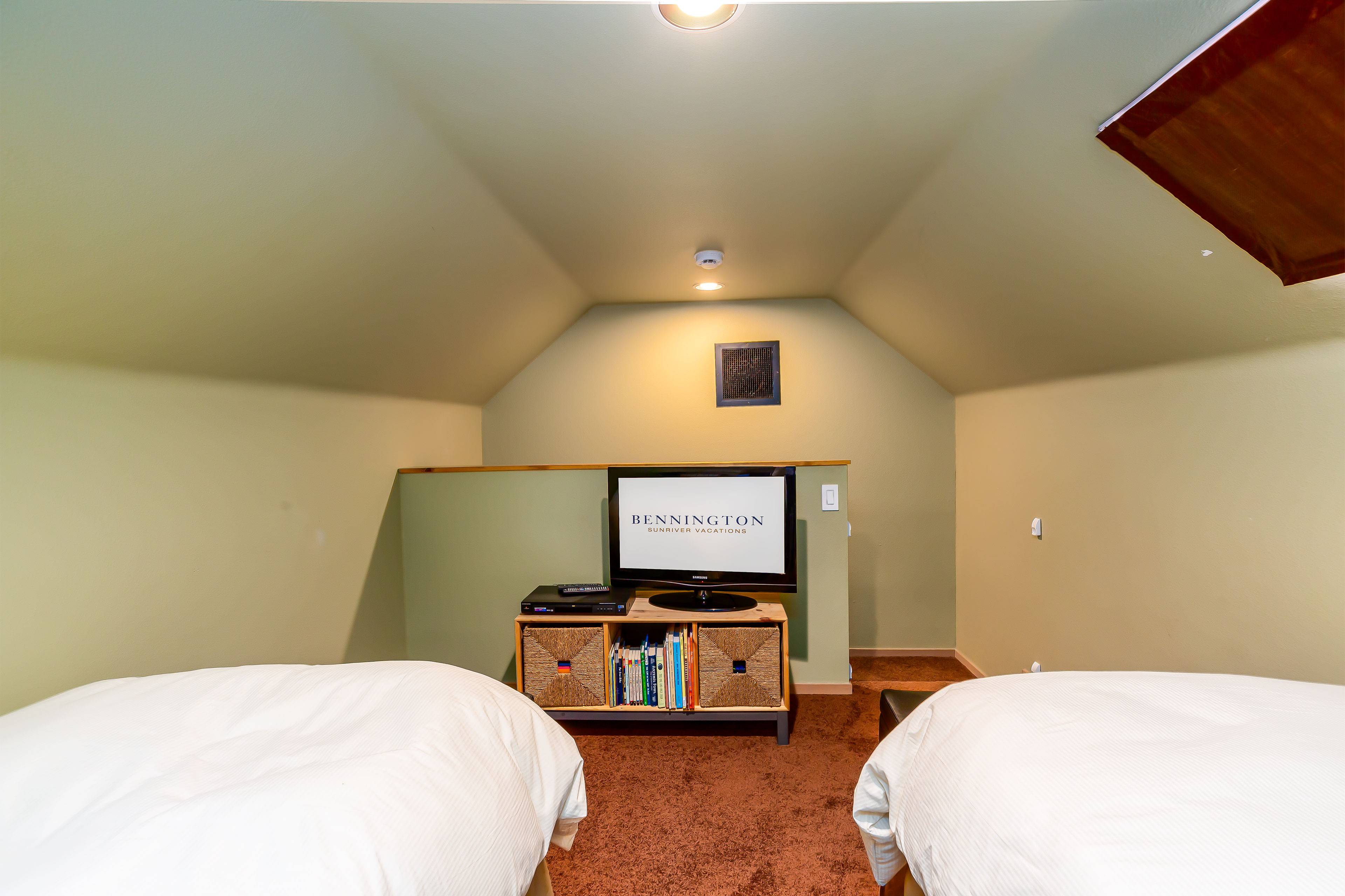 Upstairs, the bonus room offers four twin beds, and a Smart TV — an ideal hangout for kids or teens. For more indoor fun, guests can play a friendly match of Ping Pong.