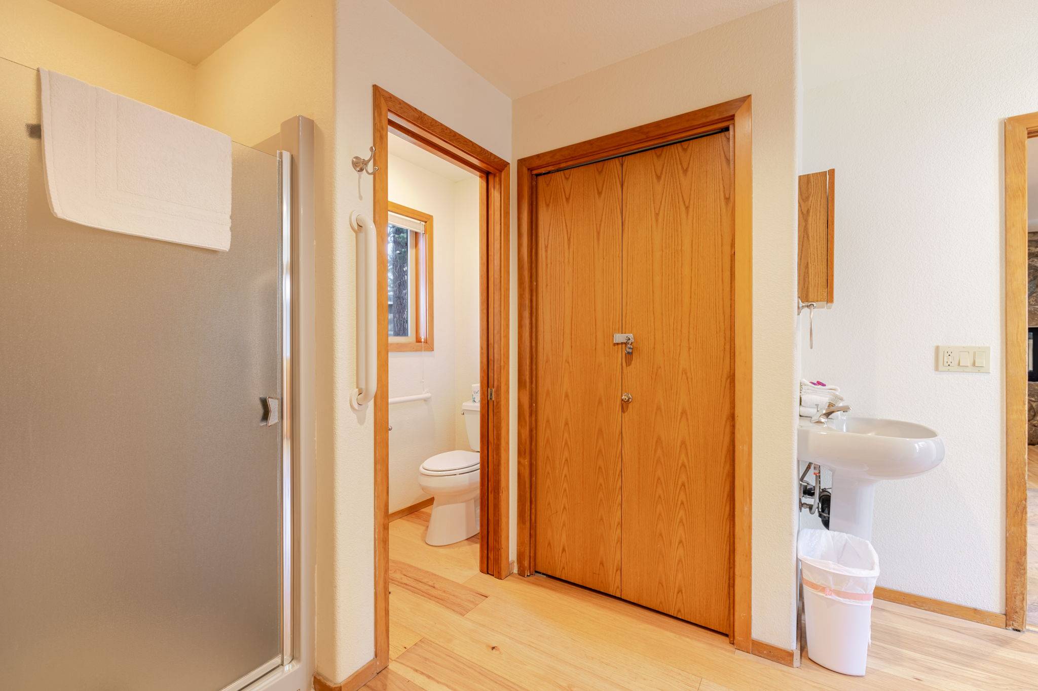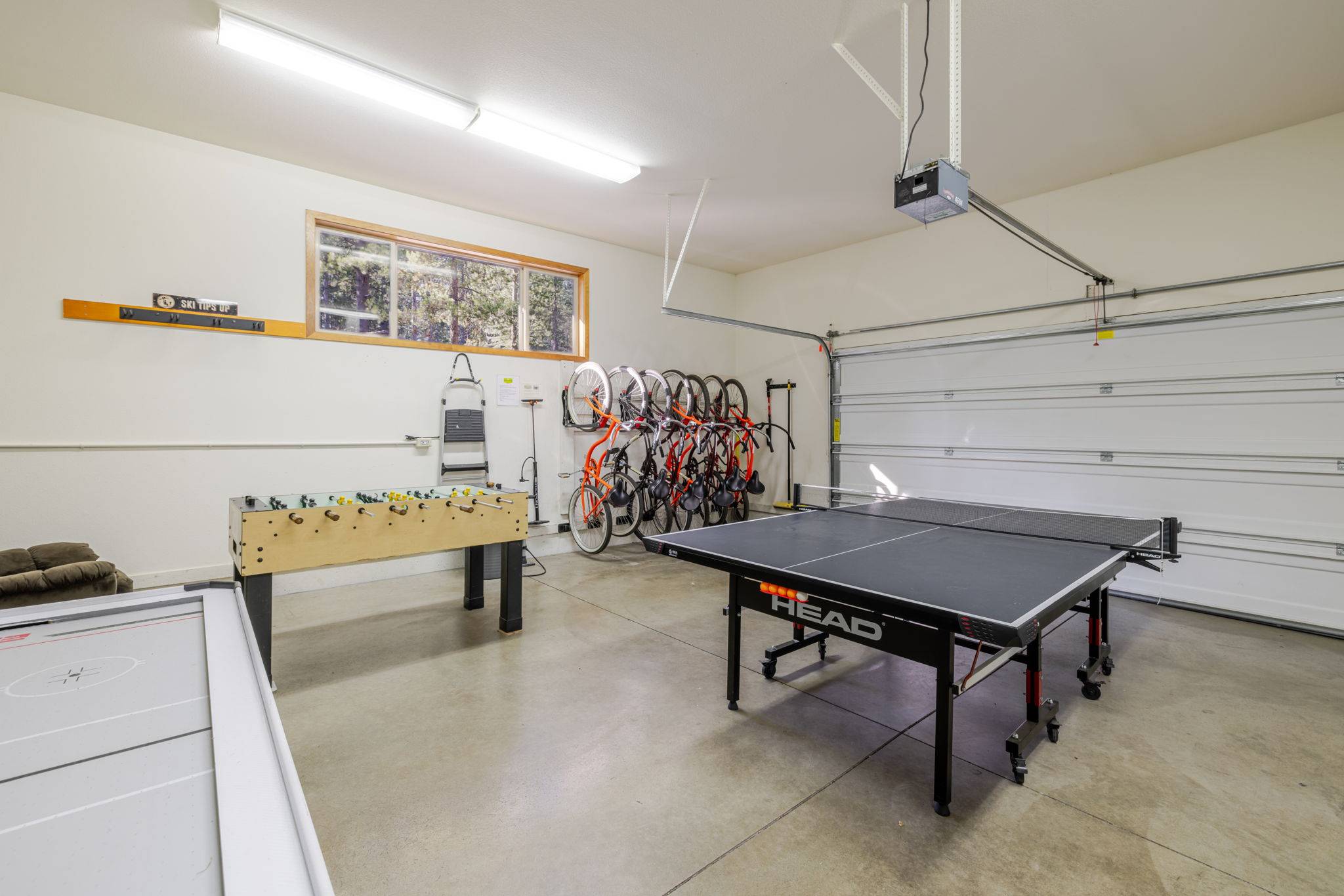 This house has a lot of big closets, carpet, and fold out beds. It can easily fit the allotted 12-14 people on the description. The Hot Tub is enclosed on the patio, which gives an air of privacy. The Garage is large and full of fun toys. This house is close to the entrance of the Sunriver area, and travel to the mountain is quick and easy.