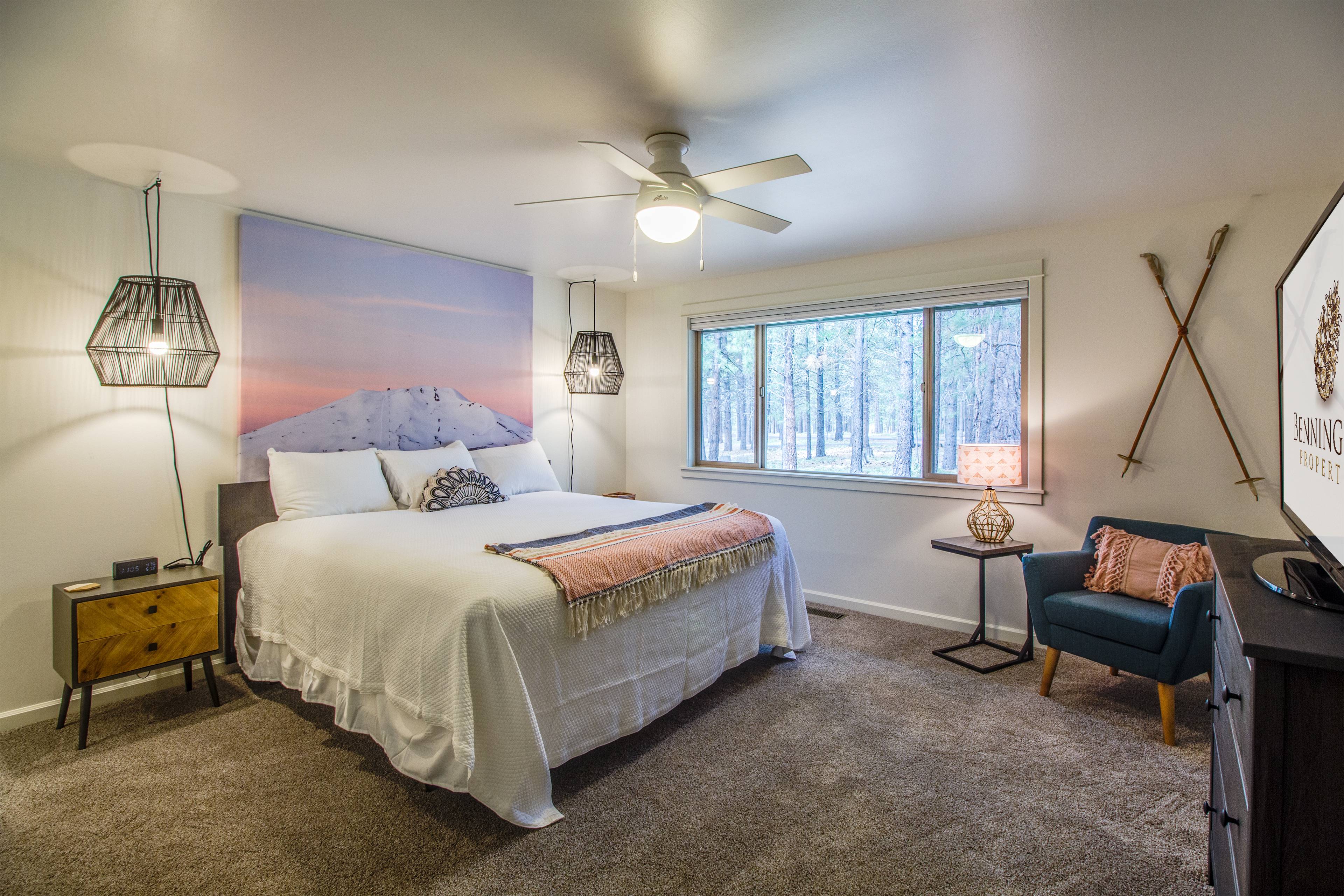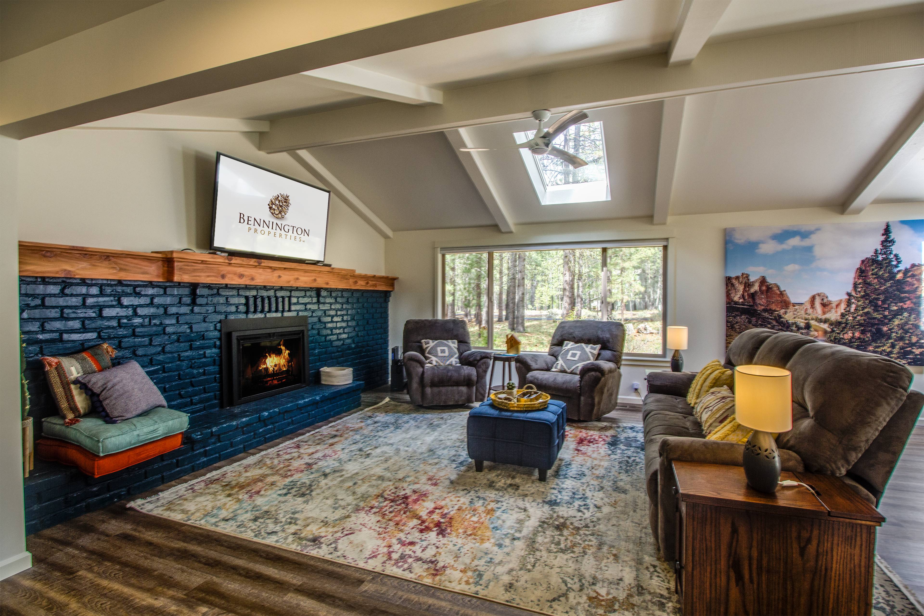 We loved how clean and open the home was. I loved the vaults, the skylights, the warm gas fireplace with hearth to sit on. The furniture was very comfortable and the beds were very comfortable. I love the fully stocked kitchen with anything you could possibly need. I was very impressed with that. I love the newly updated comfortable, modern feel of the home. We loved the wood floors. We loved the remodeled bathrooms. And we're excited to see that they will be putting in an outdoor hot tub and fence. I love the location of the home being so close to the park for my little one to go play. I loved the room with a double bunk beds that all of the kids could share. I loved that both the master bedrooms had king size beds and closets and dressers that we could put our clothes in, so we didn't have to live out of our suitcases. The 2 Quartz Mountain Lane home is a very comfortable and beautiful place to stay in Sunriver. We will definitely be booking this house again!