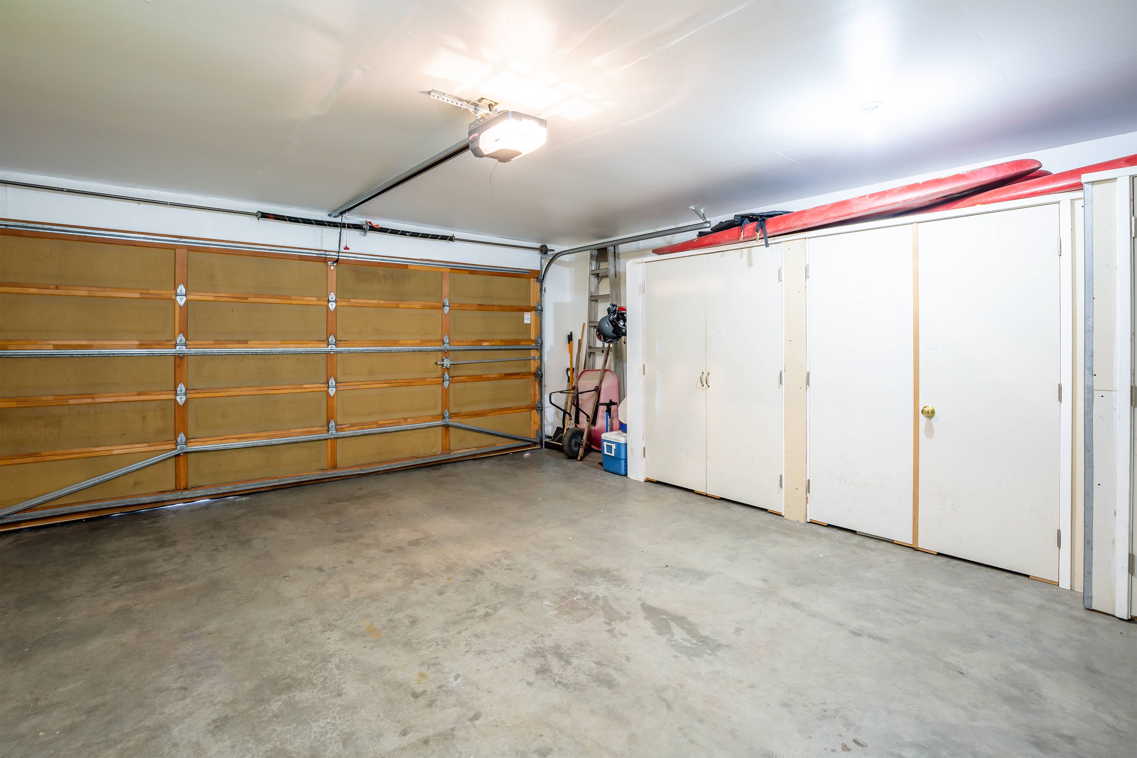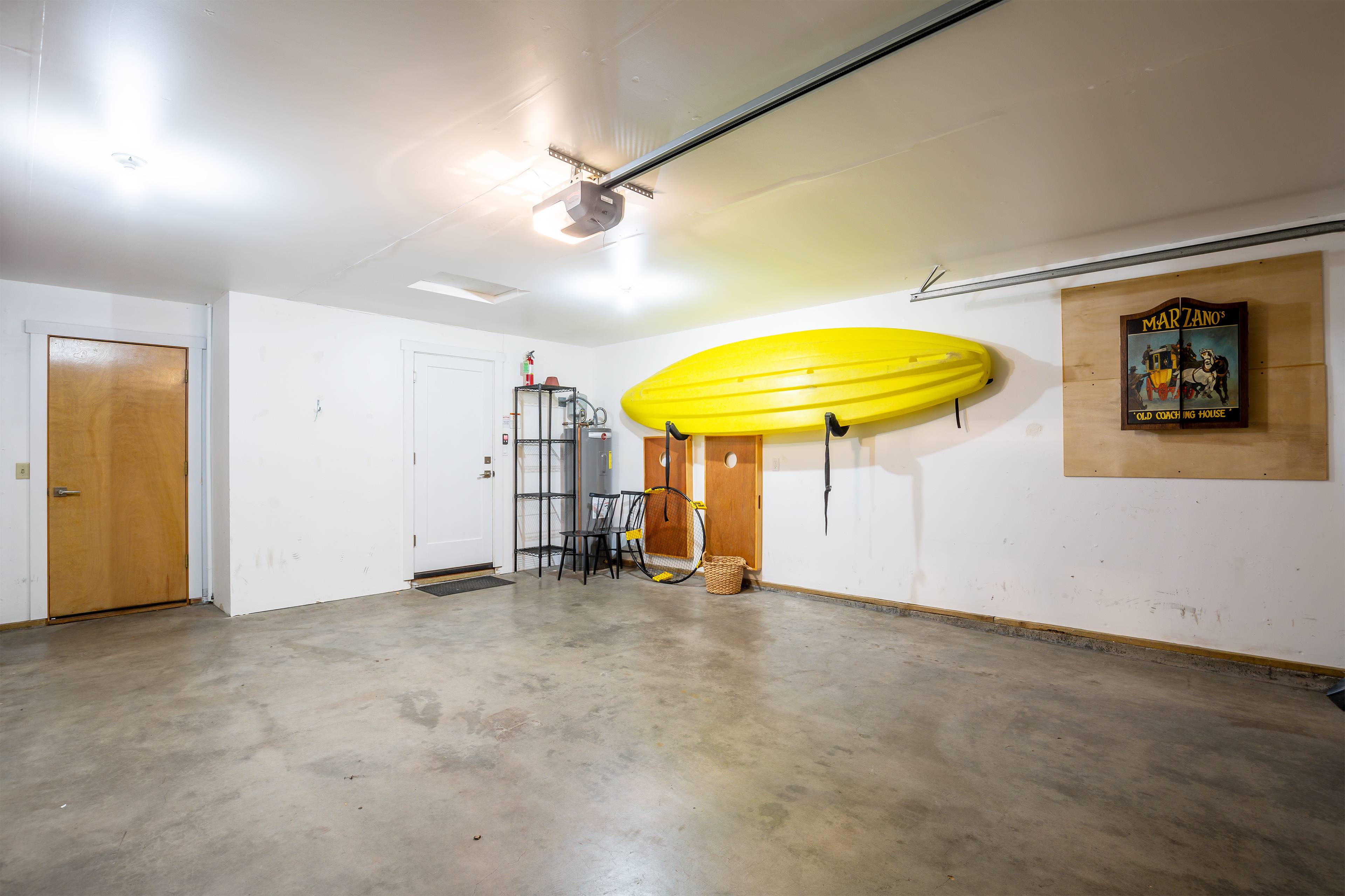 The two-car garage isn’t just for parking – it’s packed with fun stuff, including bikes, kayaks, and even a dartboard for those family tournaments.