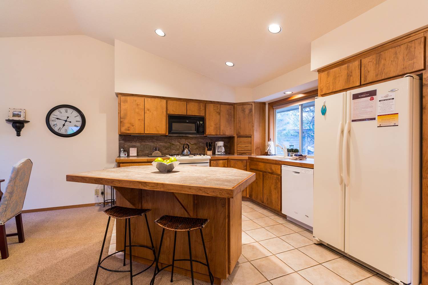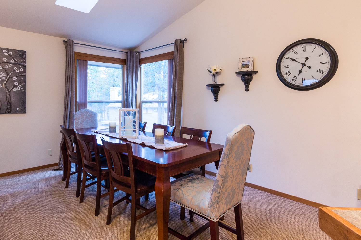 This spacious, reverse-living home is your perfect getaway home in Sunriver. Cozy leather sofas, gas fireplace and tons of light welcome you in the open-concept living area. The kitchen is fully stocked with all your cooking essentials and the adjacent dining room offers seating for 8 plus 2 at the breakfast bar. Curl up with your favorite book in the sitting room and when you are ready to retire, a huge king ensuite with private bath round out this level.