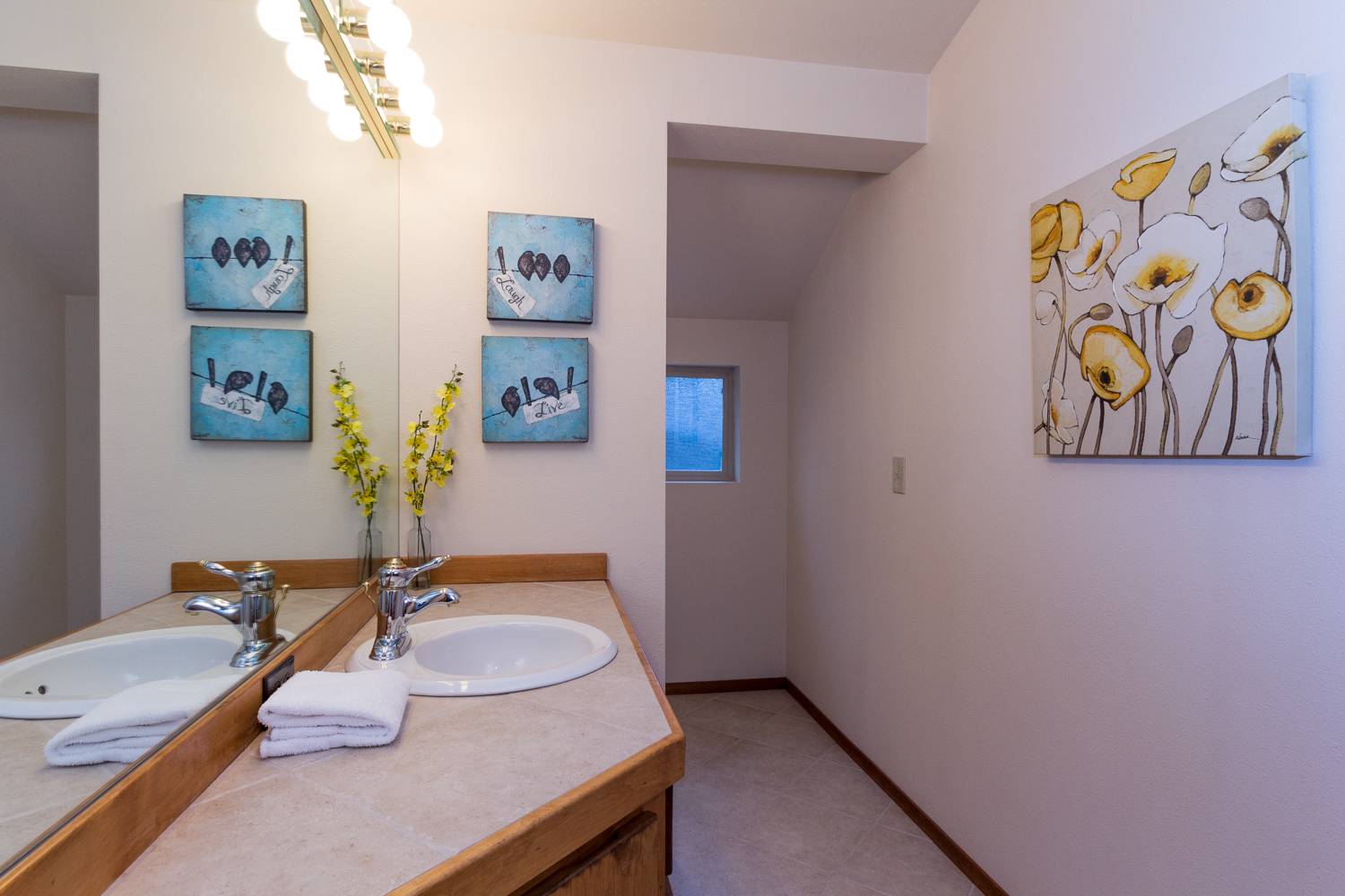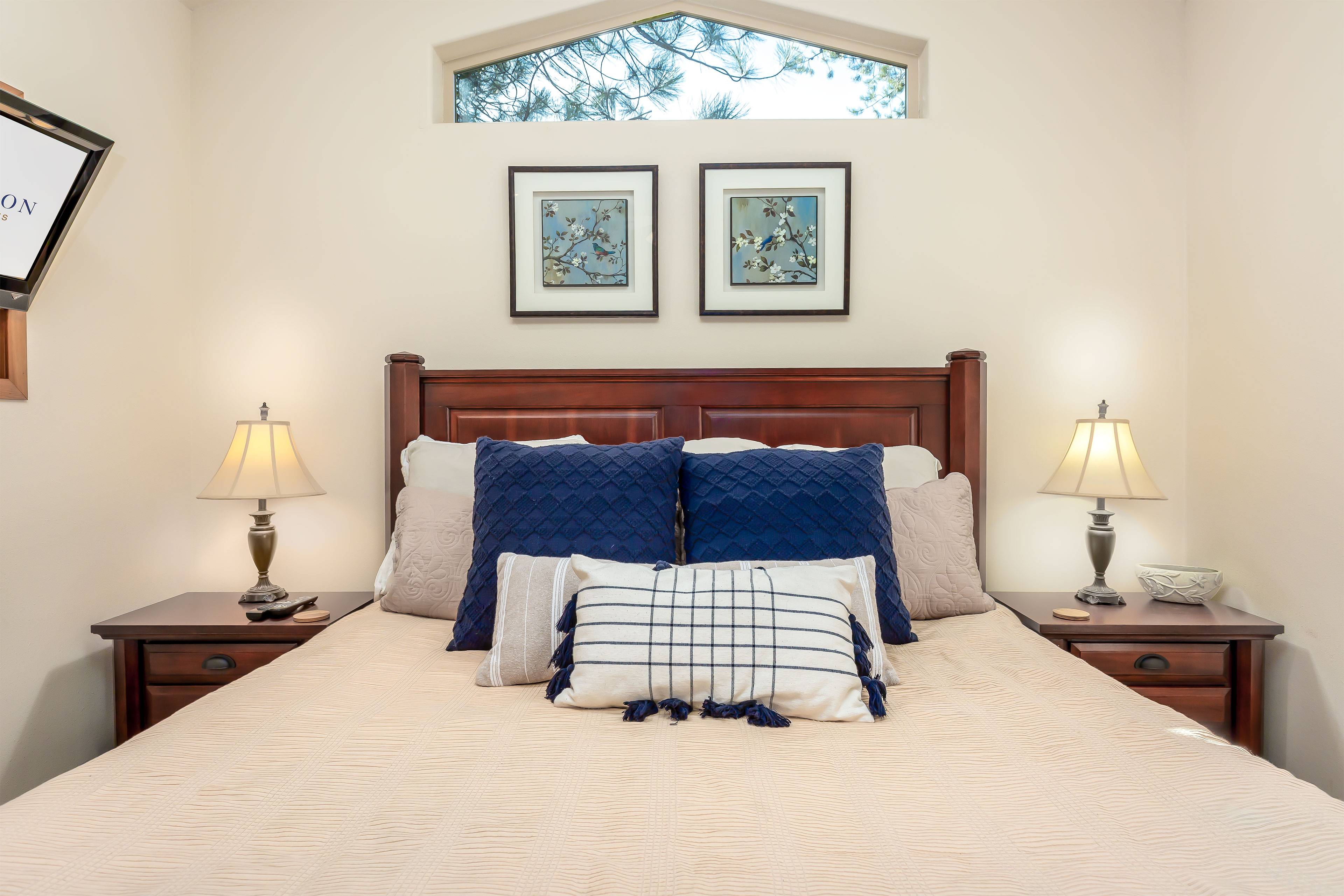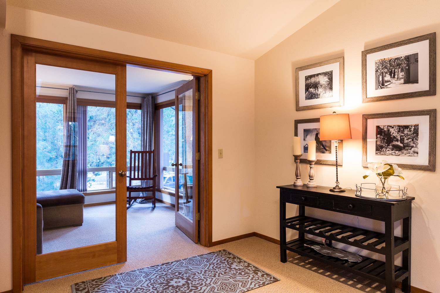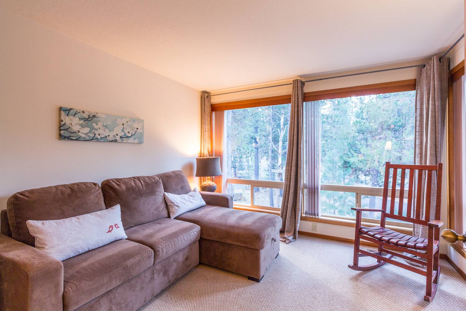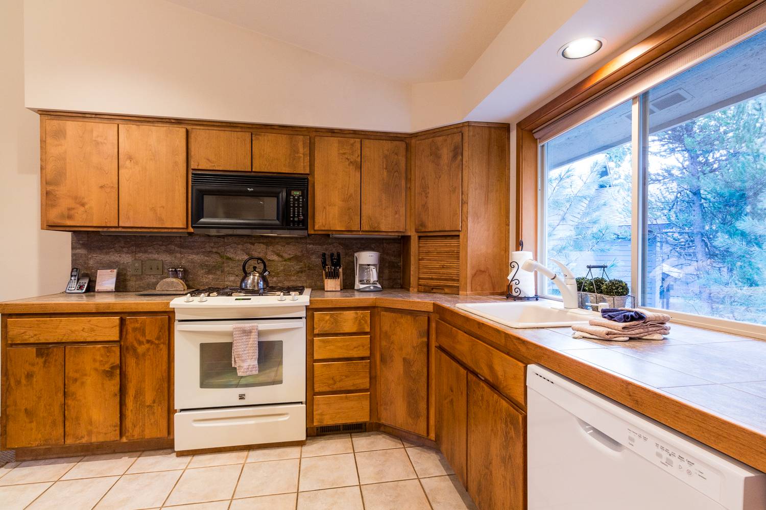 This spacious, reverse-living home is your perfect getaway home in Sunriver. Cozy leather sofas, gas fireplace and tons of light welcome you in the open-concept living area. The kitchen is fully stocked with all your cooking essentials and the adjacent dining room offers seating for 8 plus 2 at the breakfast bar. Curl up with your favorite book in the sitting room and when you are ready to retire, a huge king ensuite with private bath round out this level.