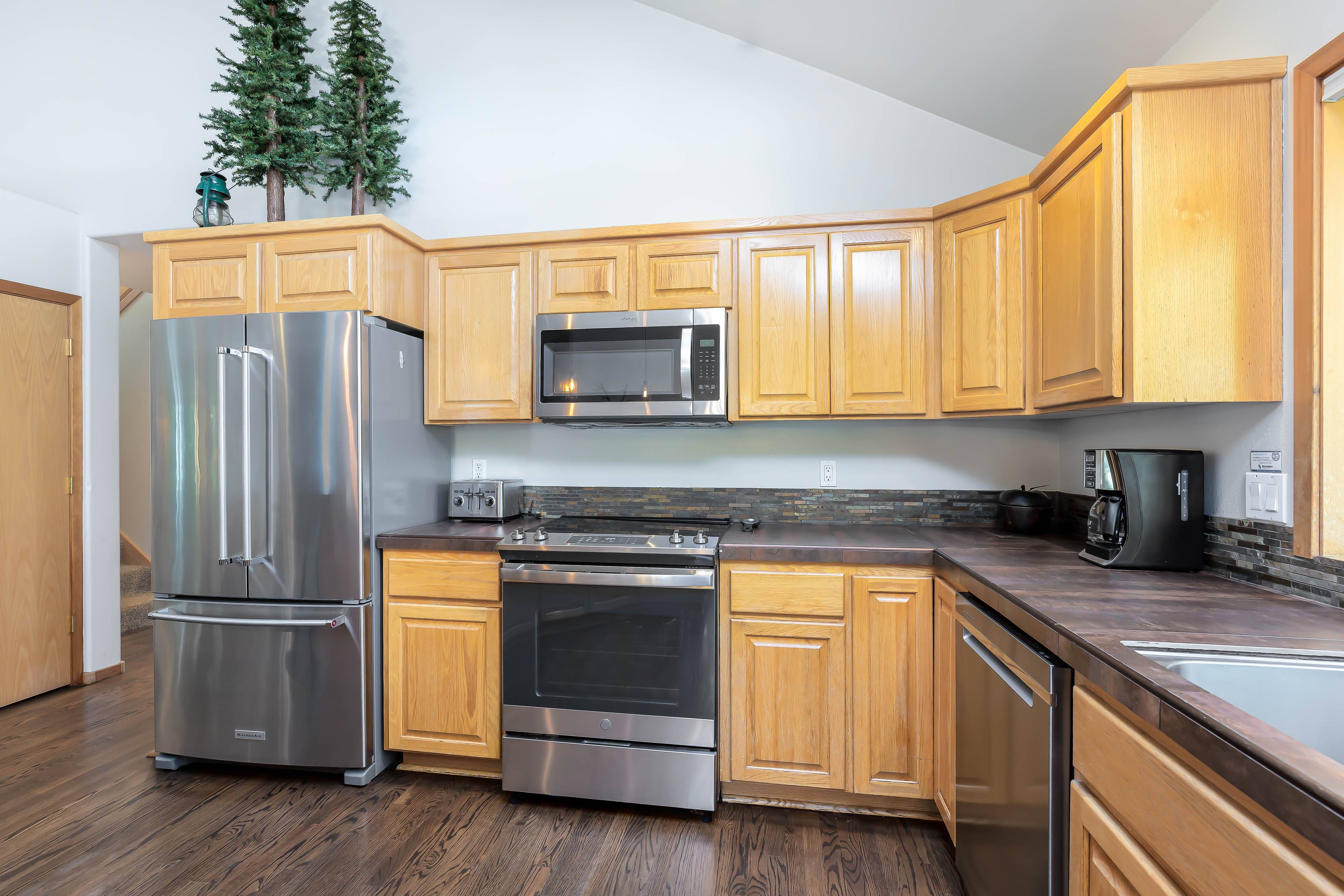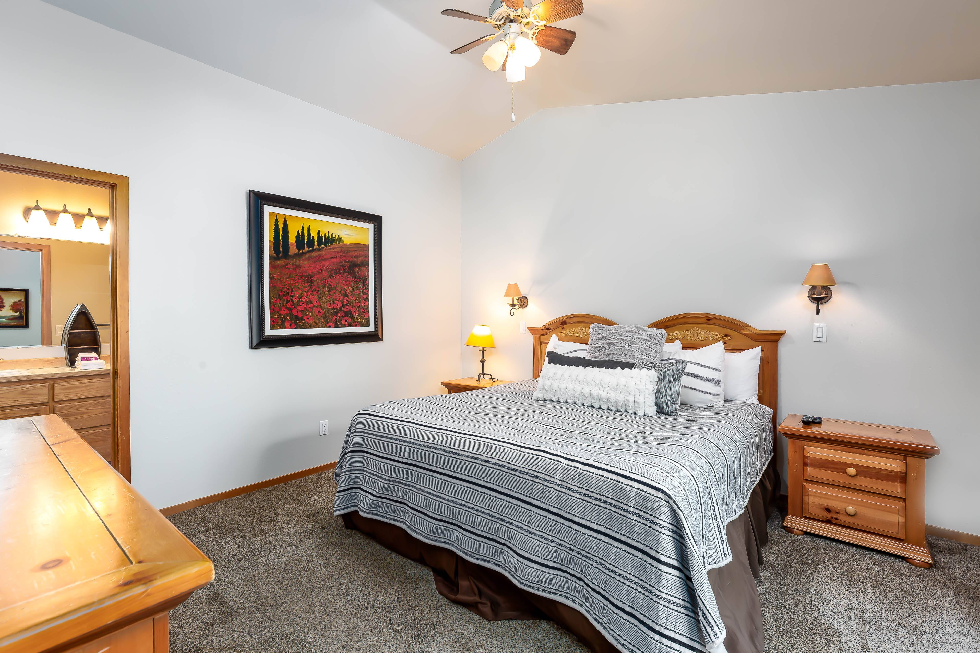 Inside, you’ll find a fully stocked kitchen ready for shared meals and spontaneous snacks, a cozy living room with a gas fireplace perfect for unwinding, and air conditioning to keep you cool and comfortable. The main level features a serene king ensuite bedroom, a second king bedroom, and a full bathroom — ideal for guests who prefer single-level living. Upstairs, a third king bedroom and a cheerful bunk room share another full bathroom.