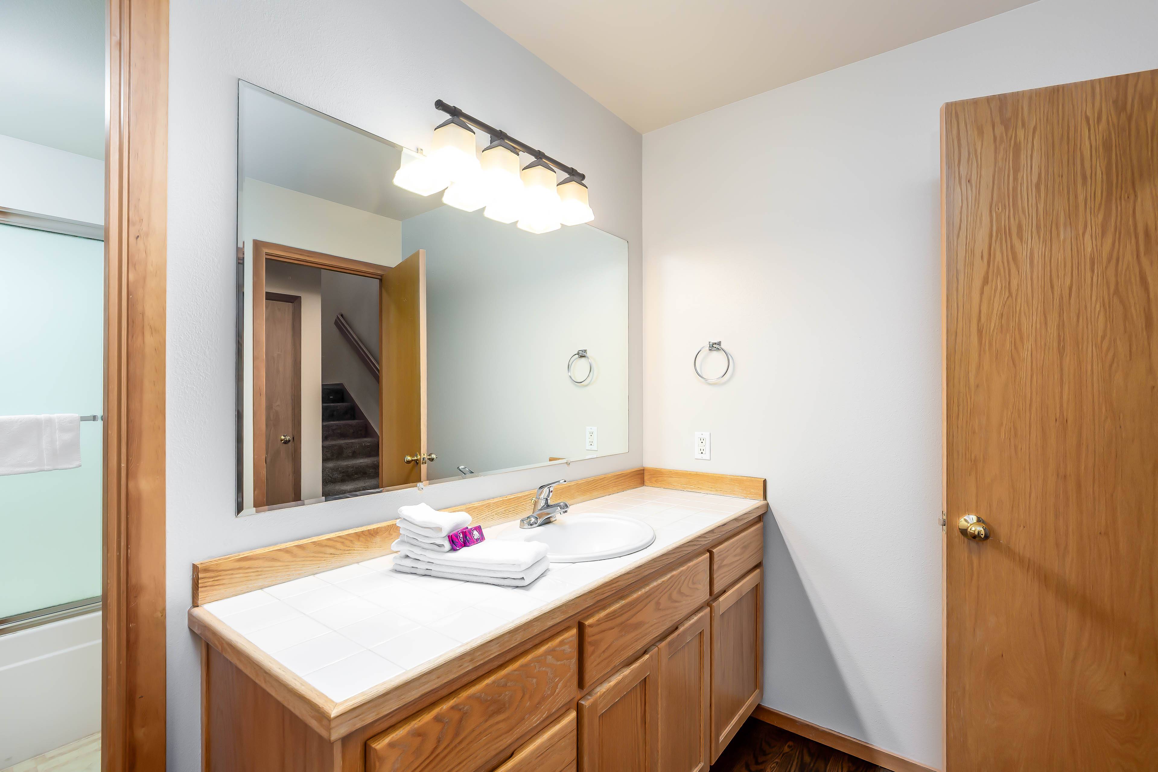 This rental worked great - our daughter, husband and 2 kids had the upstairs and the couples without kids had the ground level rooms. The ping pong table and hot tub were a big hit! We cooked all of our meals at the house, so we appreciated the large collection of dishes and cookware. Great place for a family of eight!