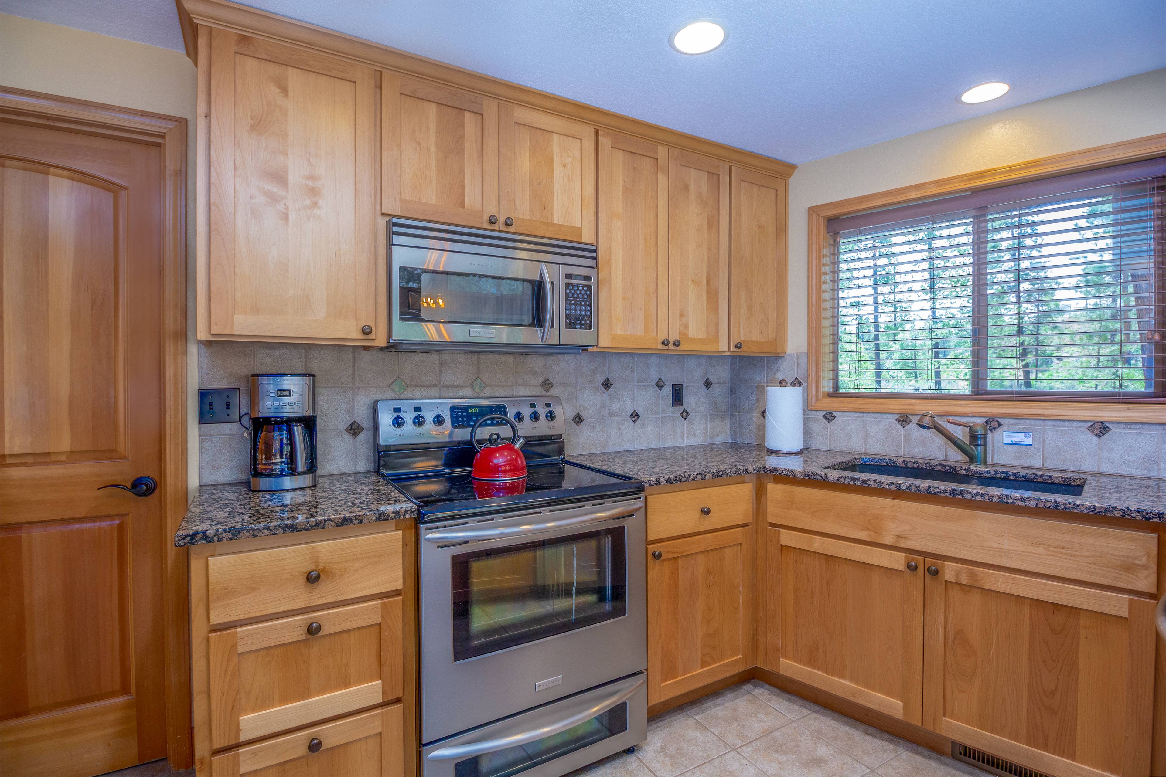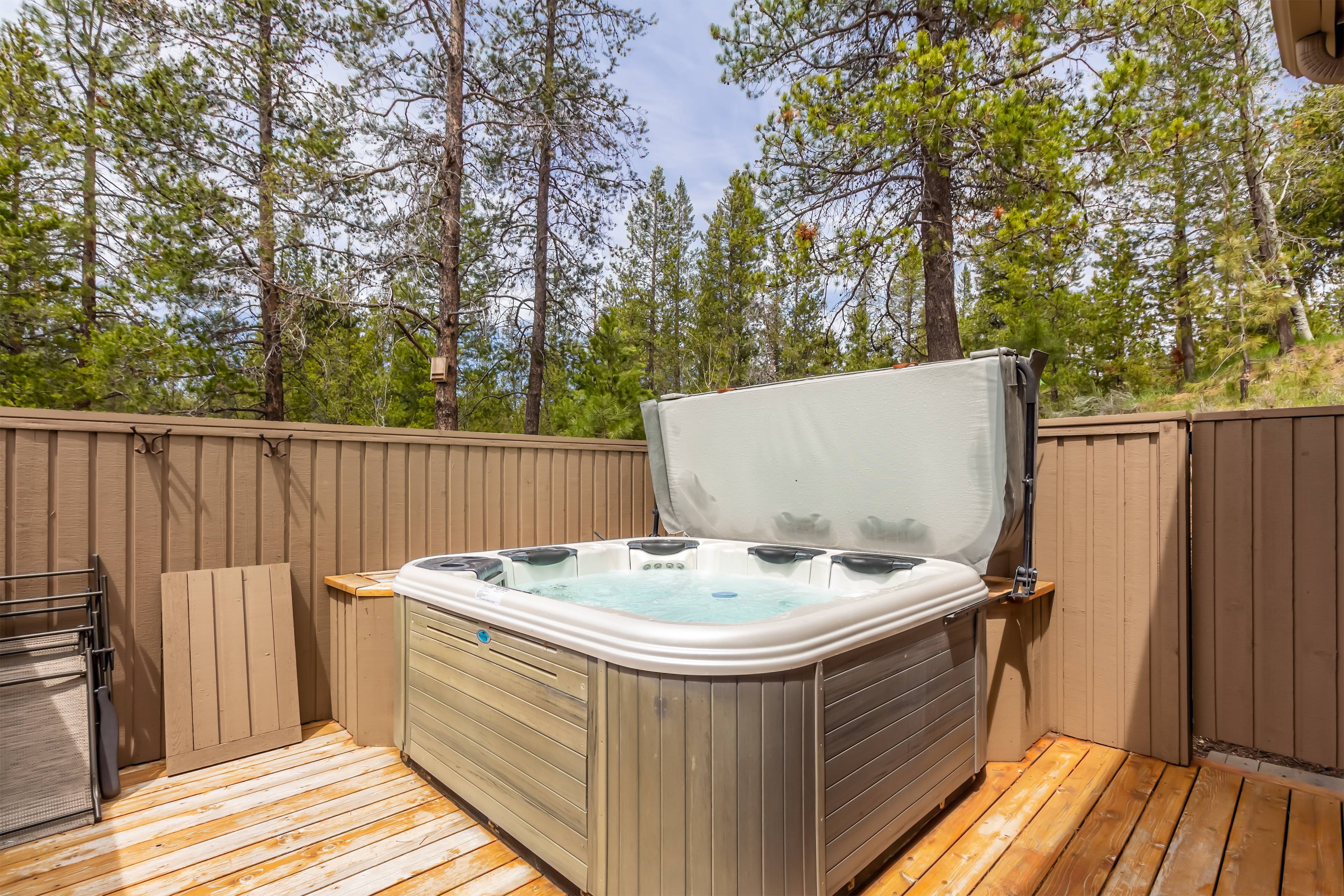 The backyard is really the star of the show here. Enjoy the flagstone paved patio and grassy area for an afternoon BBQ or jump in the private hot tub after a long day of adventuring in Sunriver.