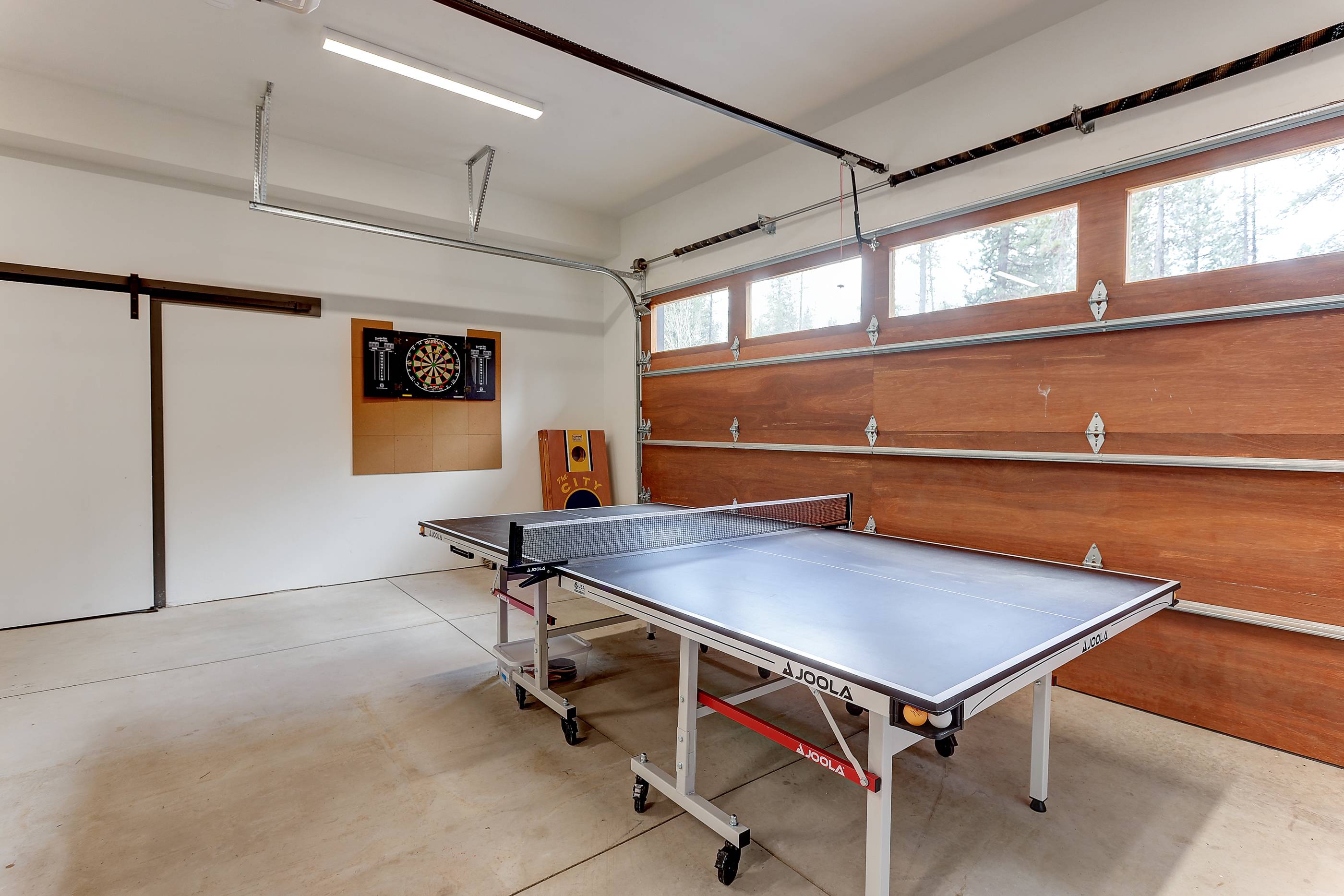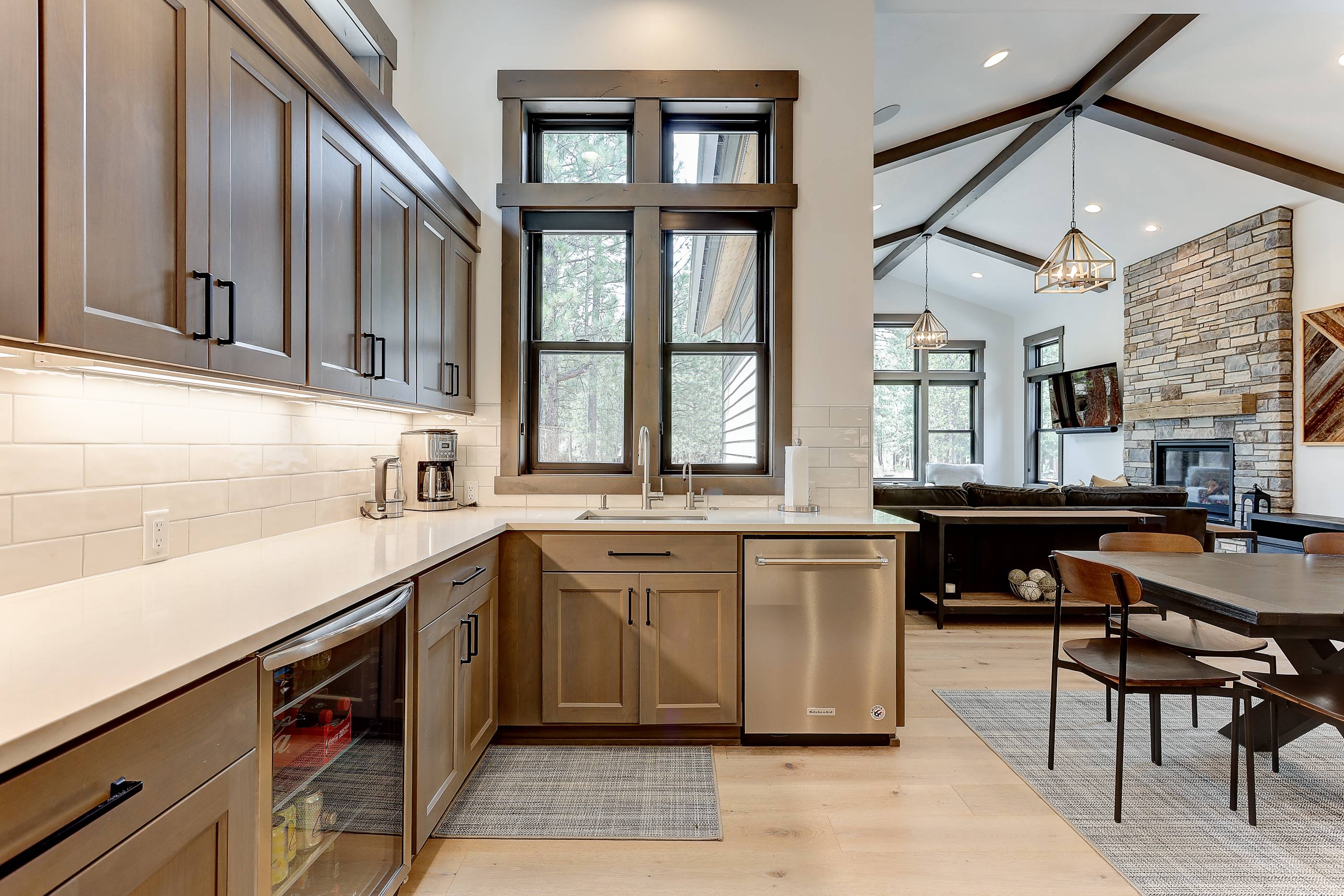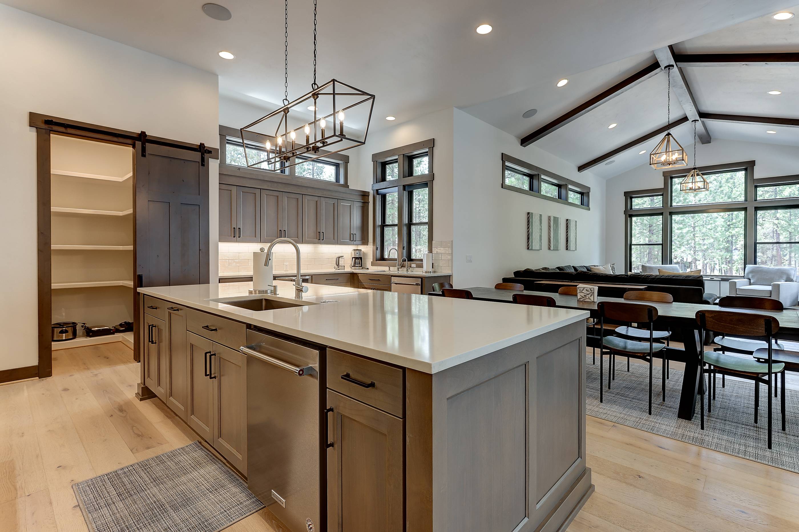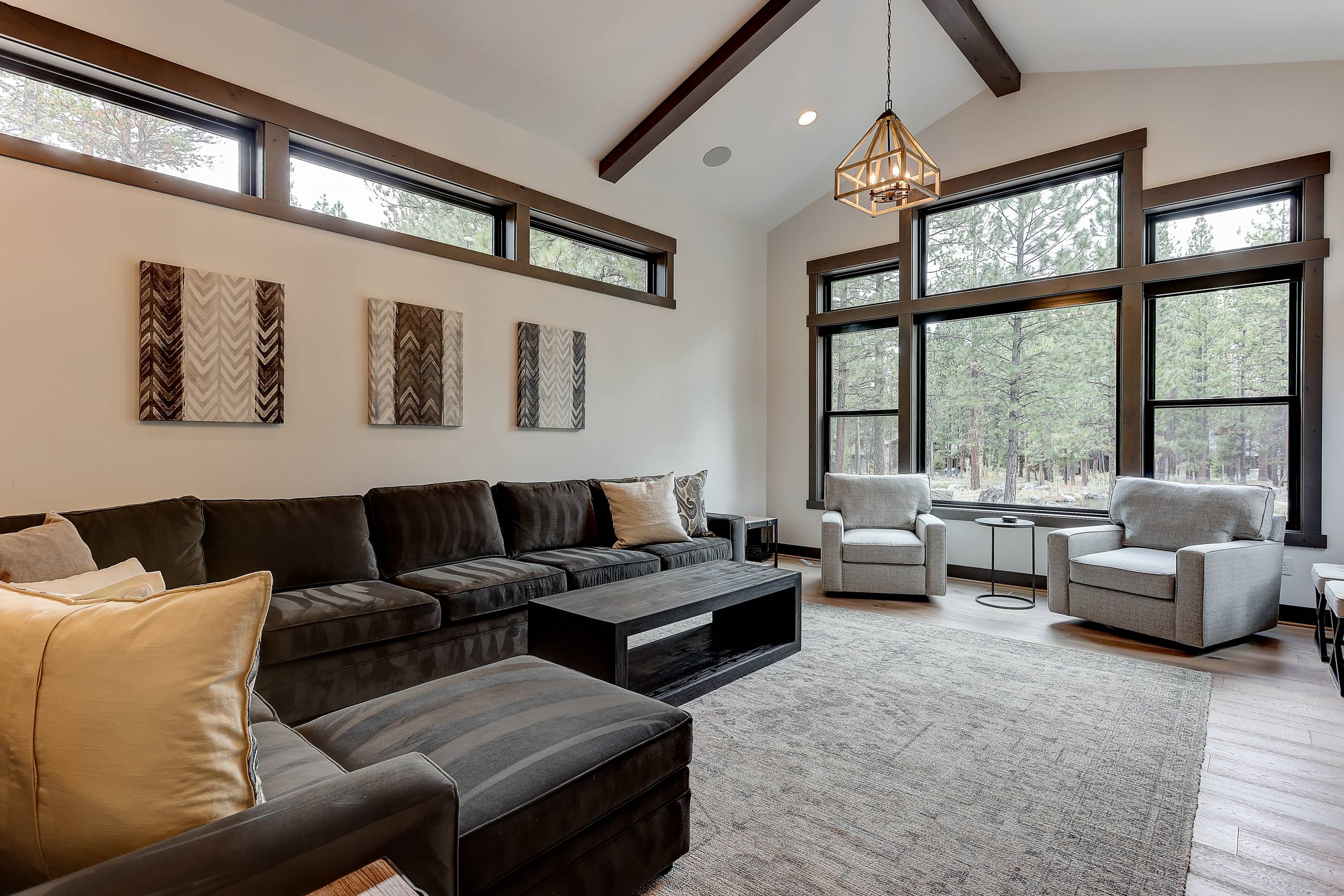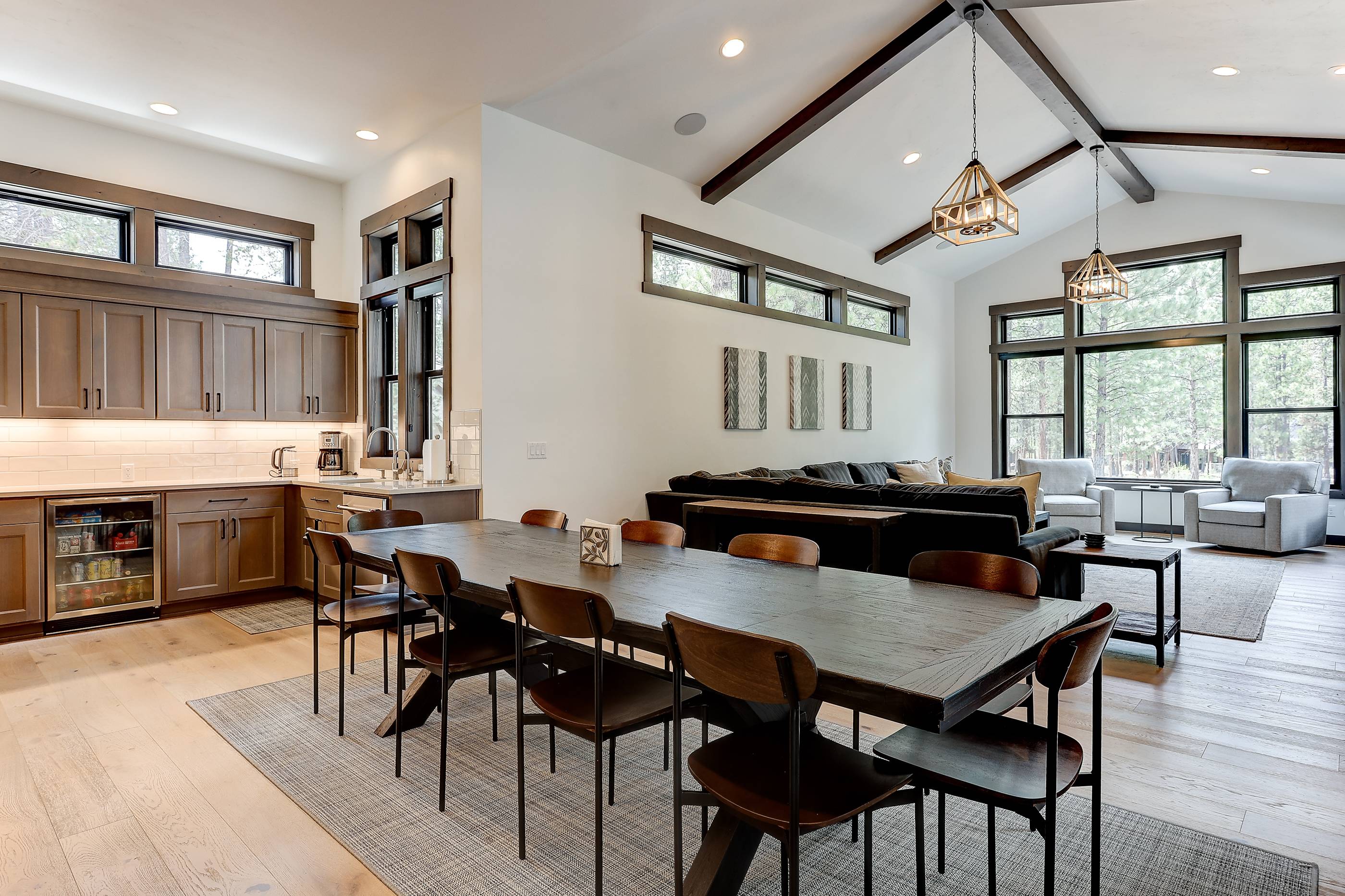 We stayed at this beautiful home in early May and it was wonderful! We had a family reunion over a long weekend and 6 siblings and their spouses (12 people in all) stayed in this large home. Everyone was comfortable and the design and layout of the home was perfect for socializing as a big group or in smaller groups. The “Great Room” is both large and cozy. It comfortably fit all of us (and additional guests) for a family slide show evening, but was also great for smaller groups to have discussions and feel at home. The window of the family room shows a beautiful scene of trees and a small pond. The kitchen is large, luxurious and ultra-modern and includes high quality appliances, etc. in every area. We also enjoyed all sitting around a covered outdoor area around the outdoor fireplace and singing songs. The garage had an indoor ping pong table, cornhole game, etc. The laundry room is large and includes two brand new washers and two brand new dryers, which is very helpful for large groups. Everything is brand new and high-end. Very well designed, planned and thought out house that is particularly suited for large families or multiple families that want to take advantage of the area, including downtown Sunriver 5 minutes away, and Mt. Bachelor / Bend within 20 minutes. We highly recommend this wonderful home and assure you that you won’t be disappointed!