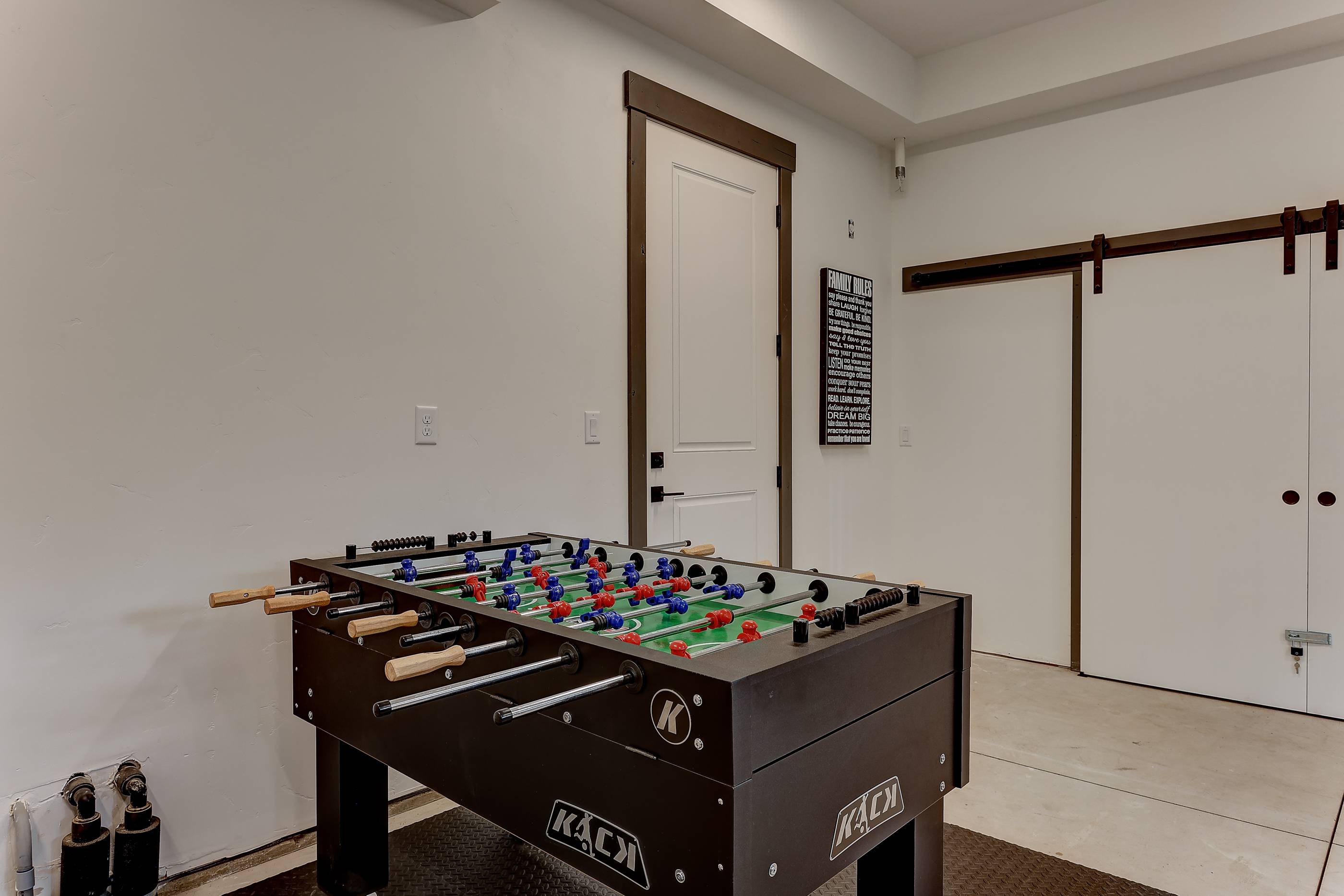 Upstairs, you'll also find a Bunk Room with 2 twin over full bunk beds and a Media Room with a queen over queen bunk. Setup for the perfect movie night, the Media Room is equipped with ample seating for the whole family and a Smart TV for streaming all your favorite shows and movies. The home also boasts 1 Gig wifi speed which makes streaming a breeze. The fun continues in the garage where you'll find Foosball and Ping Pong. After play, you can relax under the stars while you soak in the new private hot tub.