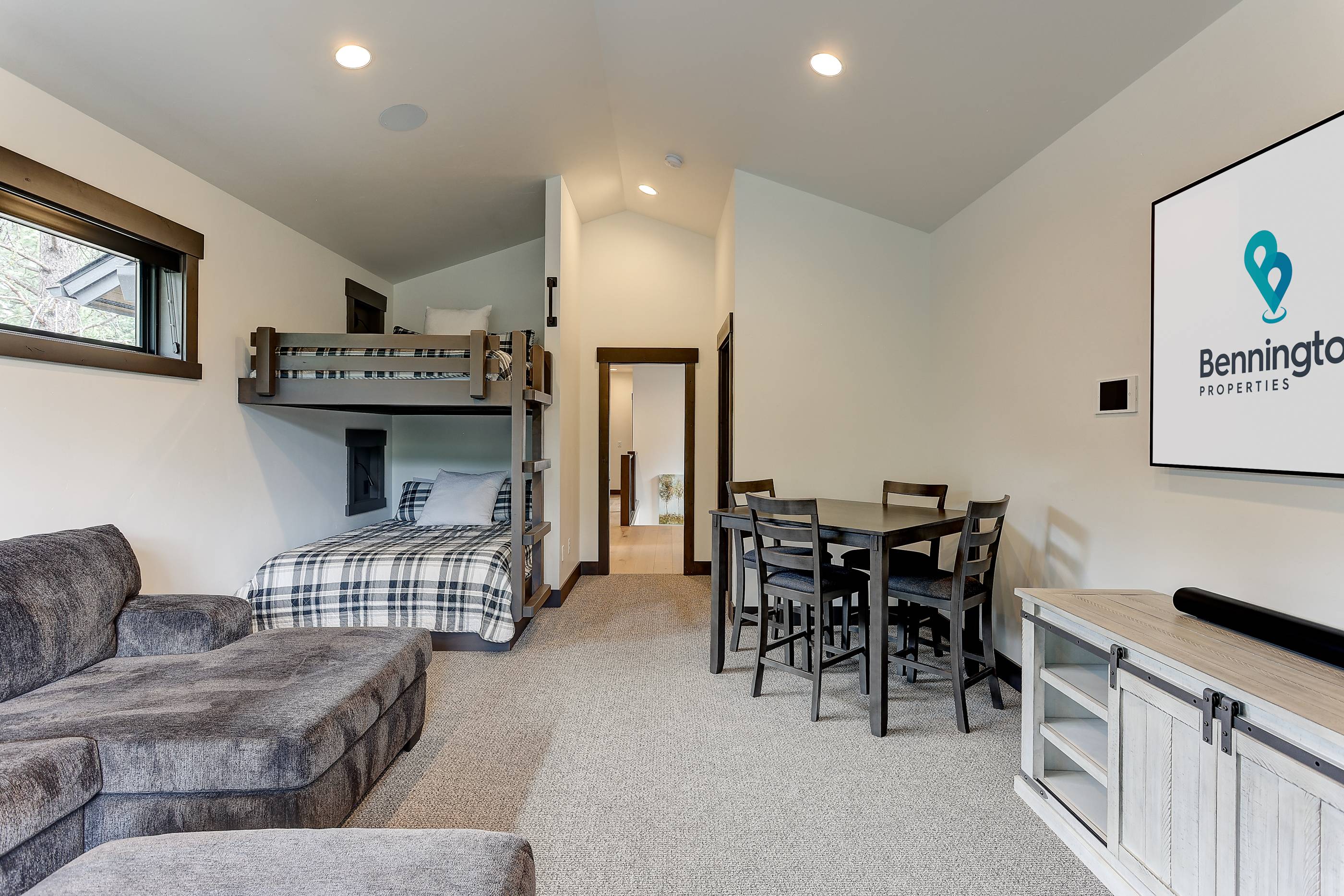 The communication was top notched! There were fires in the area and their team at Bennington properties responded within the hour and also mentioned we could get a different property or refund to feel safe. The property had every essential needed. There were no spices, so when grocery shopping grab a few. But there was a gorgeous hot tub, never made me feel itchy! The patio furniture was a hit, night times out back with a glass of wine catching up with friends. They had ceiling heaters and a fire place to keep you warm. Having king beds for 4 bedrooms and their own bathrooms was the highlight of all the adults. The bunk beds were large and comfortable as well. The game room was a blast and lots of belly laughs. Fully stocked kitchen and walkable paths with swings and water features. This was true bliss! I wish we had time to check out the pool in the main building, we just had so much fun at the house we never had time. I will plan to book with Bennington Properties management again!