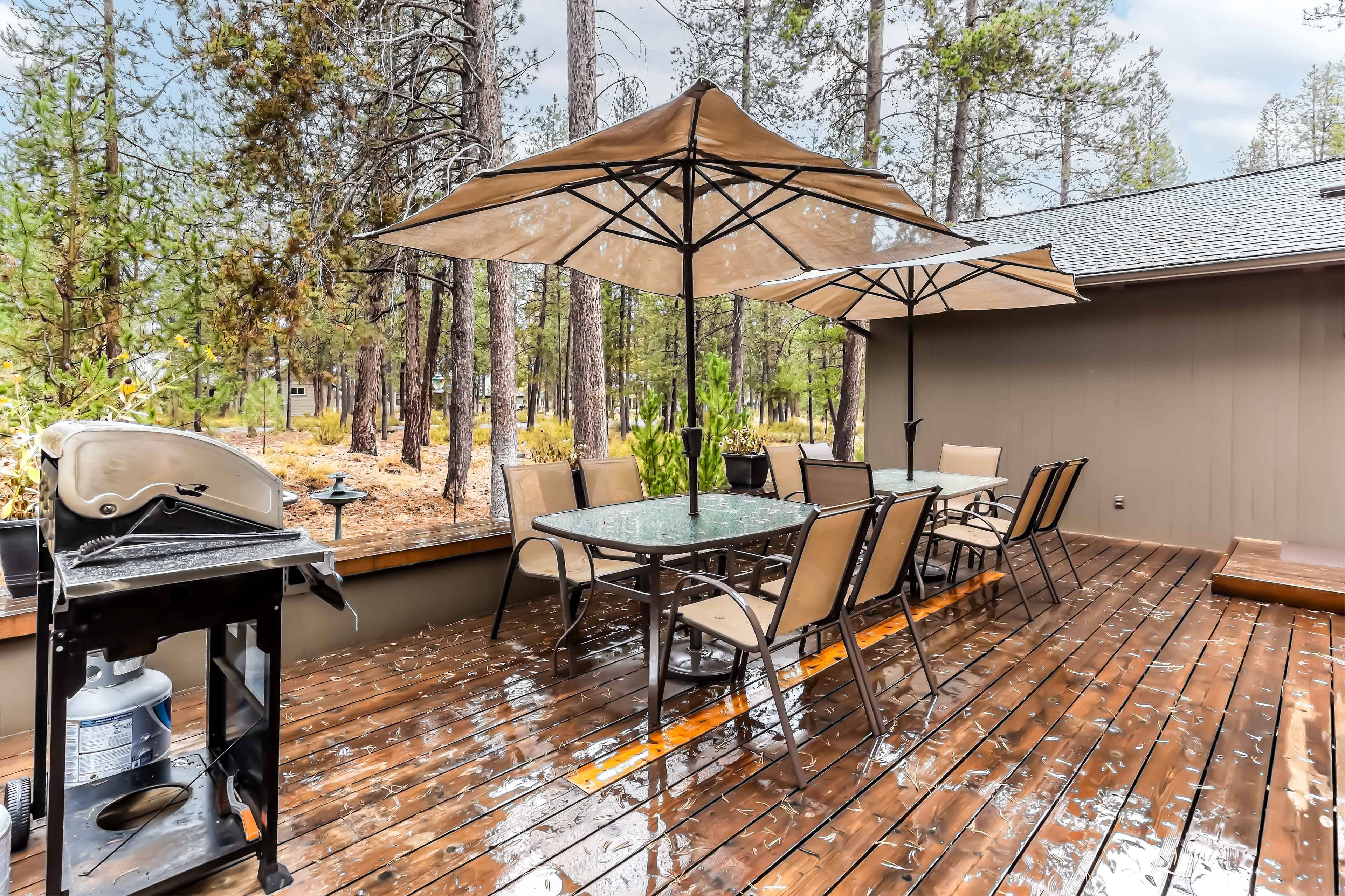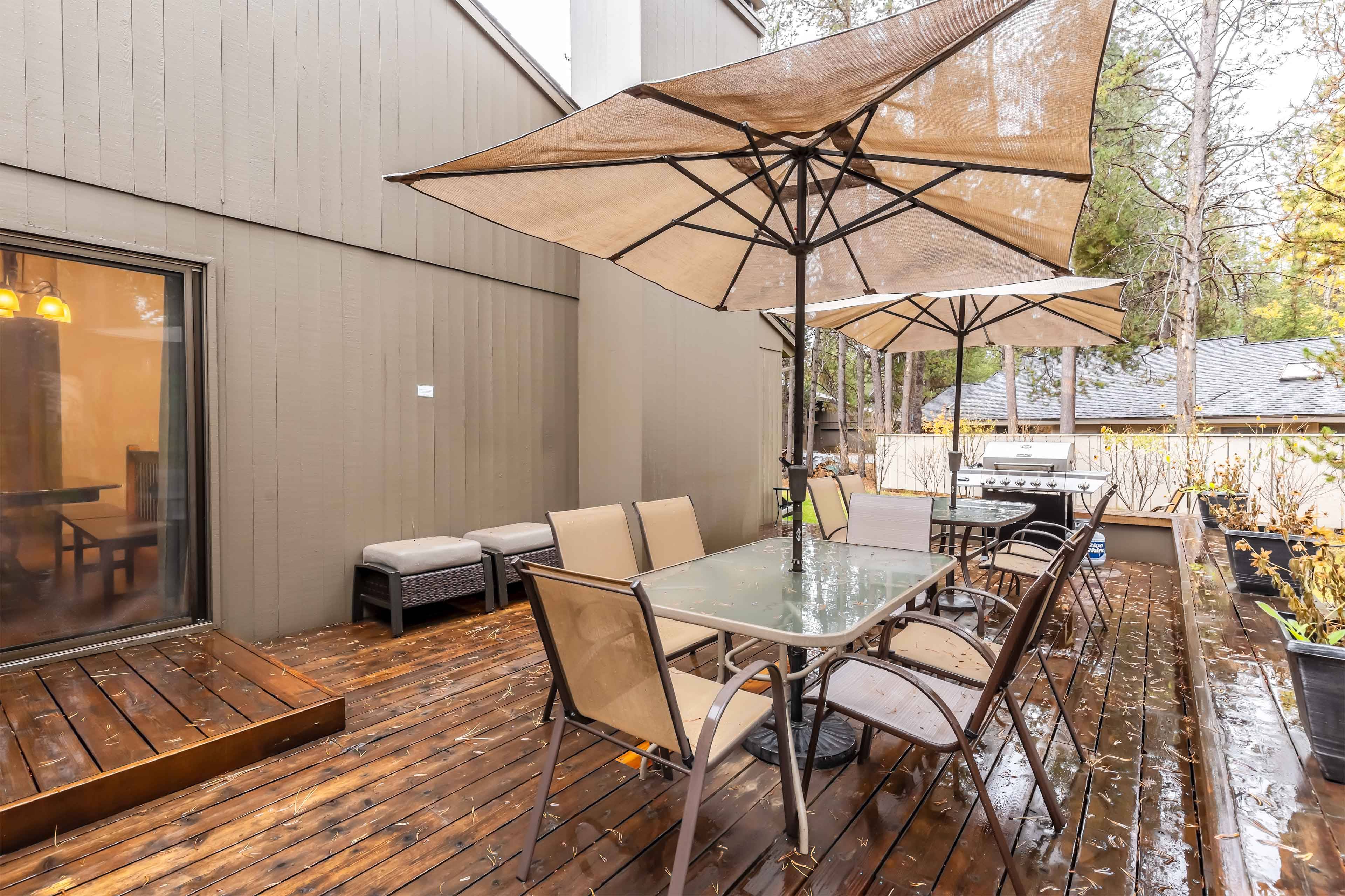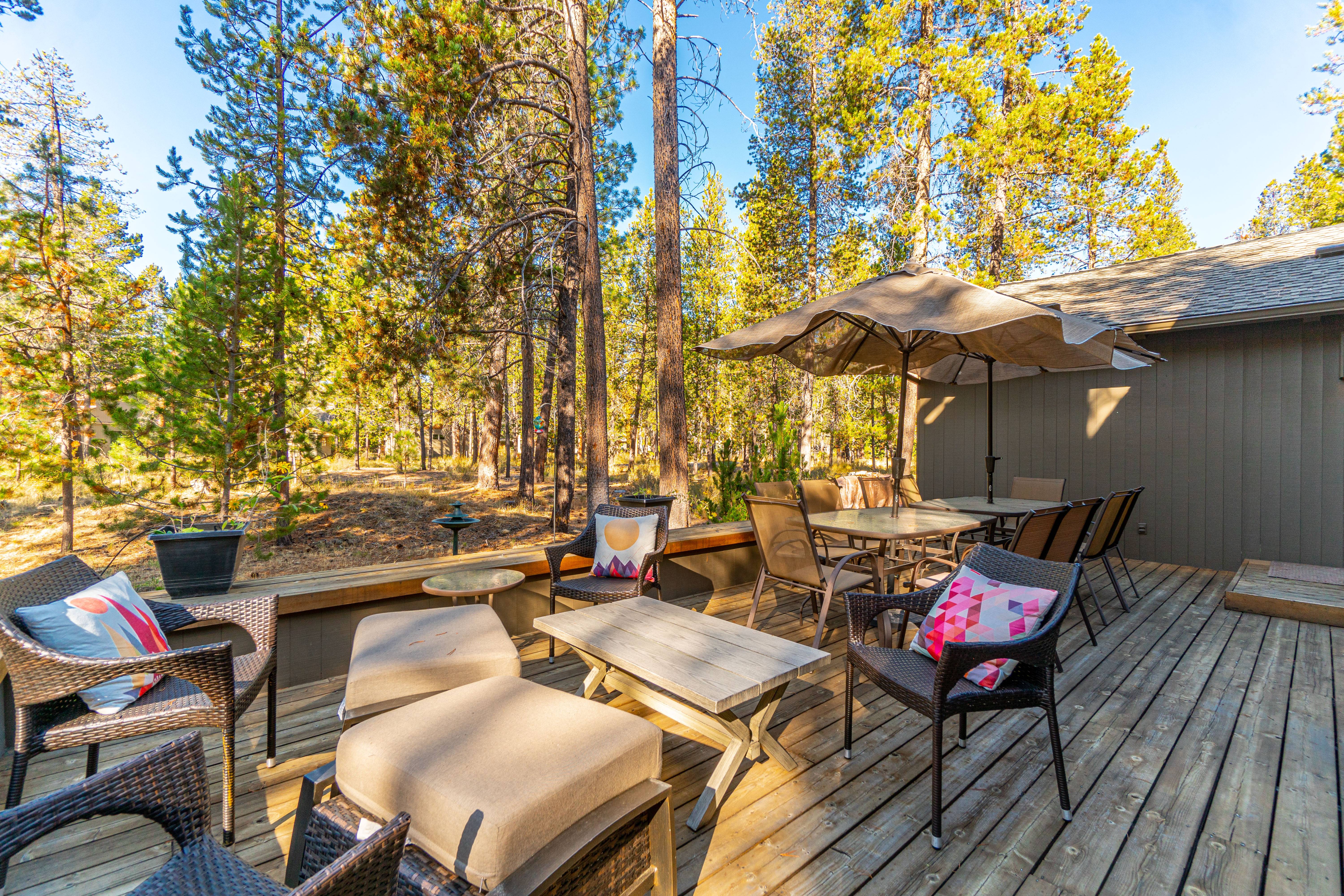 The home has a beautiful deck- great to sit outside and enjoy Sunriver. It's location is wonderful and close to everything you need. LOVED having the bikes there as well.