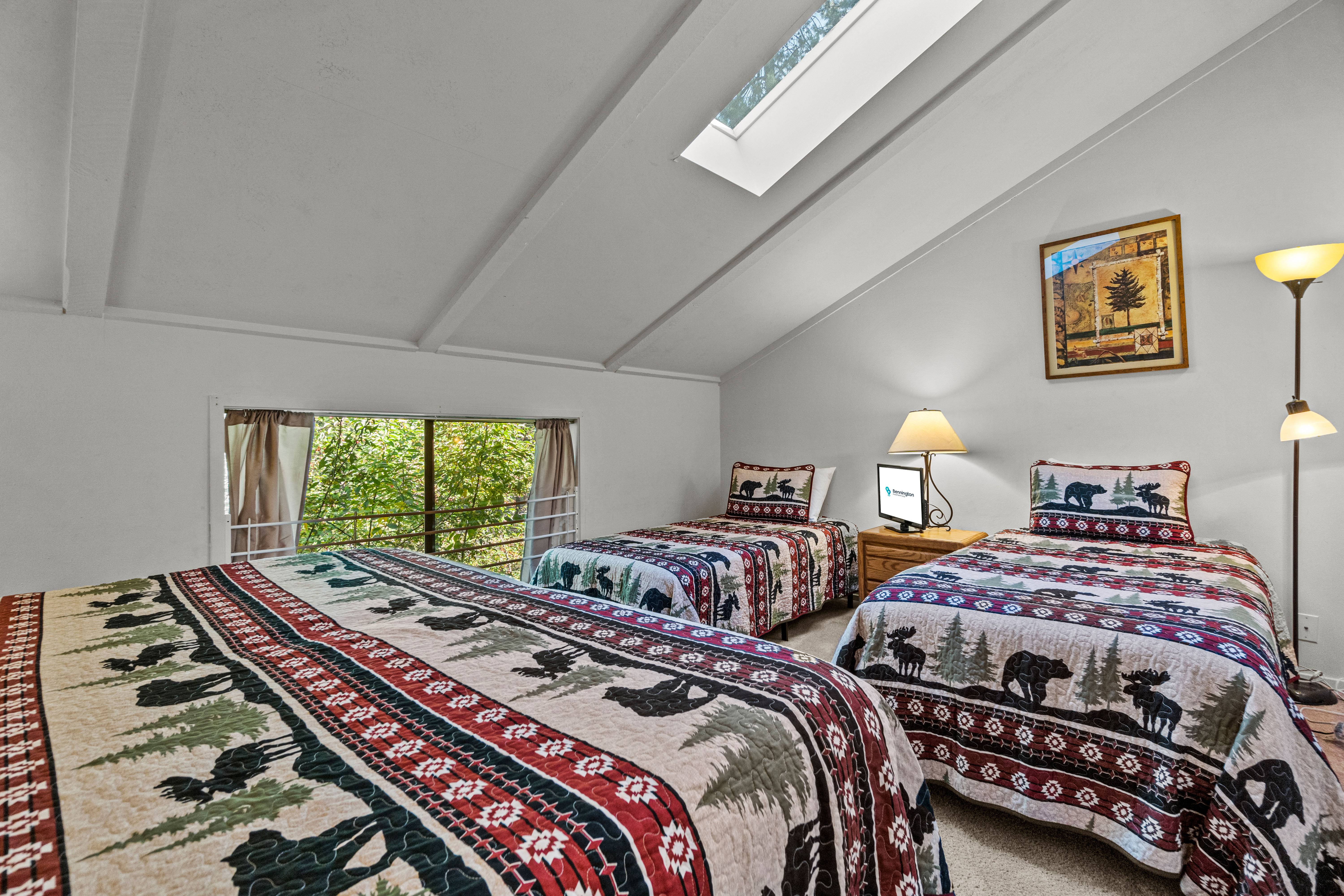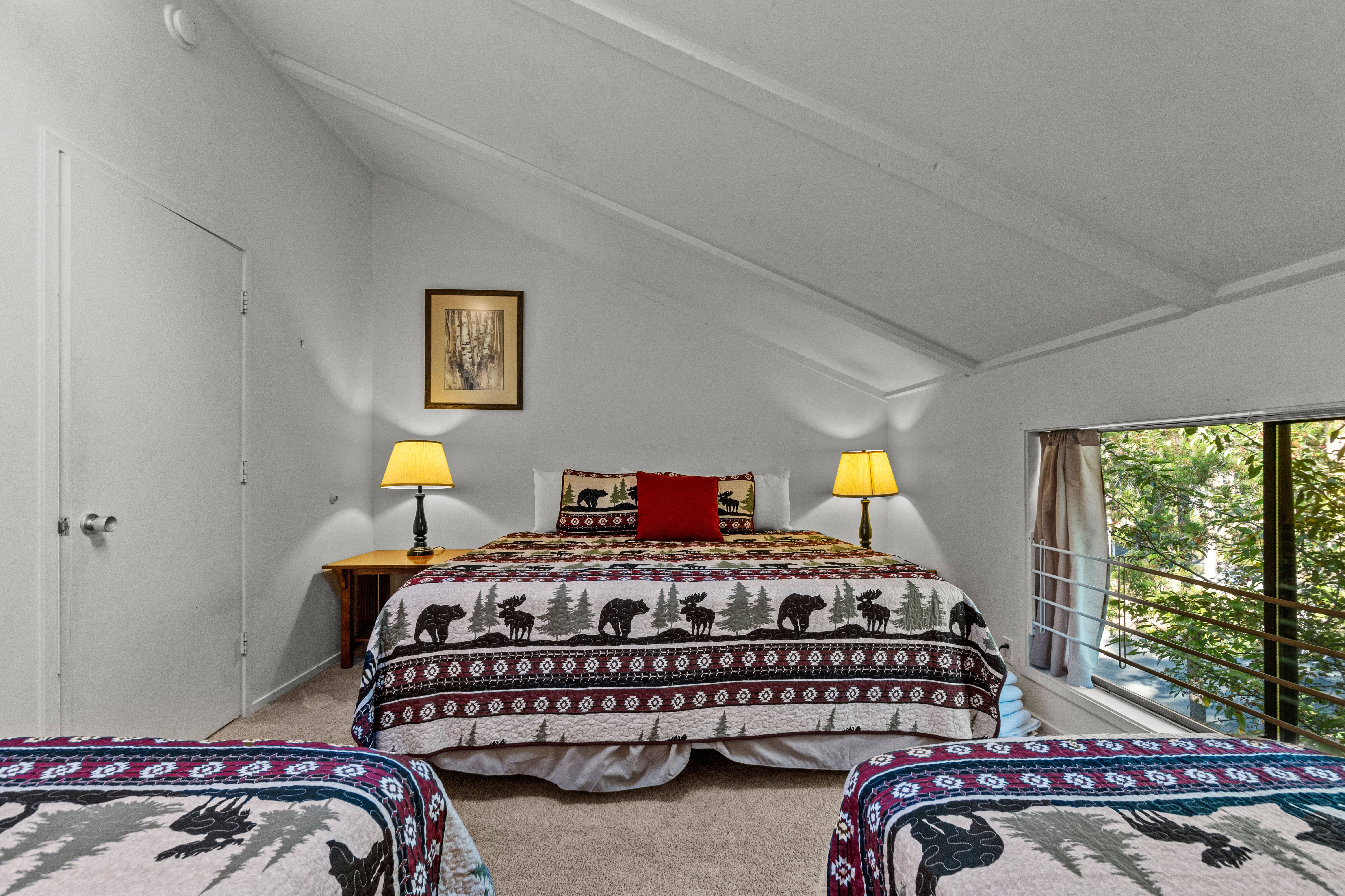 Head upstairs to the loft to find a King bed with a privacy curtain and balcony access. The 3rd bedroom is located off the loft and has 1 King and 2 Twin beds (twins can be converted to a king) all with a shared bathroom upstairs.