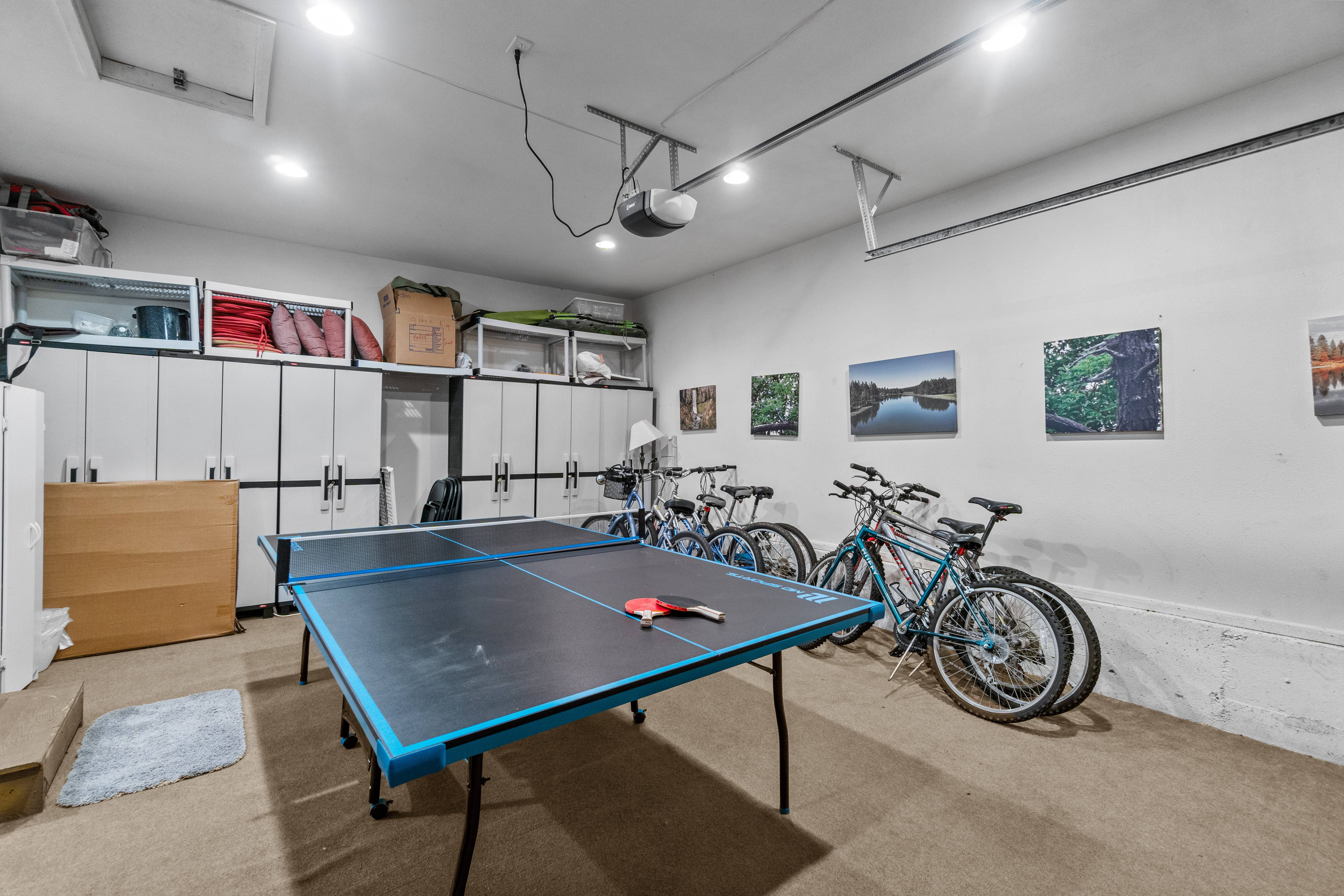 The neighborhood is quiet because it is surrounded by golf fairways. Look for wildlife during peaceful evenings on the front or back decks or from the hot tub. When it comes to fun and relaxation, this home provides the ideal package. Enjoy the ping pong table year round in the heated, carpeted garage (no parking available inside). Parking for 4+ cars is available in the driveway.