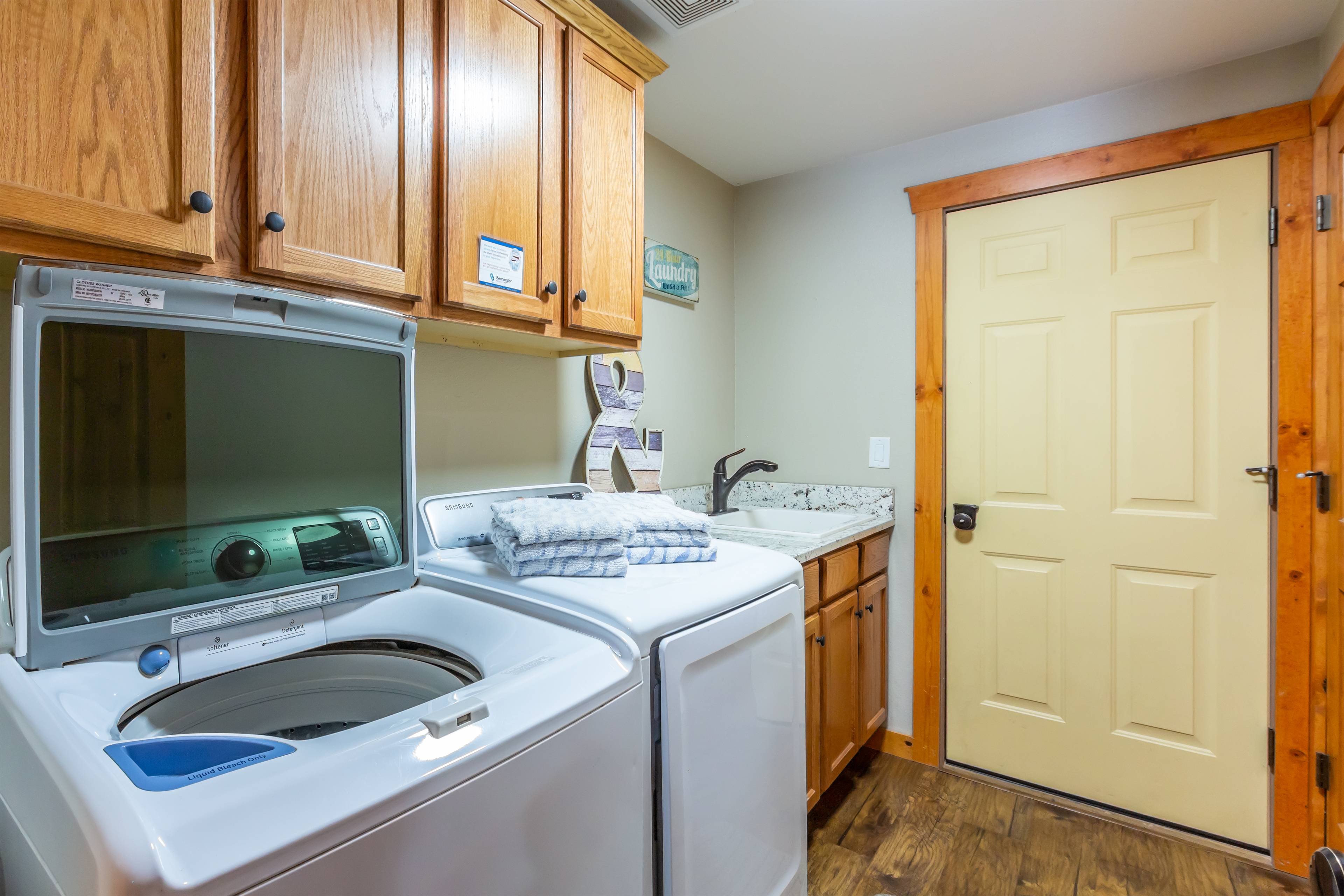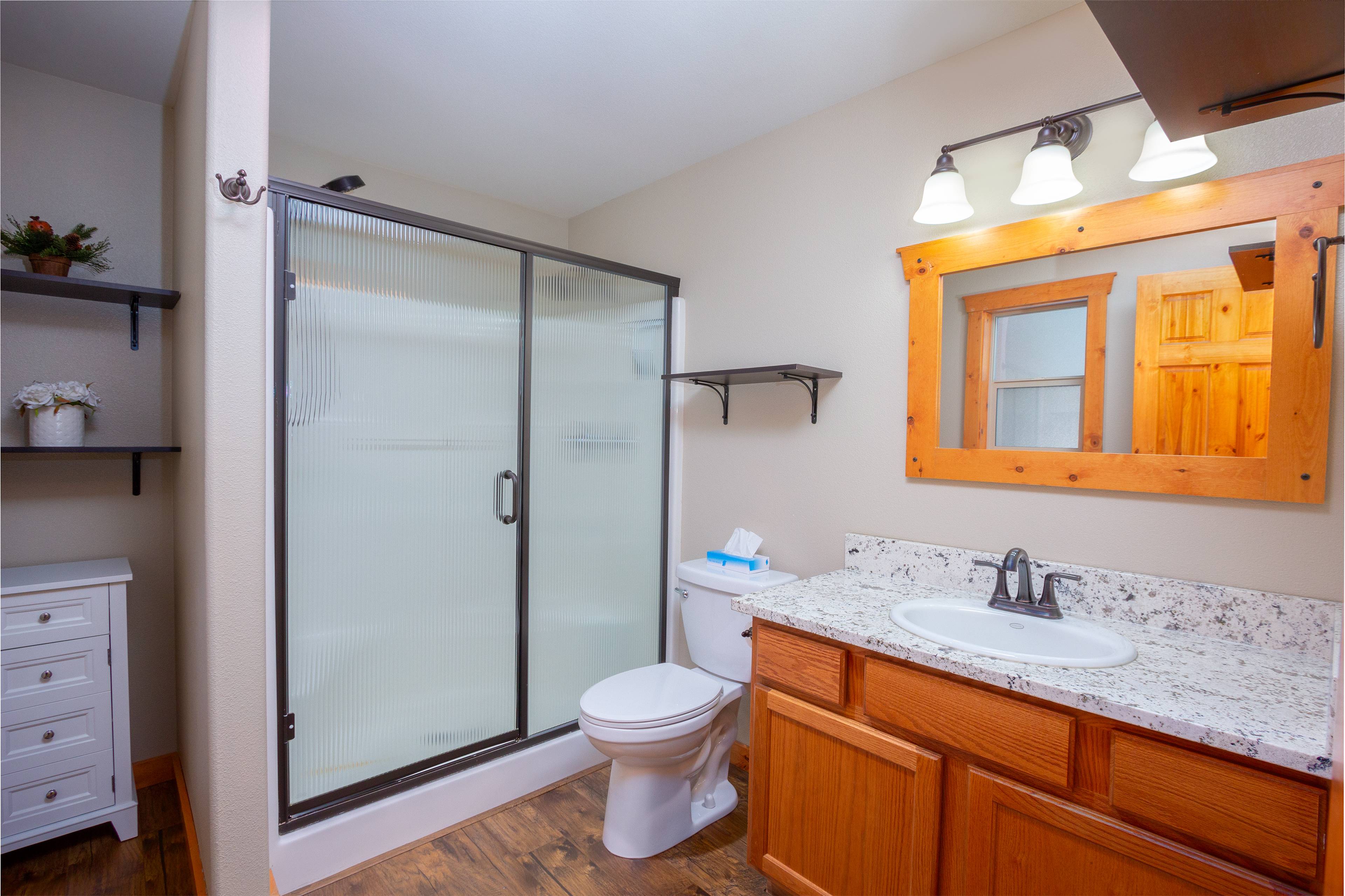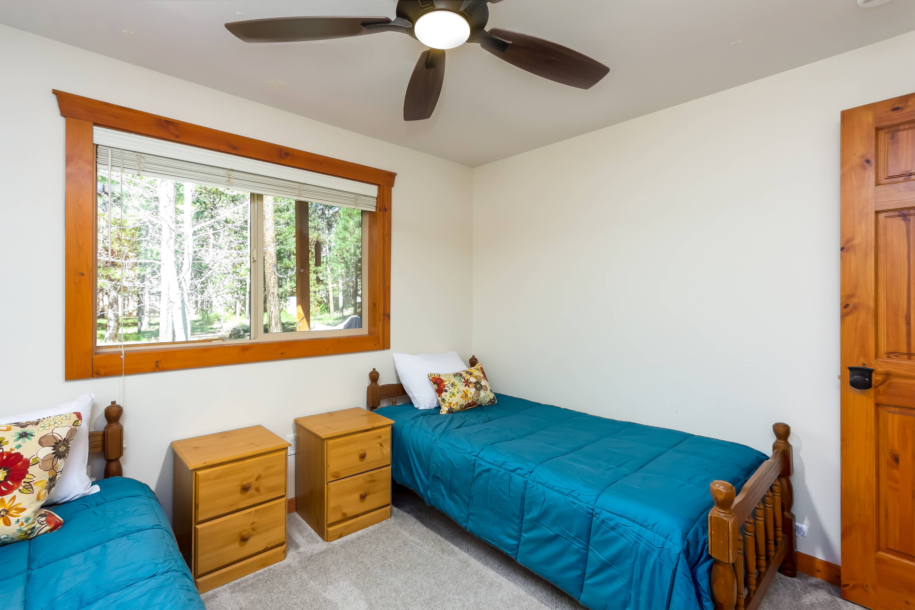 The large primary suite features a king-sized bed, attached private bathroom, smart TV and direct access to the hot tub area. The two additional bedrooms, 1 with a queen bed and the other with 2 twins, plus a full bathroom are located on the other side of the home offering nice separation from the primary.