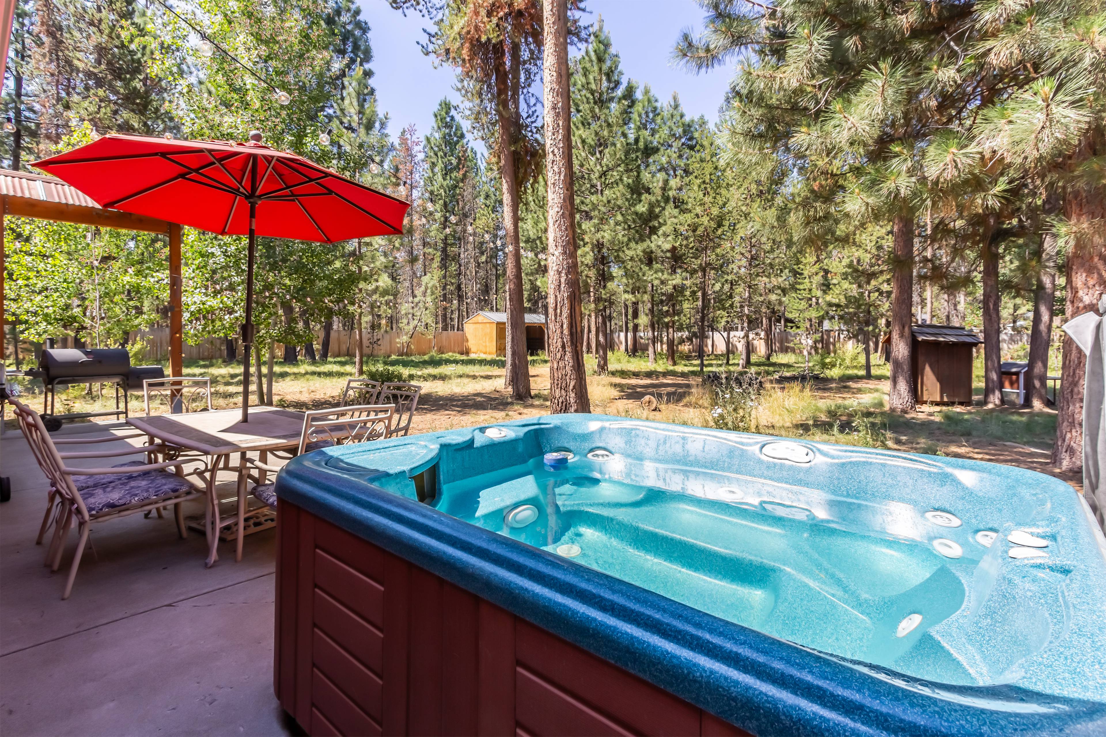Nicely treed, fully fenced yard includes a firepit and private hot tub! 5 miles to Sunriver Resort and 21 miles to Mt. Bachelor & the high lakes. So much to enjoy!