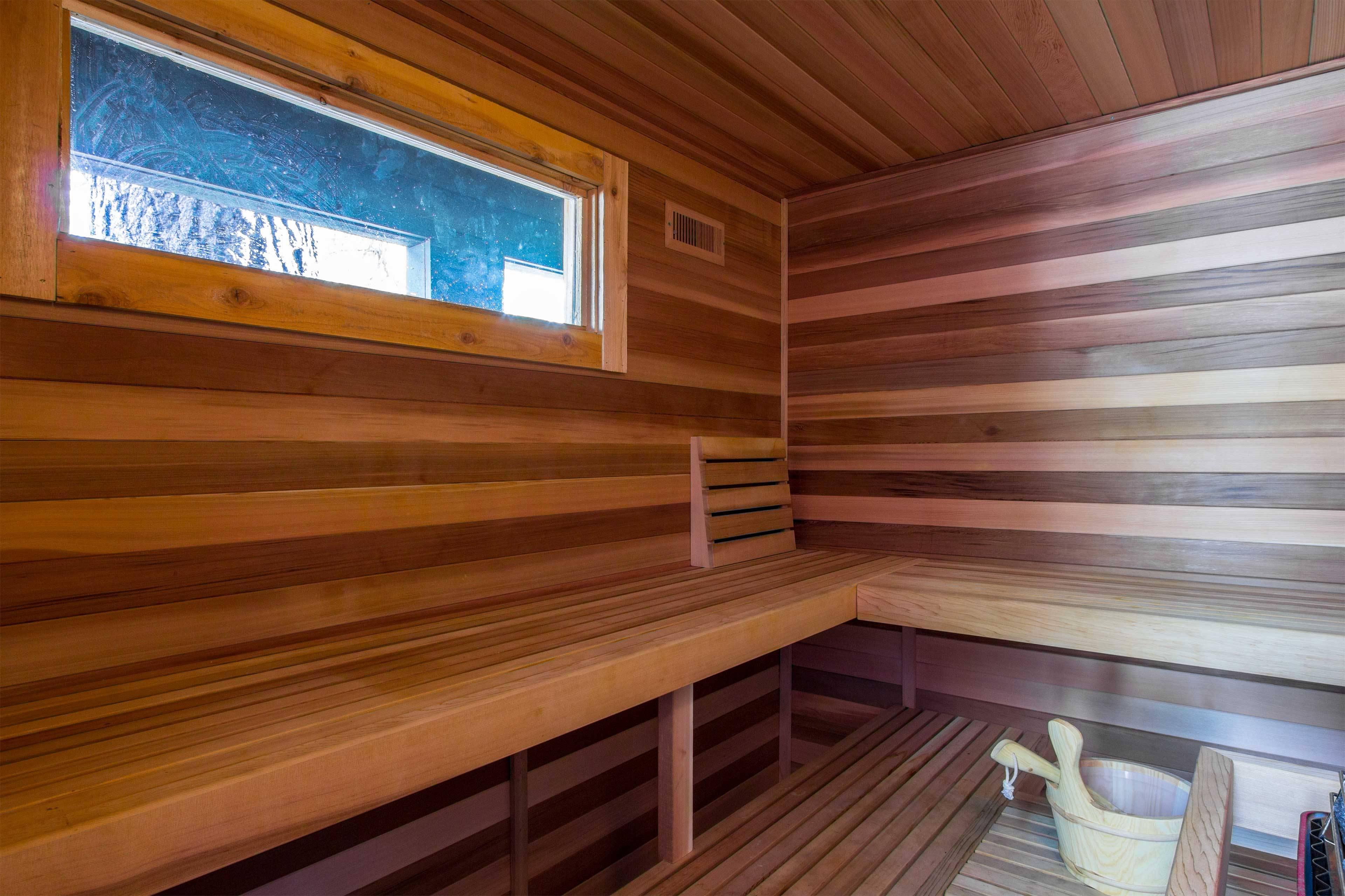 Scandinavian refinement and quirky artful decor — It’s refreshing to walk into a vacation rental that feels like a real home. Exposed timber framing and a sleek kitchen highlight the ‘open concept’ of a beautiful great room with natural light and a gas fireplace — clean and spacious while maintaining a cozy atmosphere -- FIVE STAR accommodations … and yes, there is a sauna, fondue pot and a Viking helmet.