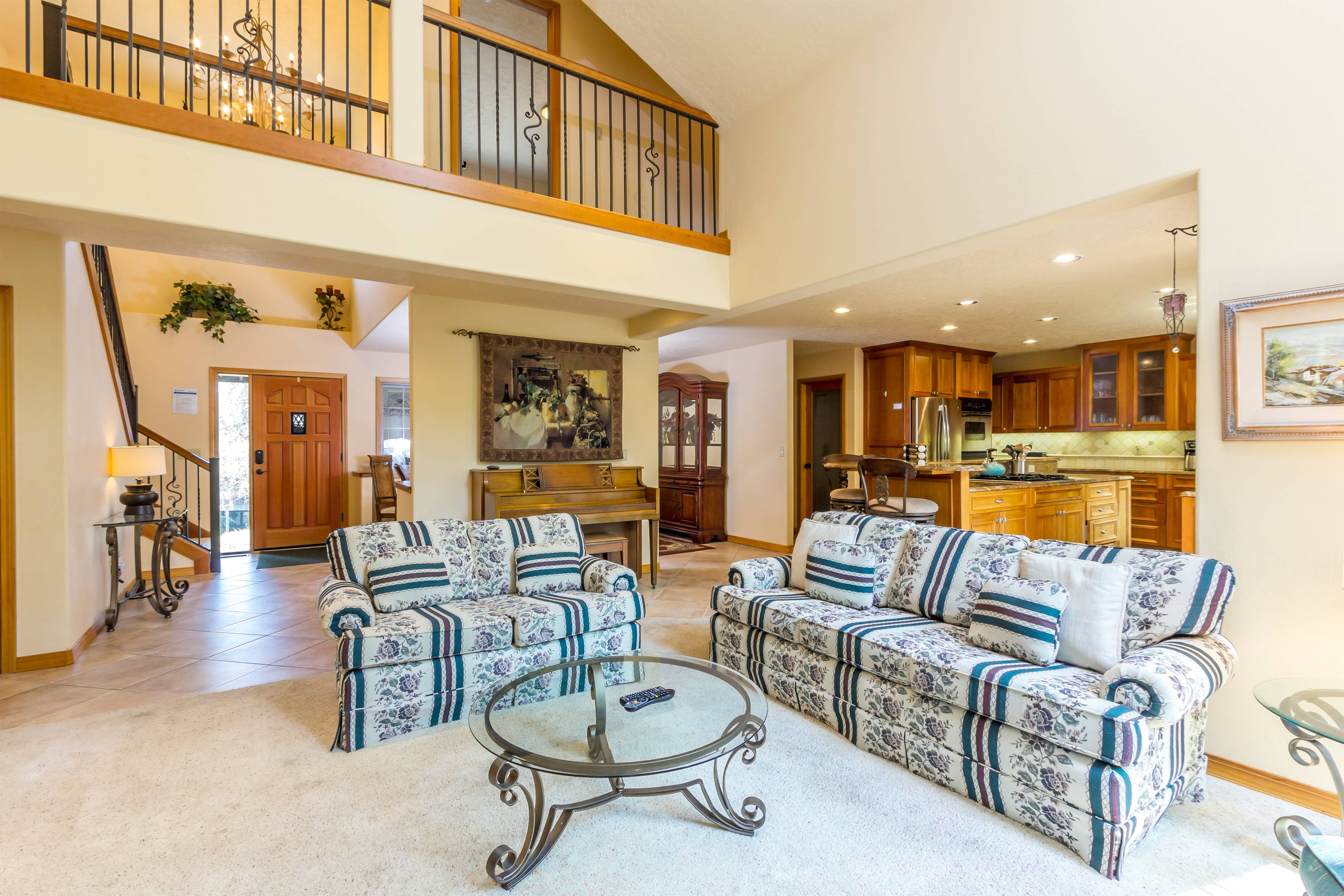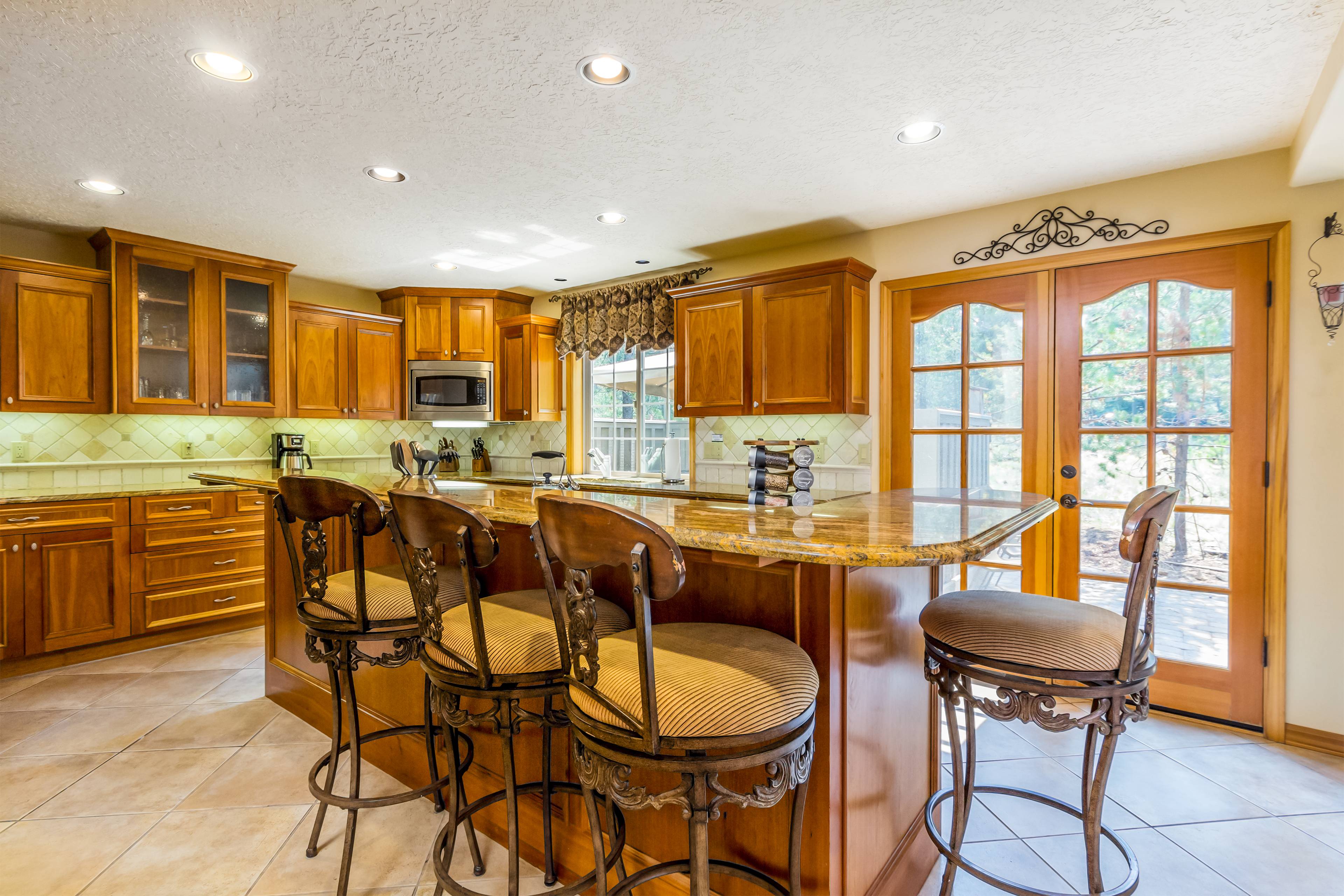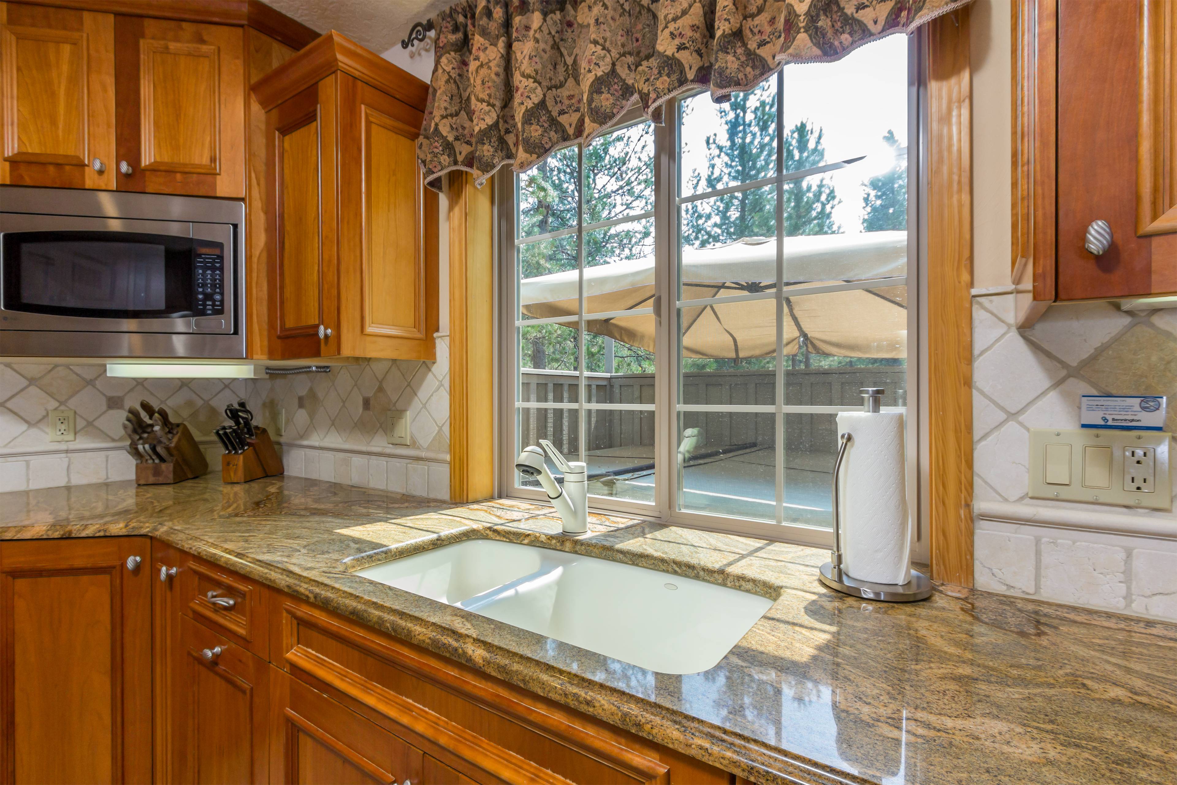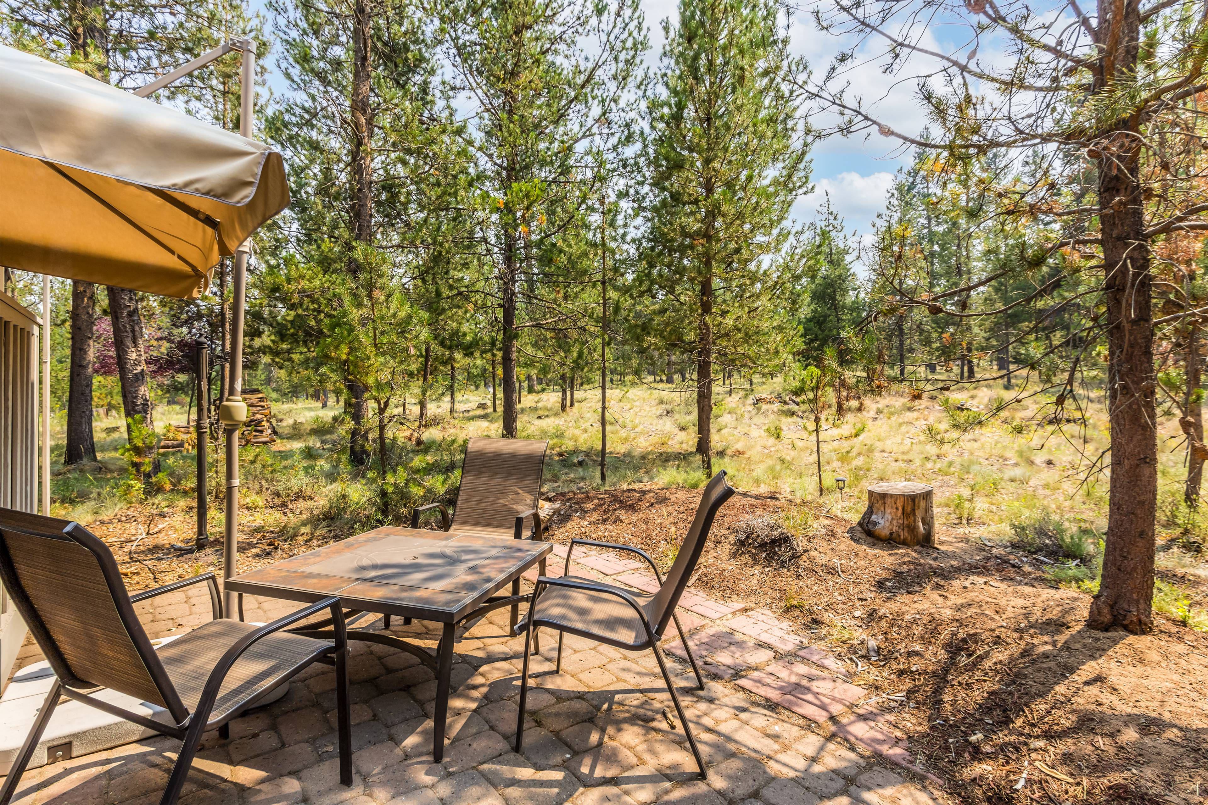 This centrally located Sunriver home is bright and cheery and the spacious floor plan is perfect for gathering the family. The living room boasts comfortable seating, a flat screen TV, and gas fireplace. The kitchen is well stocked, including a gas stove and bar seating. Step outside to find patio seating, a gas grill and private hot tub, surrounded by the forest.