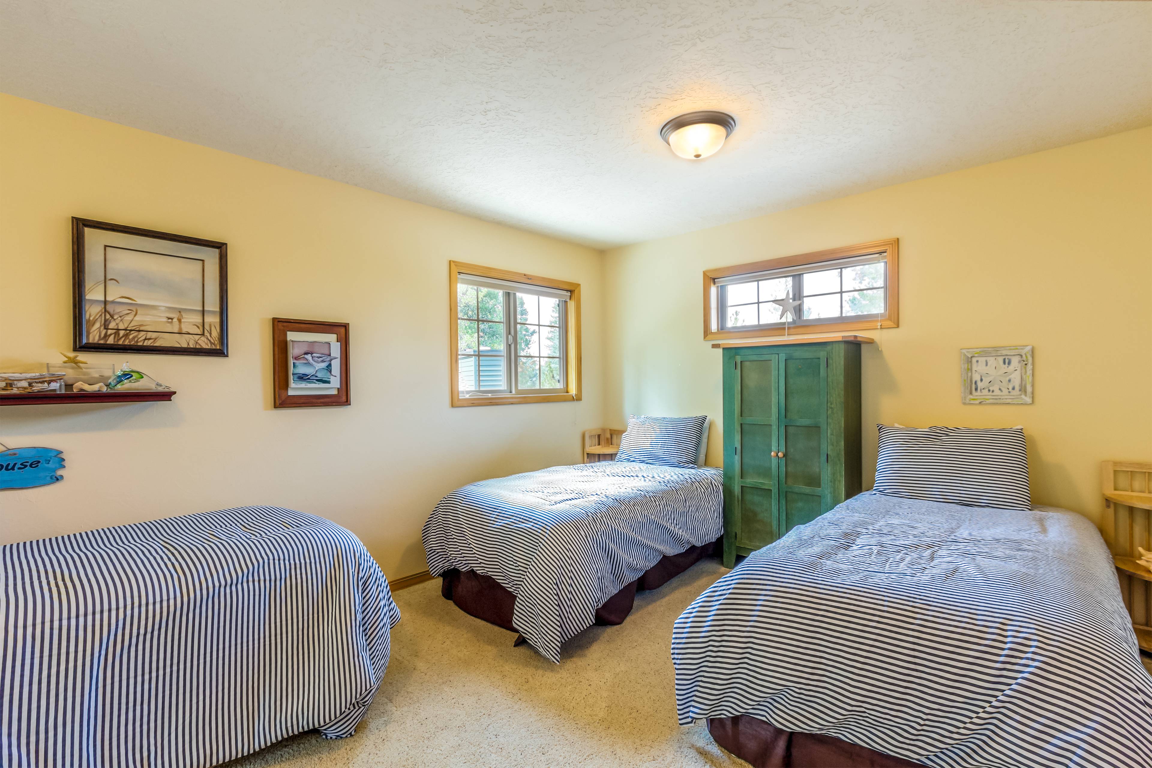 The bedrooms offer great separation for large groups: downstairs on the main floor are 2 bedrooms, one King suite and a second King bedroom with adjacent bathroom. Head upstairs to find 3 more bedrooms; two queen bedrooms, and a quadruple twin bedroom.
