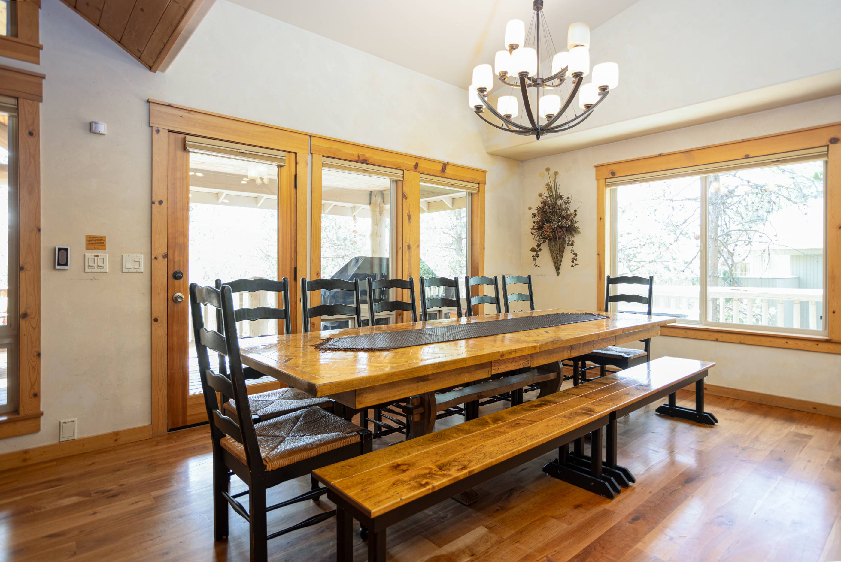 Unwind and relax in our spacious, reverse-living, Sunriver vacation home. The inviting living room provides the perfect spot to kick back, with a large TV, gas fireplace, and cozy couches, great for taking in the incredible views of the Ponderosa pines.