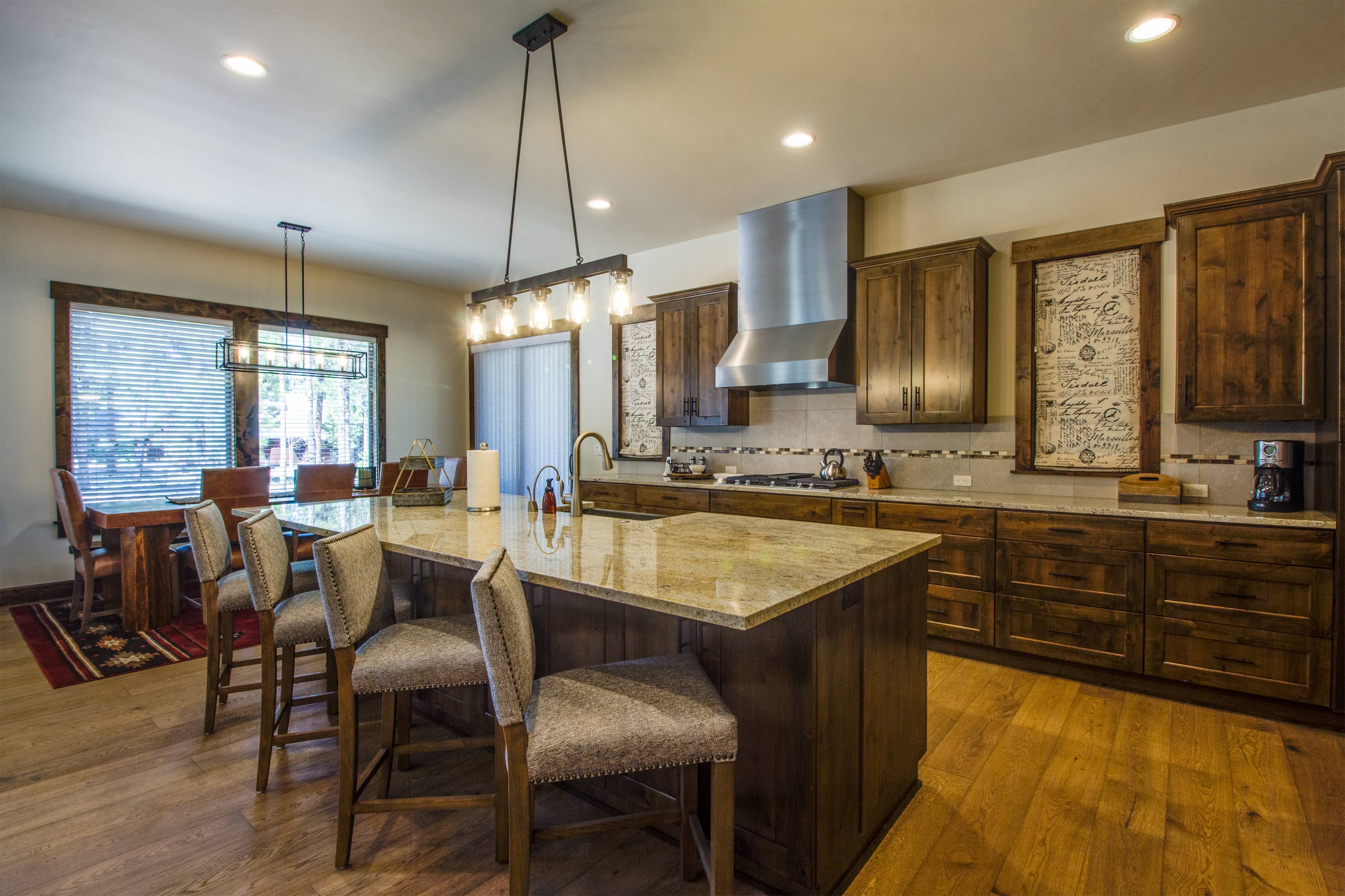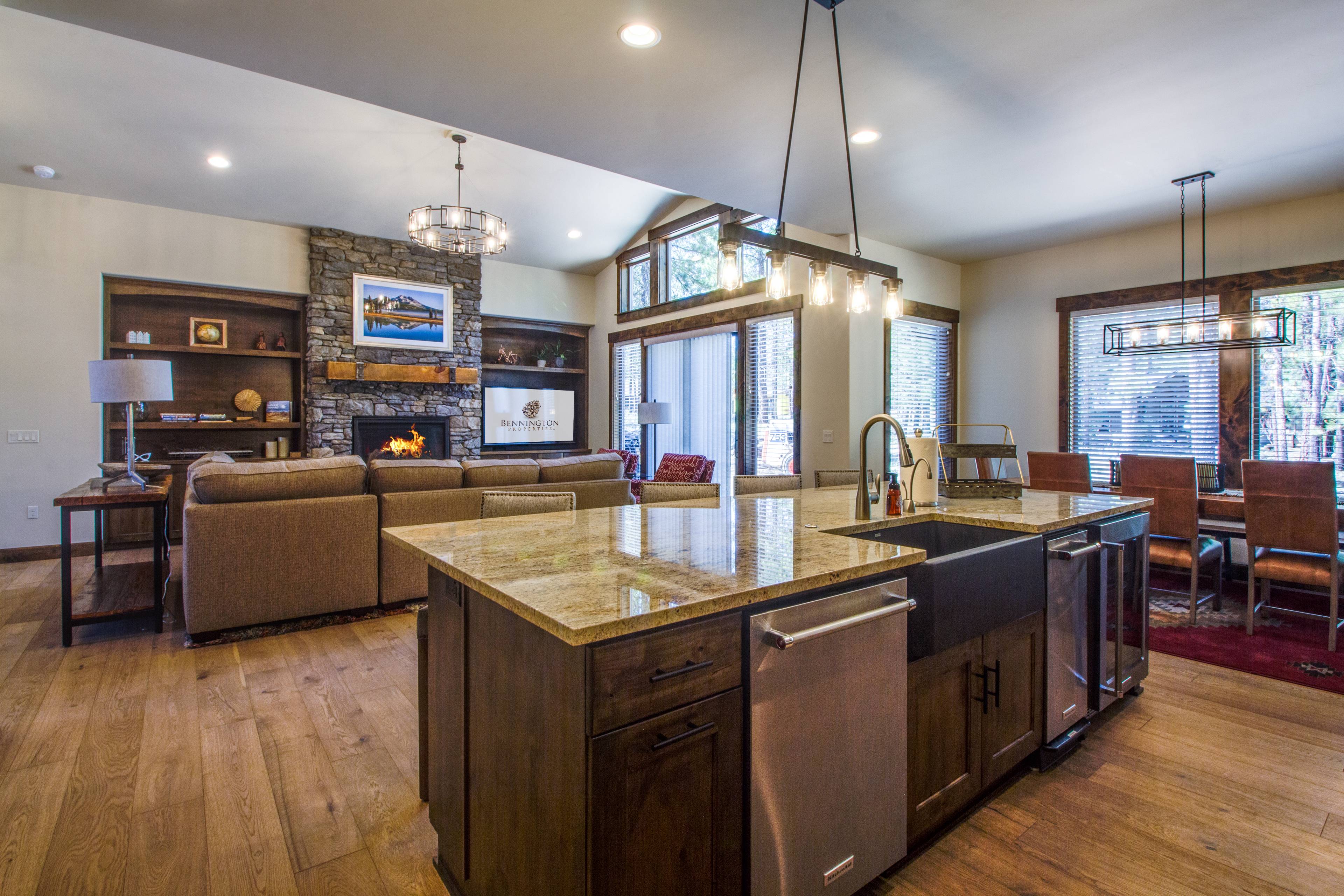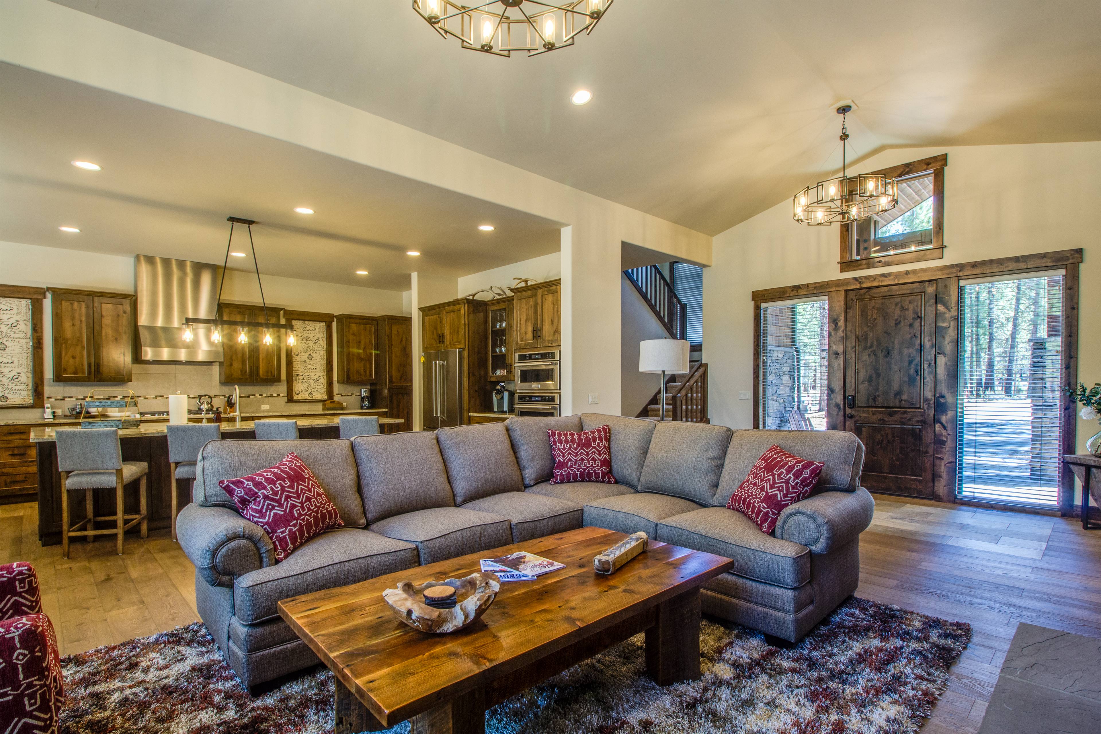 This warm and inviting luxury home is located in beautiful Caldera Springs a short trek to all the natural beauty that Central Oregon has to offer. The custom-built home includes locally made furniture throughout and the interior was designed by a local Sunriver designer, specifically to be a luxurious family vacation home. With high ceilings and upscale furnishings throughout, you can relax in comfort and style.