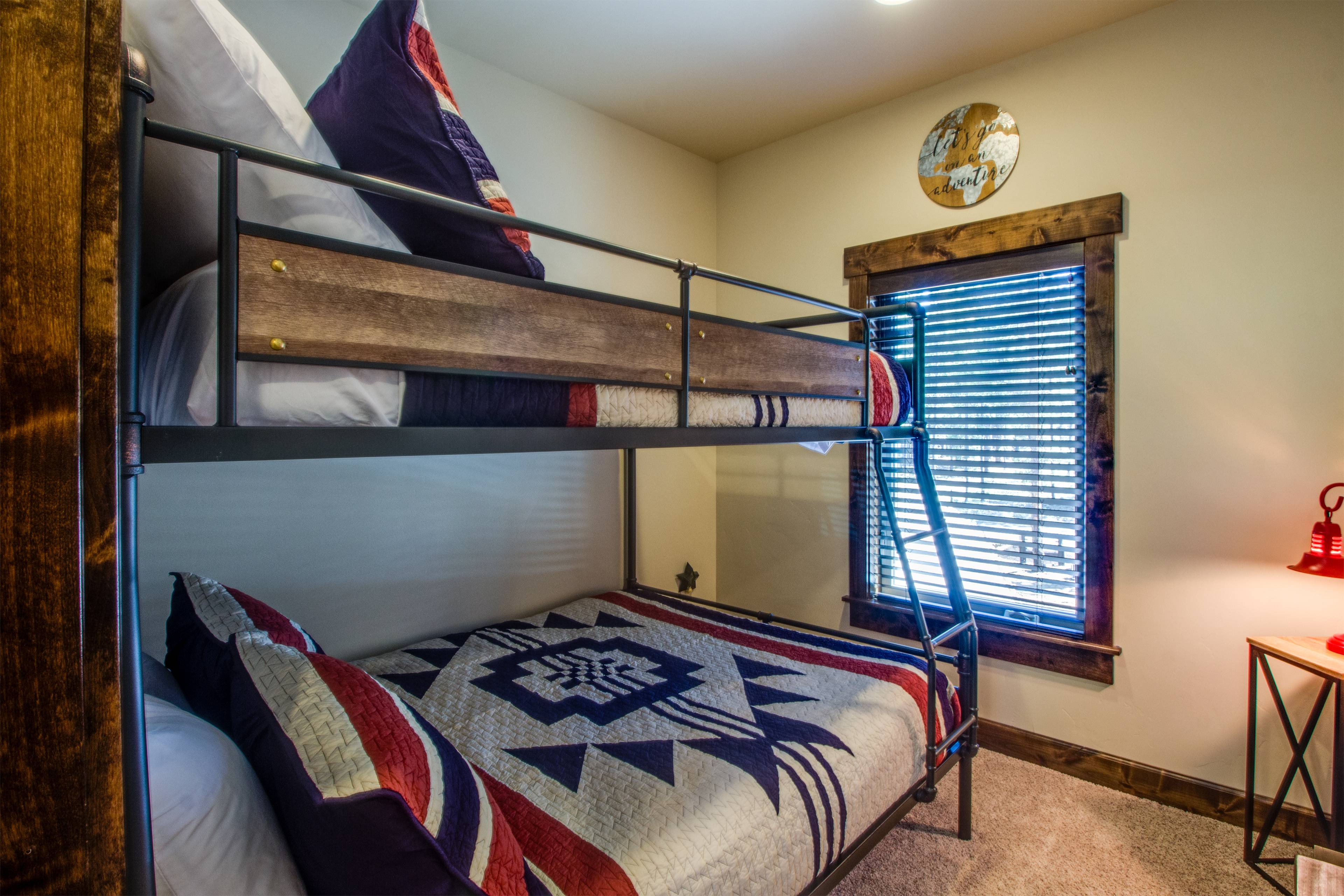 Three additional bedrooms and the loft are upstairs. Bedroom One has a Pyramid Bunk Bed. Bedroom Two has 2 twin beds (with a king conversion option). Bedroom Three is an Ensuite with King Bed and private bathroom with a walk-in shower. There is a guest bathroom with shower/tub combo and a loft with game console, DVD player and large TV for all to enjoy. All bedrooms have cable TV.