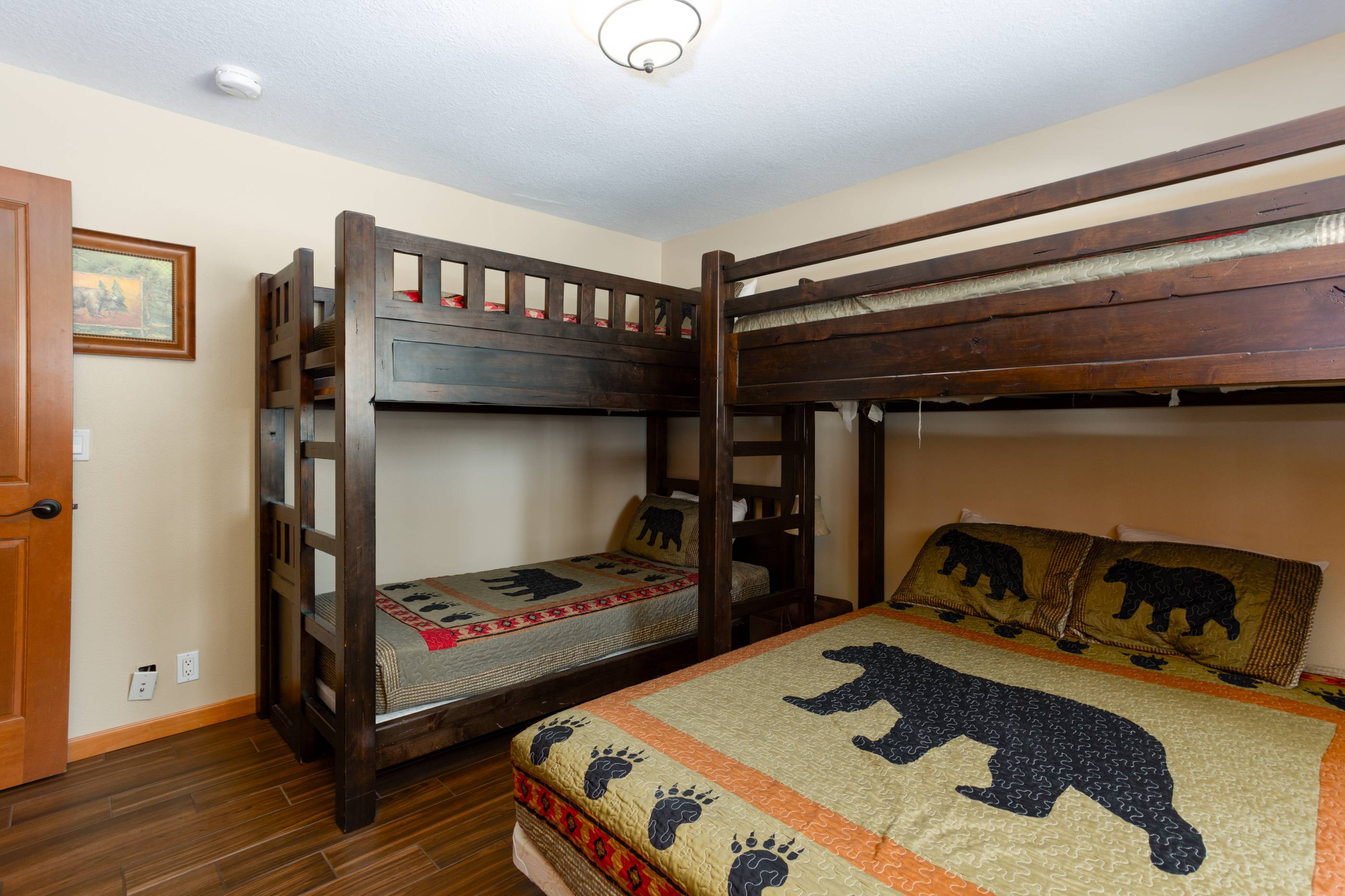 Bunk Room with twin bunk beds and a pyramid bunk with a twin over Queen