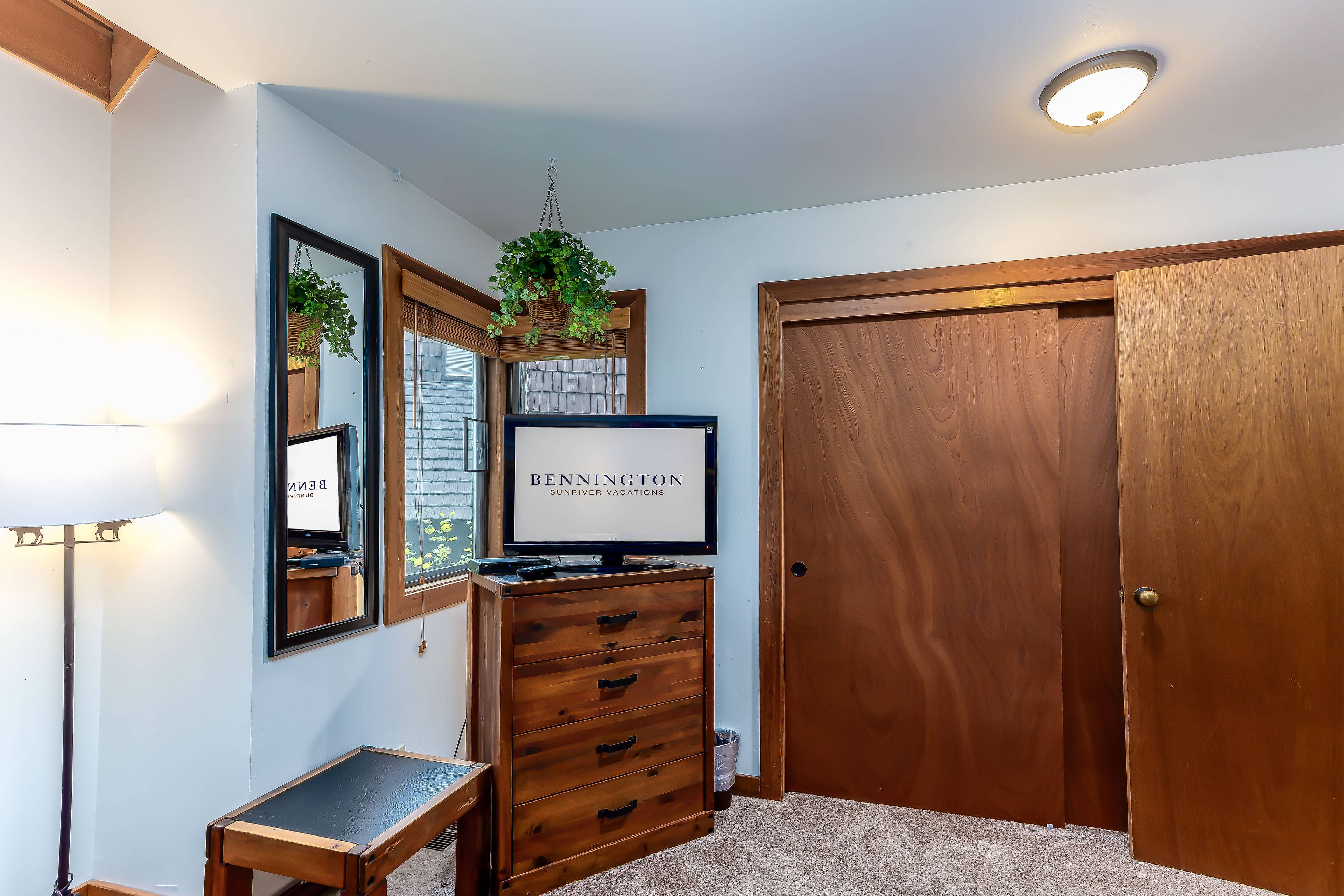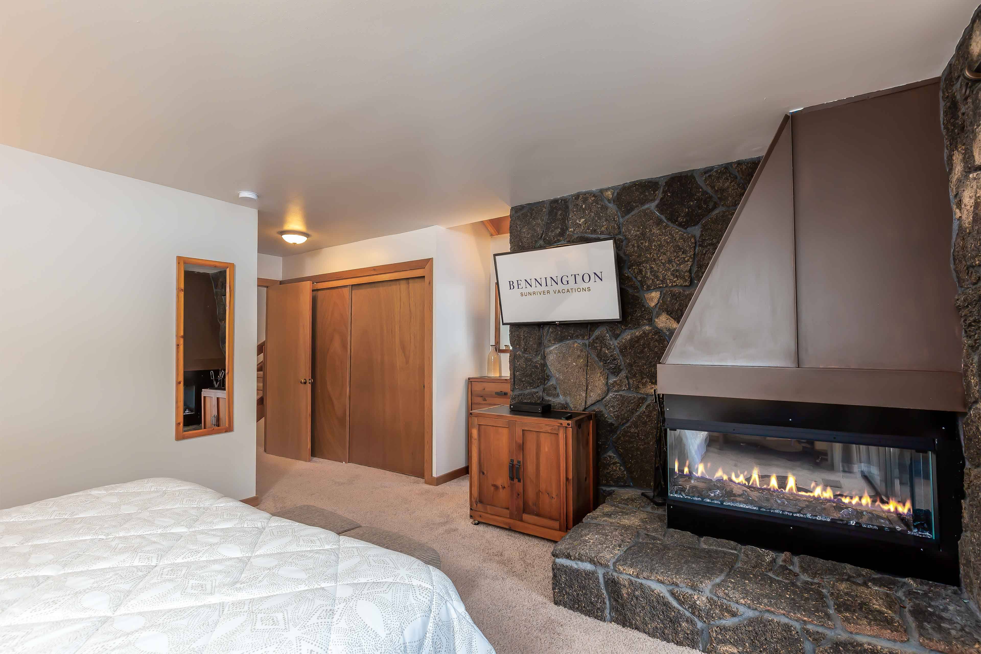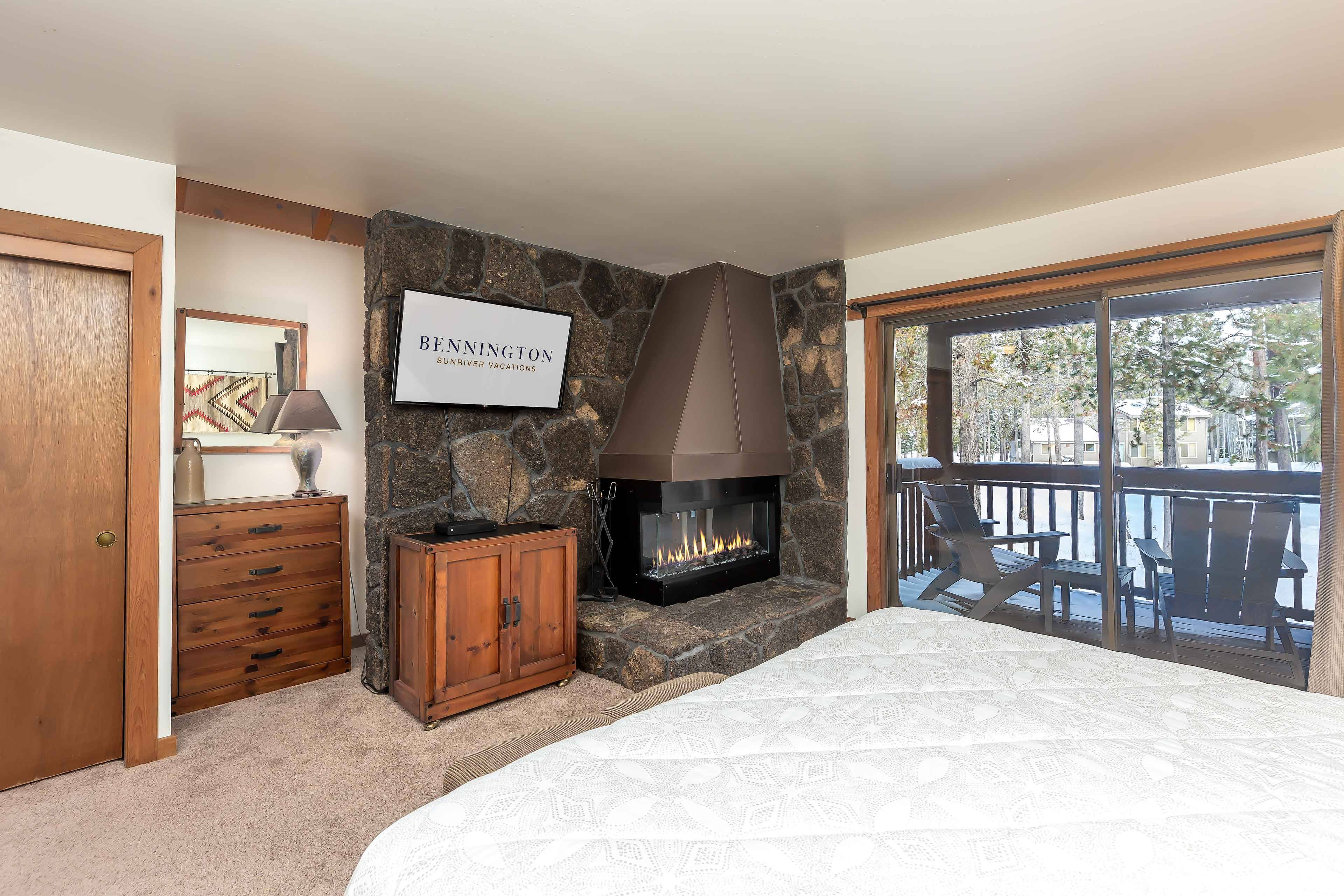 Great location across the street from Sunriver Village. Wasn't noisy at all and nice to be close to everything. Really good communication from Bennington. This condo is on three levels with the kitchen/living room at the top and the 2 bedrooms and 2 bathrooms on the middle level (three short, carpeted flights of stairs).The two upper levels have balconies and fireplaces-so nice and comfortable.