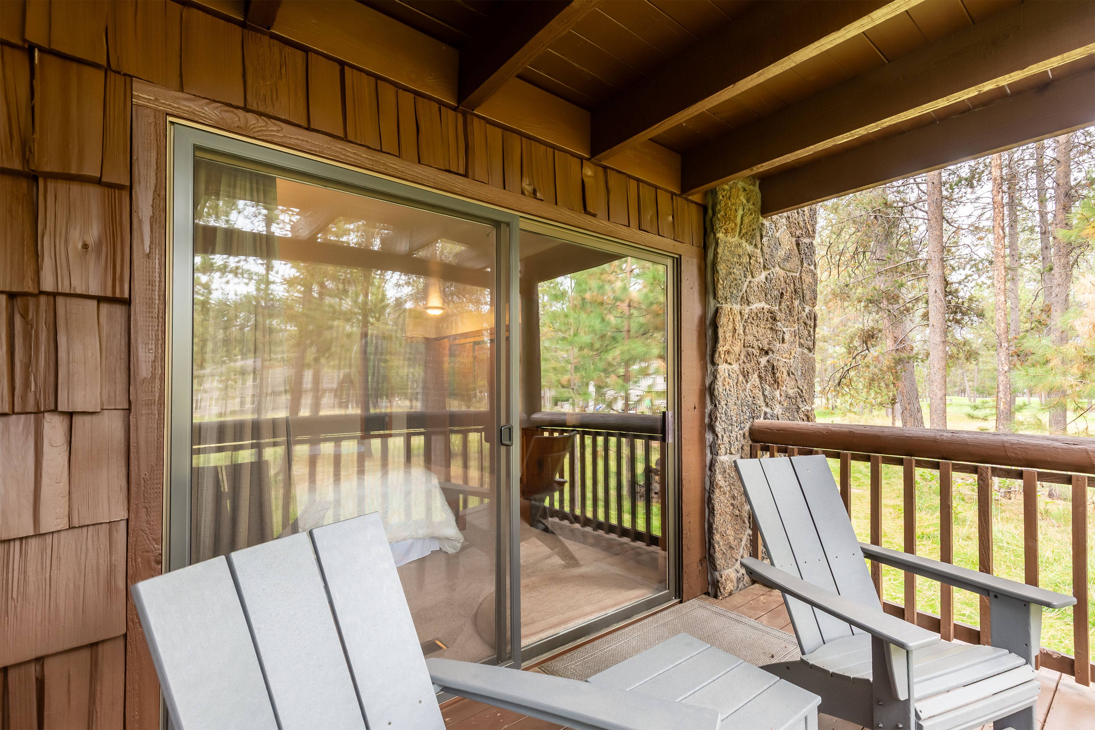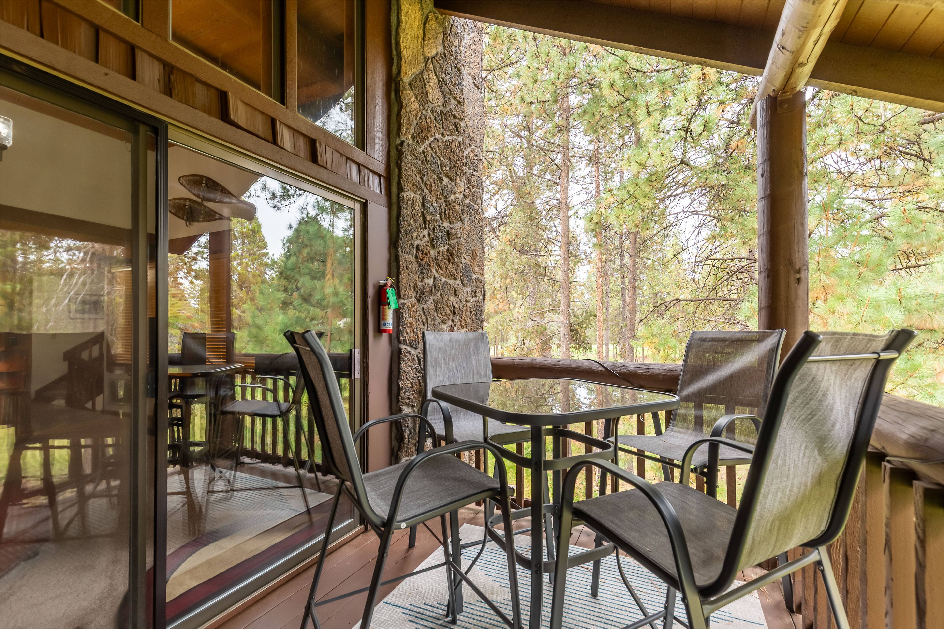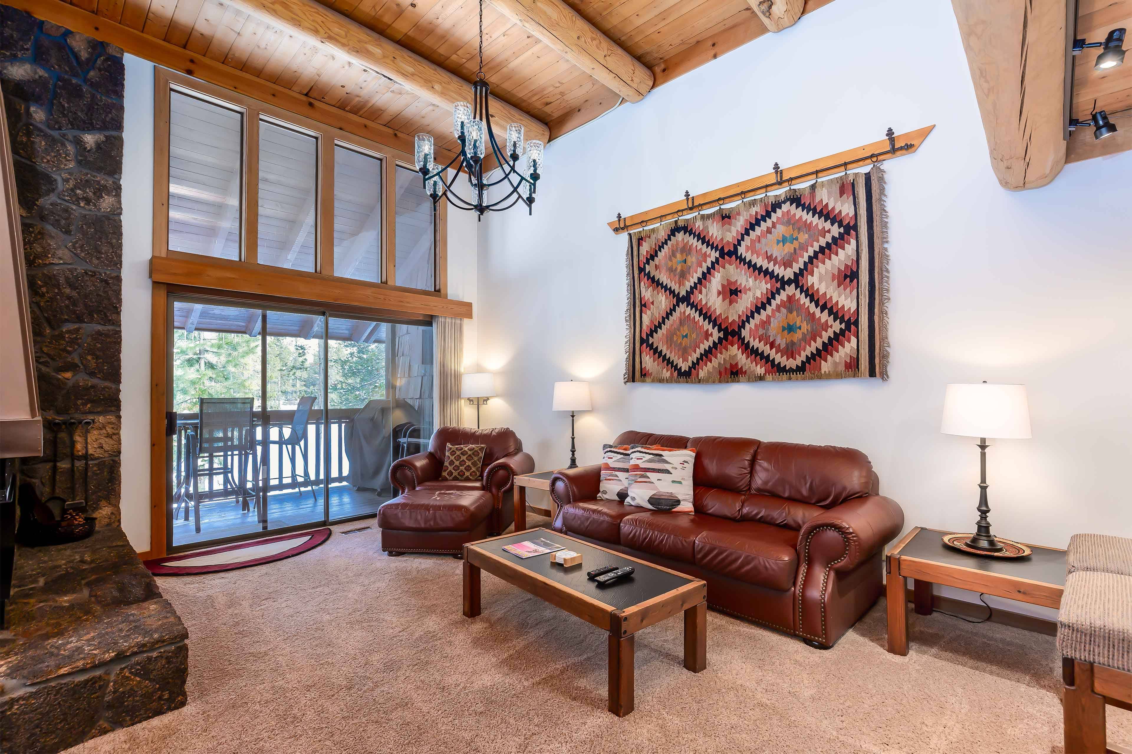 Great location across the street from Sunriver Village. Wasn't noisy at all and nice to be close to everything. Really good communication from Bennington. This condo is on three levels with the kitchen/living room at the top and the 2 bedrooms and 2 bathrooms on the middle level (three short, carpeted flights of stairs).The two upper levels have balconies and fireplaces-so nice and comfortable.