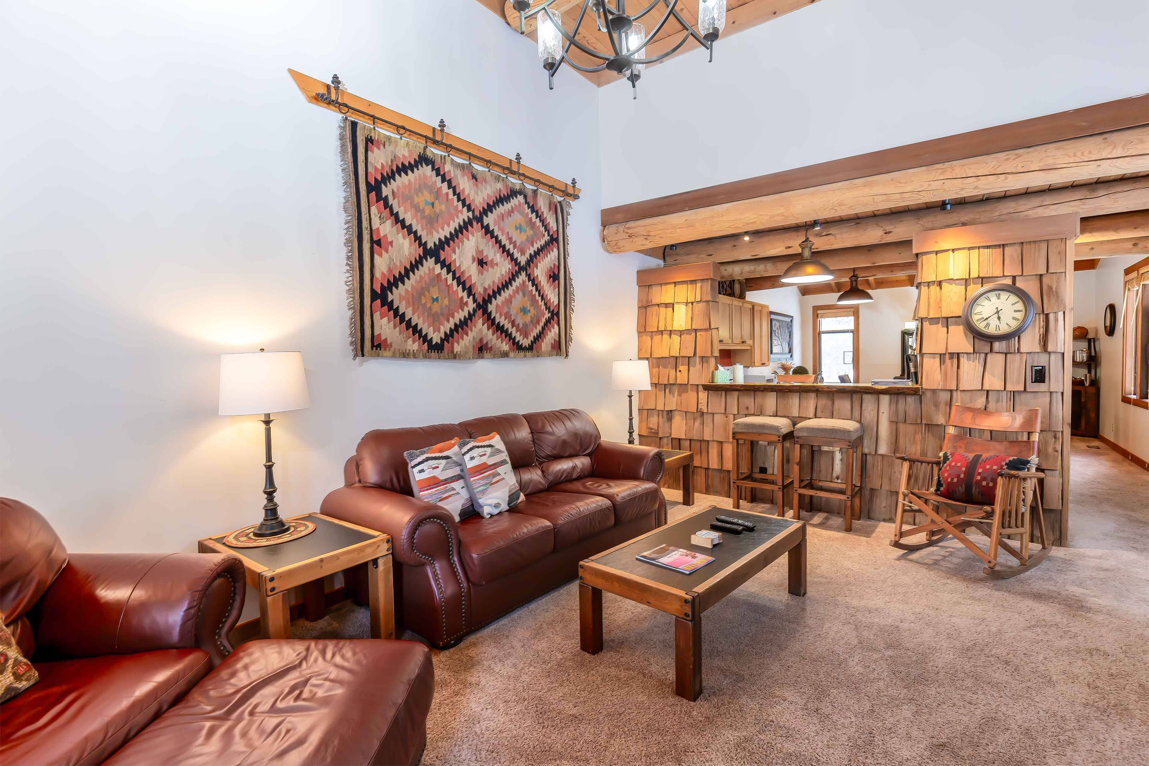 Charming, cozy, and cute as a button—9 Wildflower will instantly win you over with its classic cabin style and modern comforts. This thoughtfully appointed 2-bedroom, 2-bath condo features vaulted ceilings, cedar shingle accents, air conditioning, and two electric fireplaces, offering the perfect balance of rustic charm and relaxation.