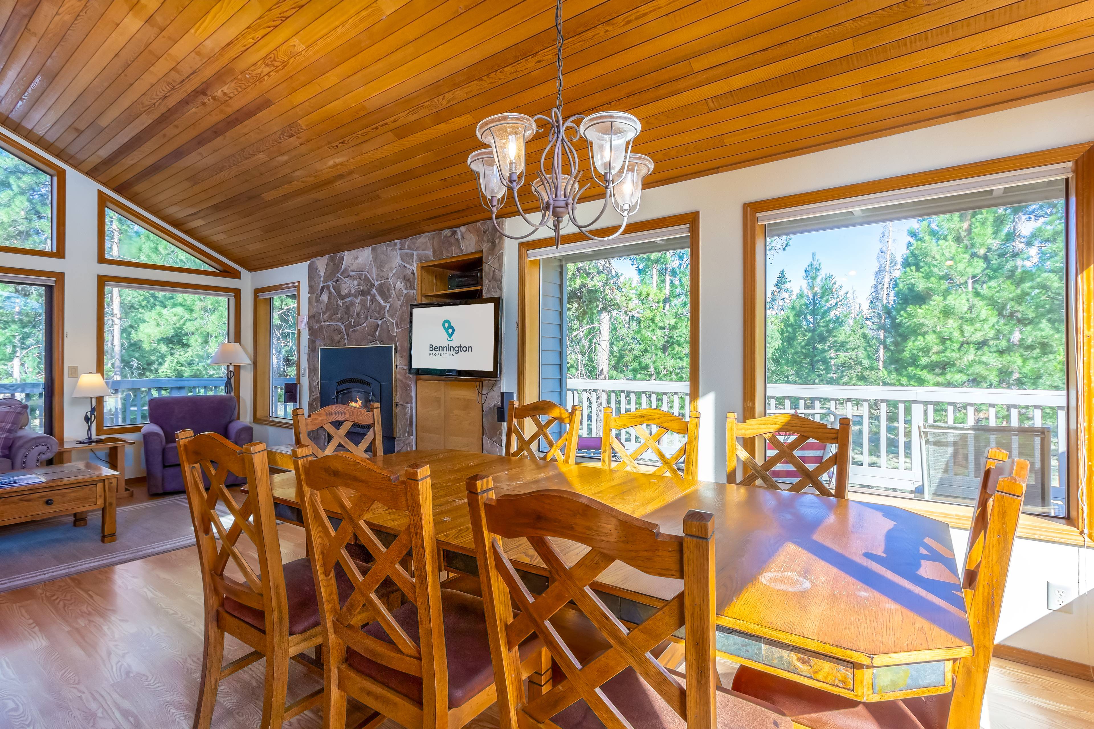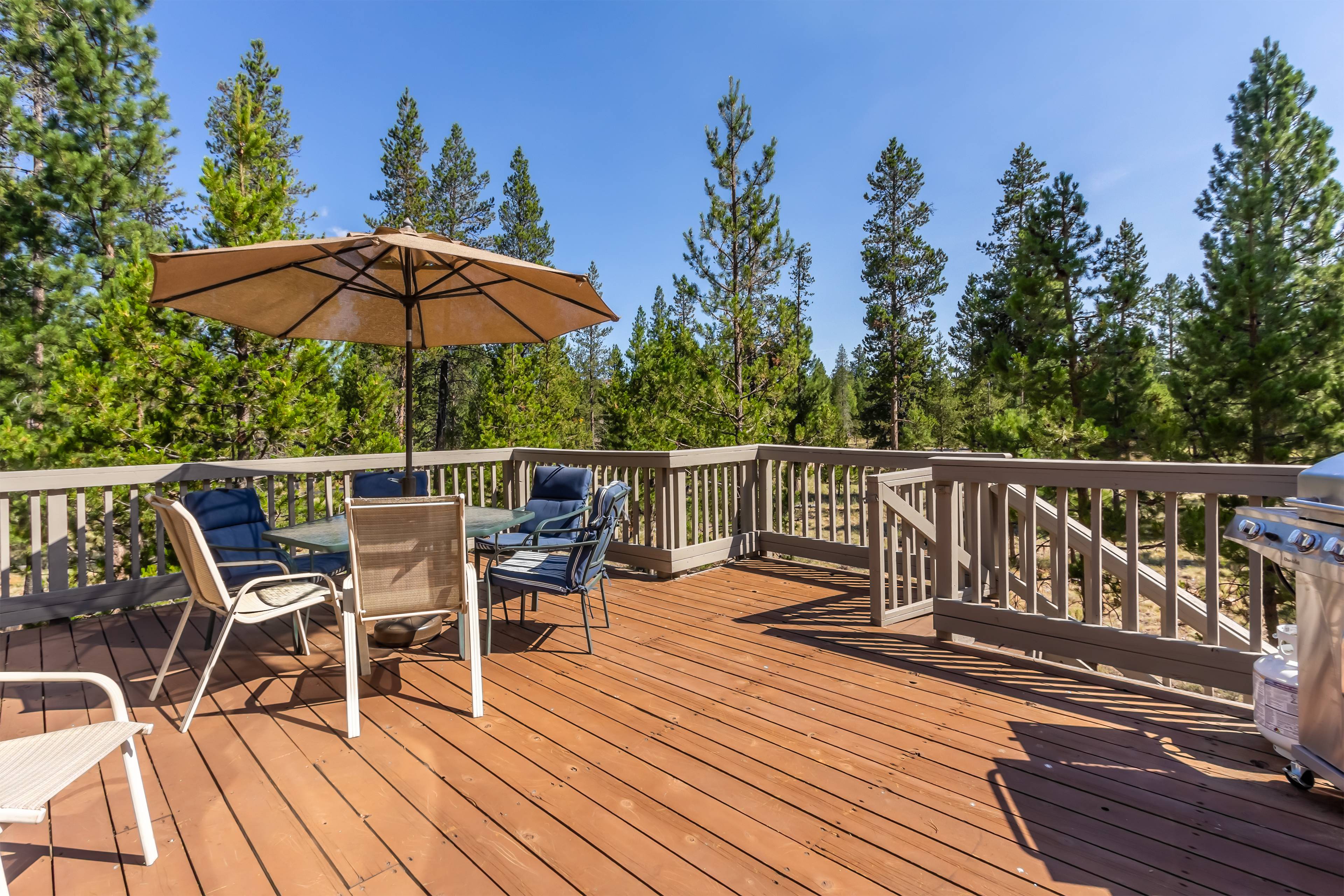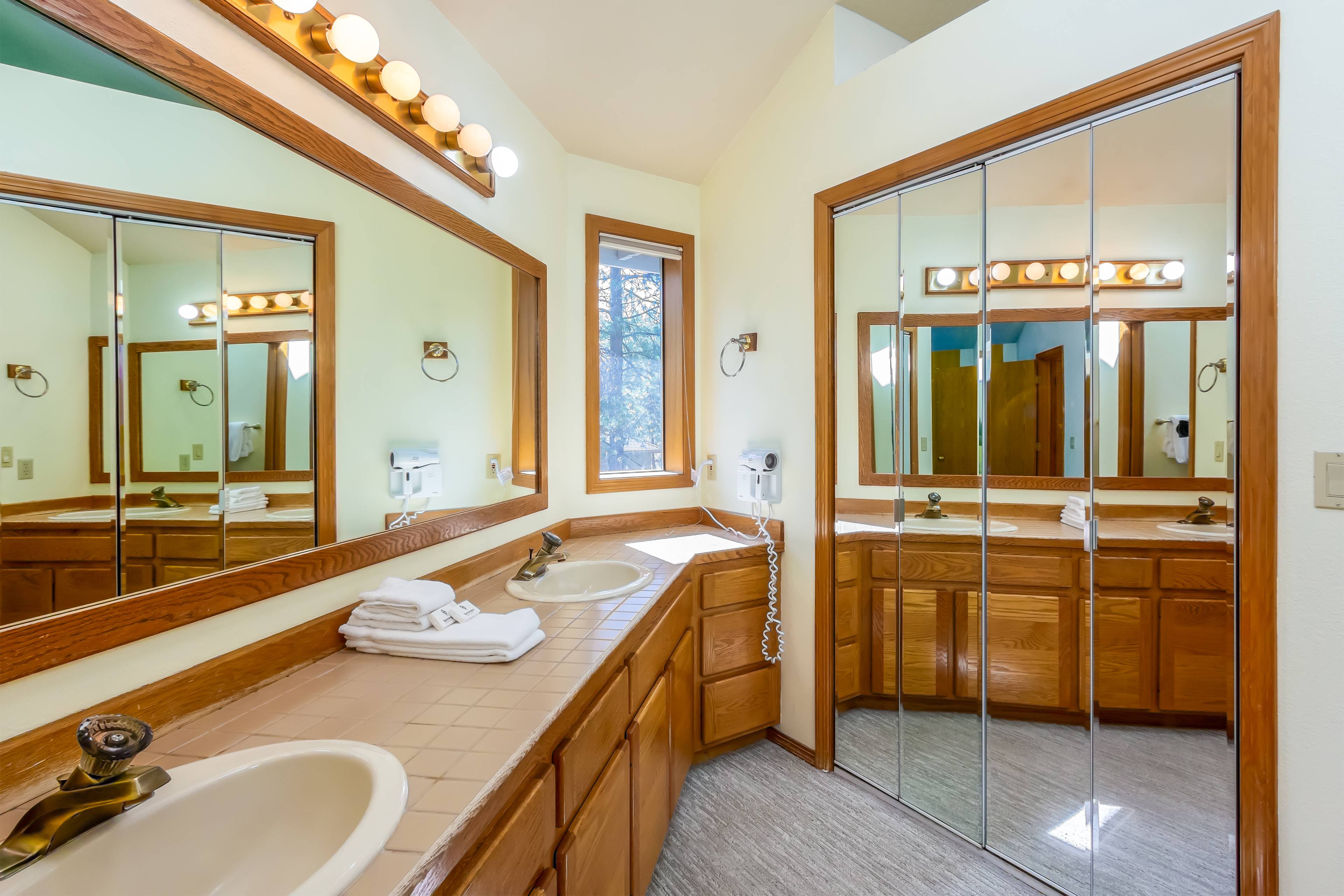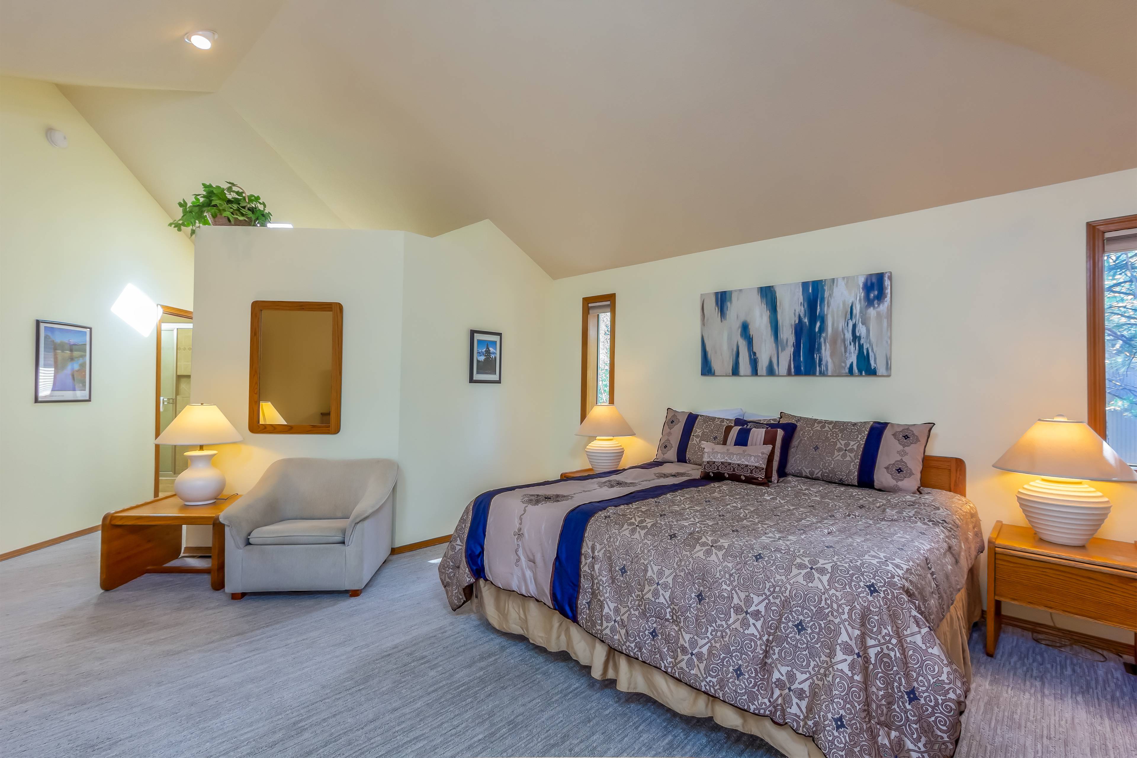 Great home in north Sunriver with tons of gorgeous natural light pouring in through the many windows. This reverse-living, air-conditioned home features a great room upstairs with cozy living room furnishings, a dining room with seating for 8, plus 3 more at the breakfast bar, and a fully stocked kitchen with a Keurig.