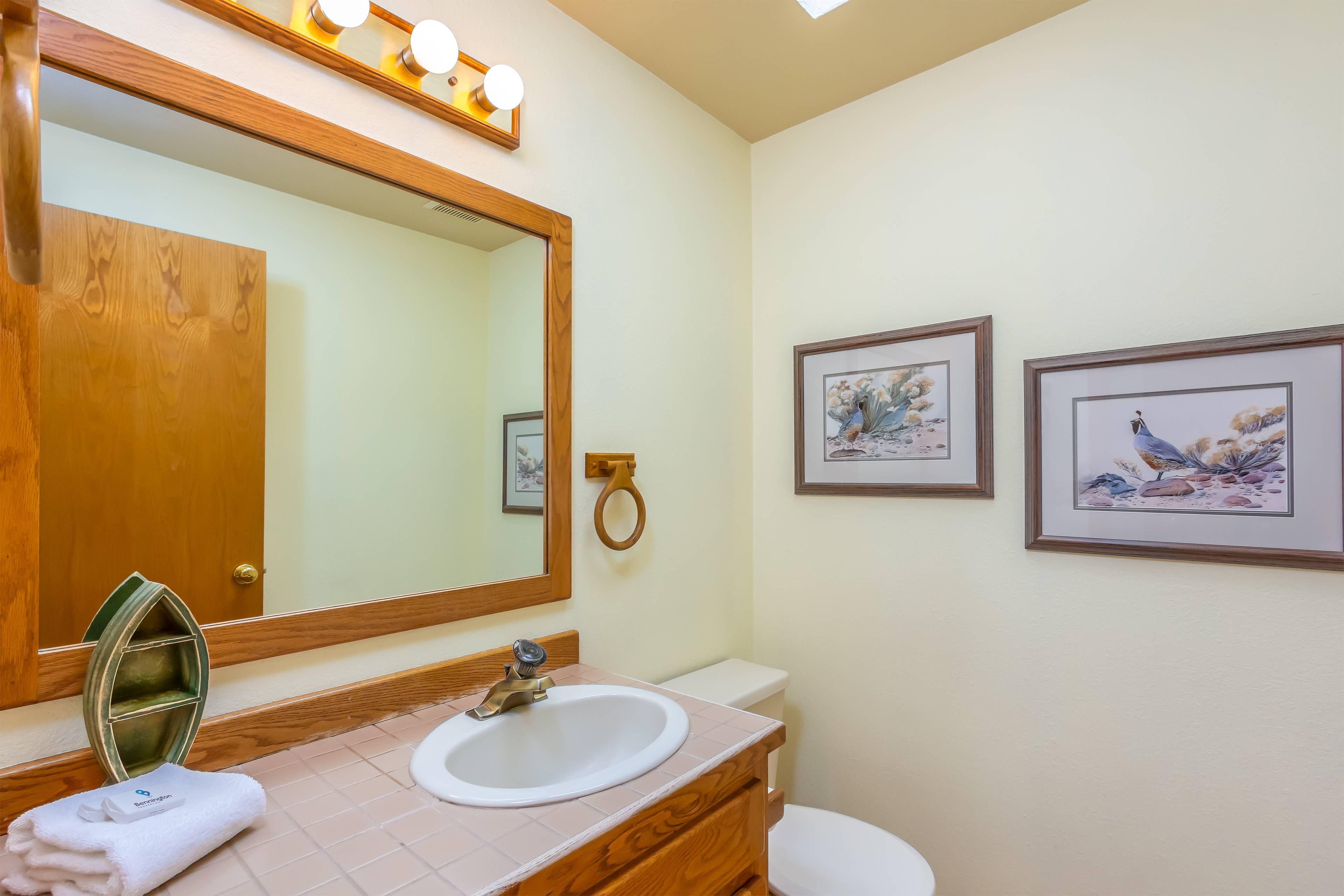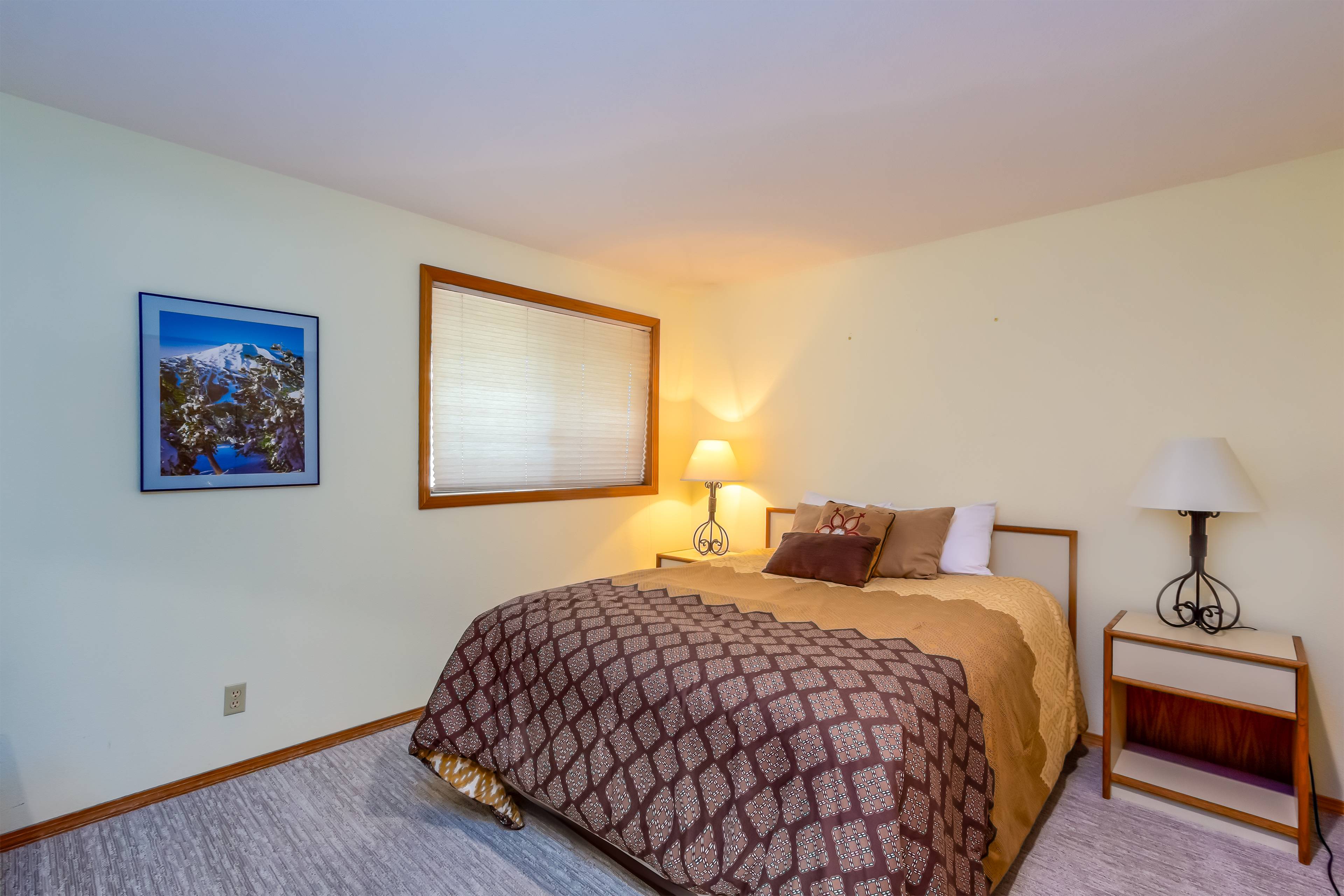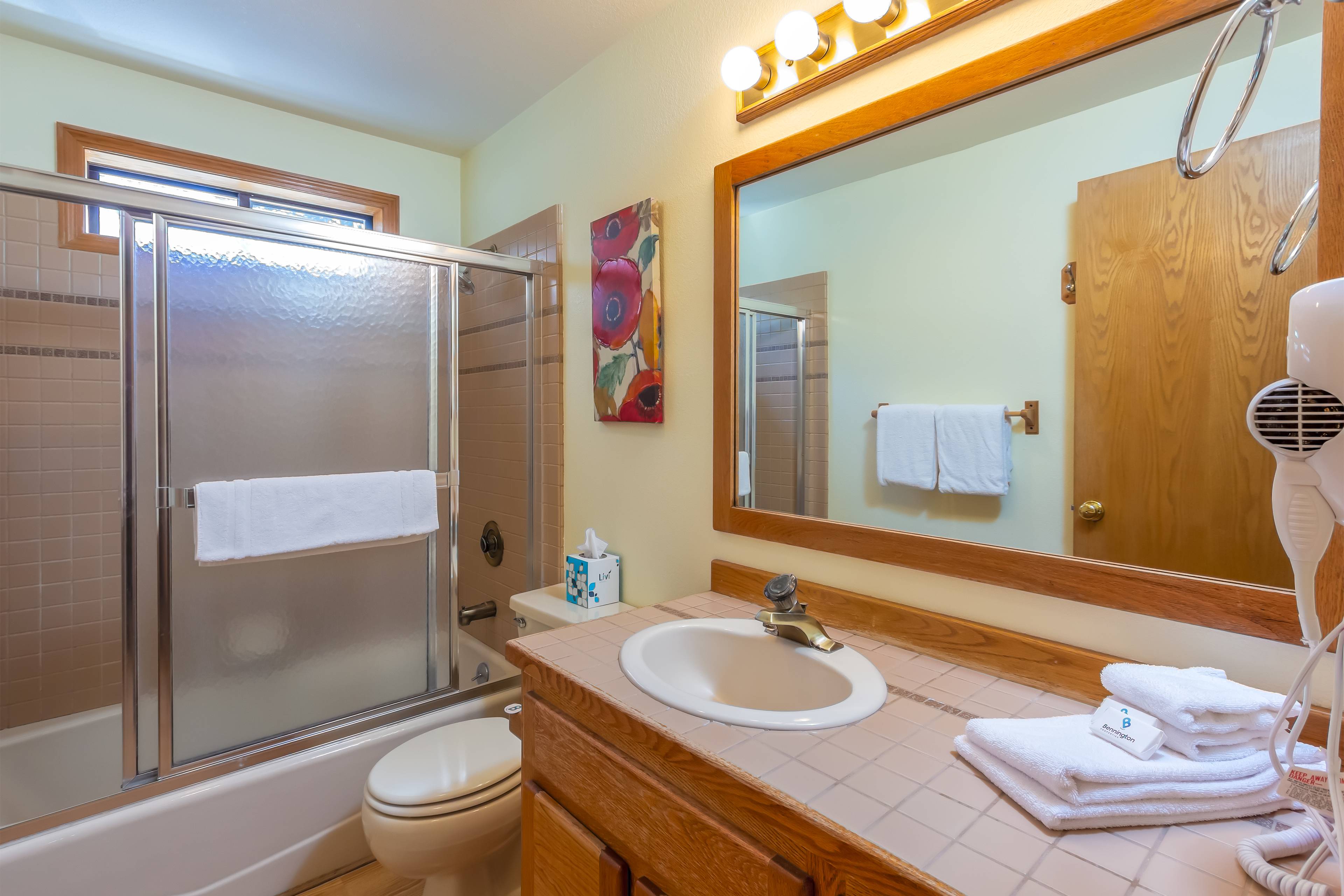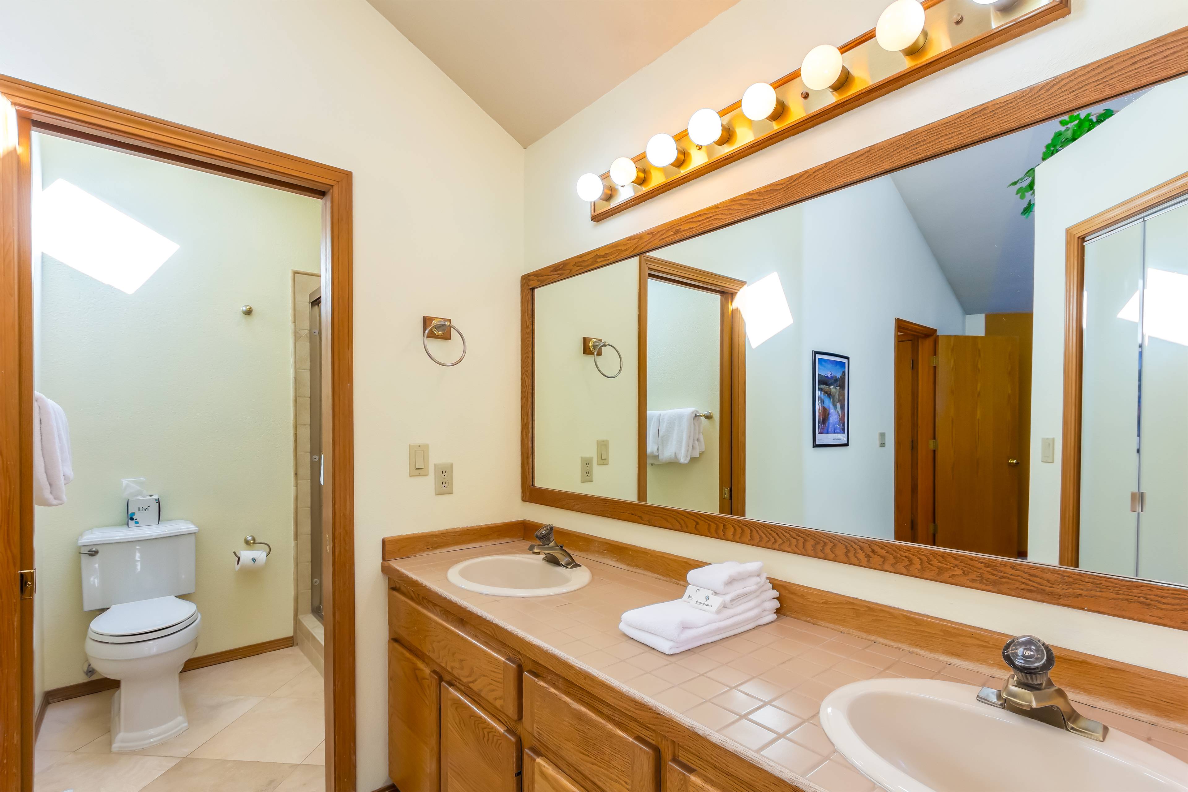 Great home in north Sunriver with tons of gorgeous natural light pouring in through the many windows. This reverse-living, air-conditioned home features a great room upstairs with cozy living room furnishings, a dining room with seating for 8, plus 3 more at the breakfast bar, and a fully stocked kitchen with a Keurig.