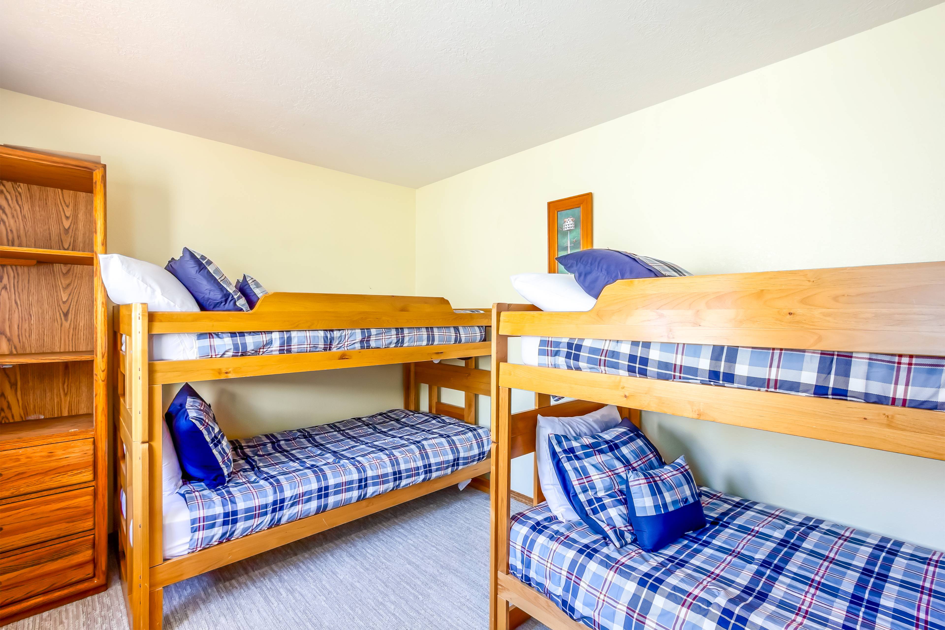 Head downstairs to find 2 queen bedrooms and a bunk room with 2 sets of bunks, T,V and a DVD player.