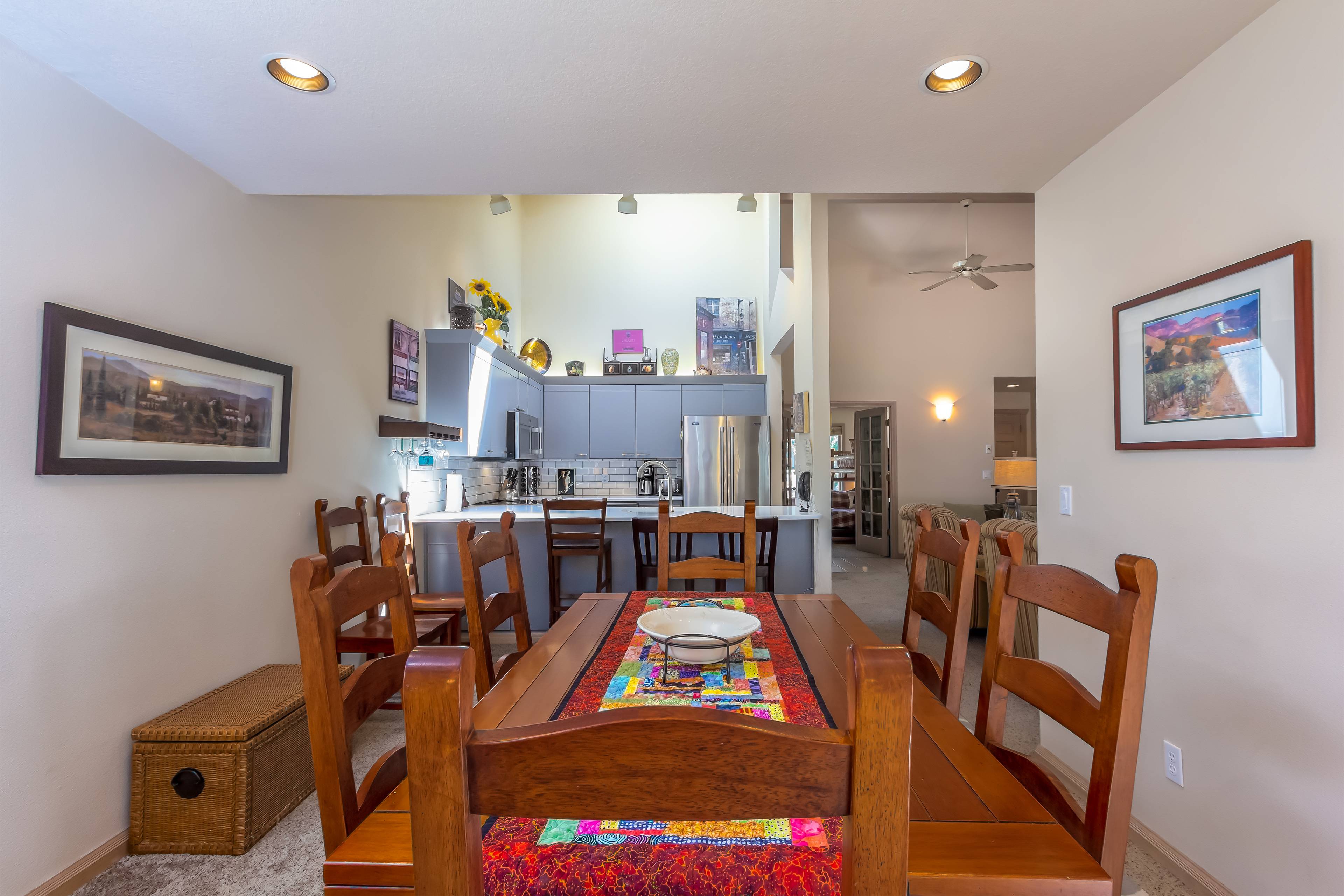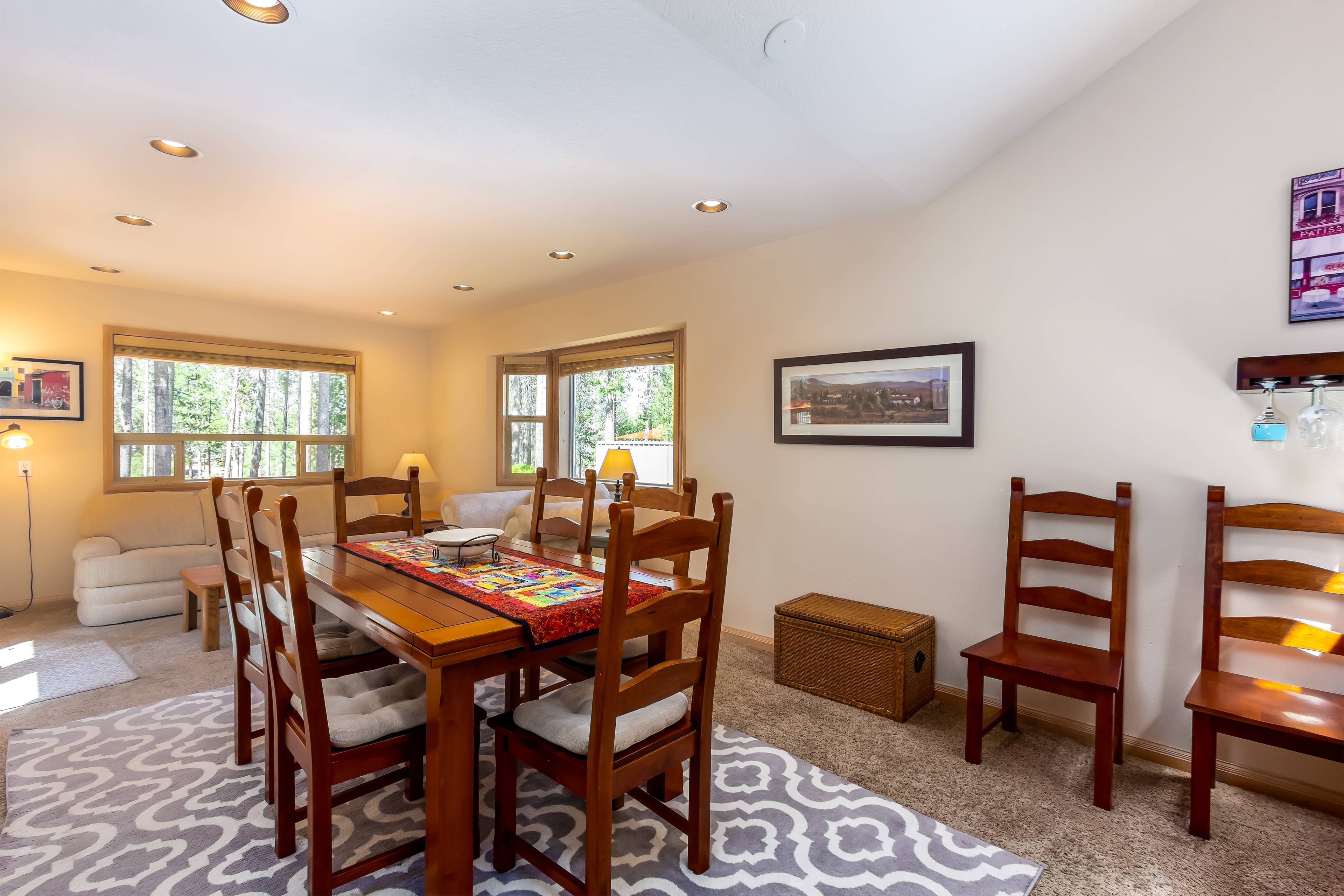 This is a spacious, single level home in the heart of Sunriver. This property has 4 bedrooms, 2 bathrooms, and a fantastic back deck. The light and bright living room boast a new flat screen TV, portable A/C, a cozy gas fireplace and plenty of seating. The adjacent dining room seats 8 and the kitchen holds all the equipment you'll need to whip up your family favorites.