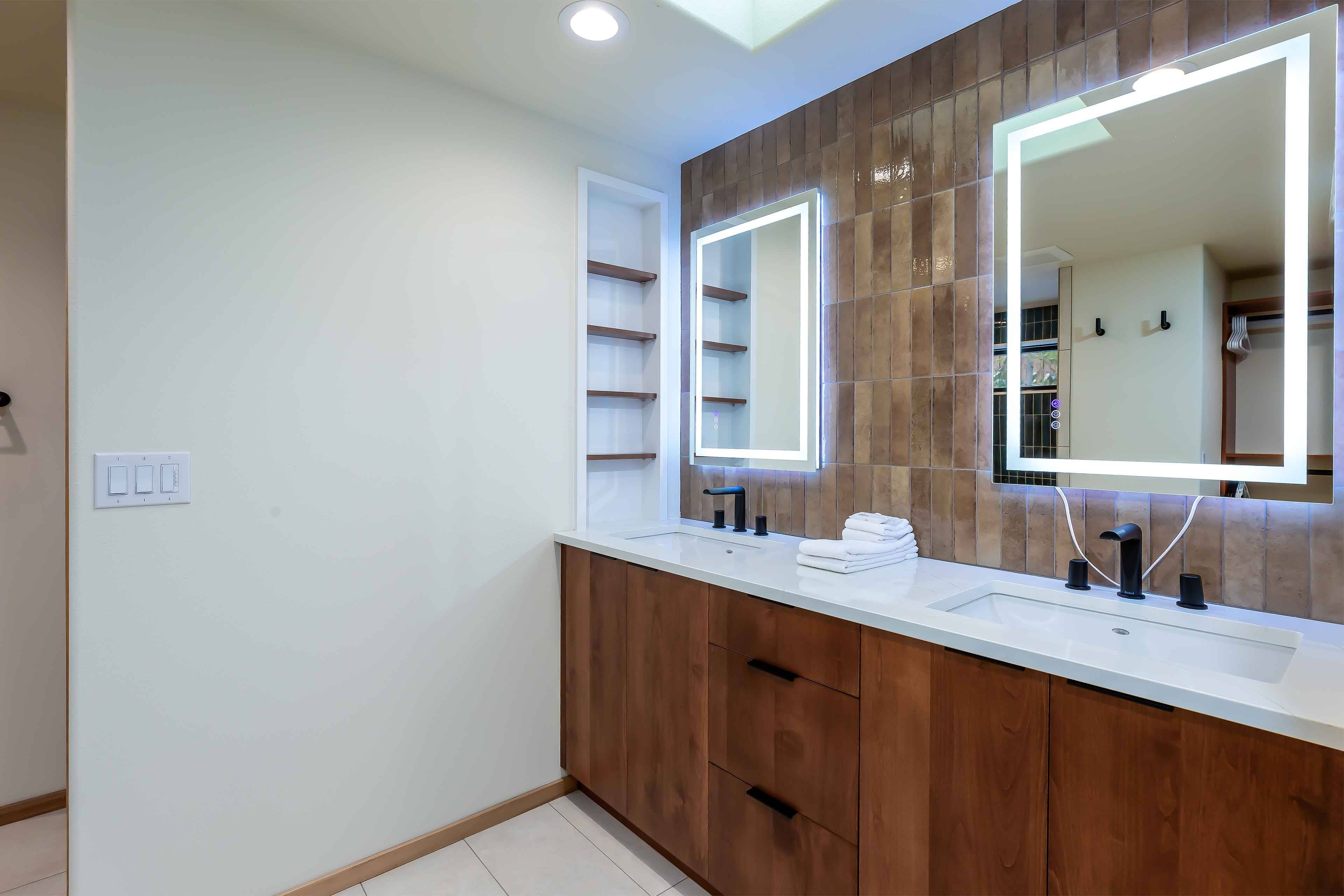 I WAS VERY IMPRESSED WITH HOW WELL THE HOUSE WAS STOCKED. WE ALWAYS BRING EXTRAS FOR COOKING, BAKING, OPENING WINE, MAKING DRINKS, (LOVE THE AMOUNT OF ICE TRAYS!) PUTTING LEFTOVERS AWAY, ETC... AND WE DIDN'T NEED ANY OF OUR THINGS EXCEPT OUR MEAT THERMOMETER. THE OPENNESS OF THE LIVING, KITCHEN & DINING AREA WAS ALSO VERY NICE AND THE QUALITY OF THE FURNITURE IS EXCELLENT. VERY IMPRESSIVE! AND WE LOVED BEING ABLE TO TURN ON THE FIRE AFTER COMING IN FROM THE COLD, BUT ALSO LOVED BEING ABLE TO TURN IT OFF WHEN WE WARMED UP! HAVING 2 MASTER SUITES MADE IT VERY COMFORTABLE FOR BOTH COUPLES. THANK YOU SO MUCH FOR SHARING YOUR BEAUTIFUL HOME WITH US.
