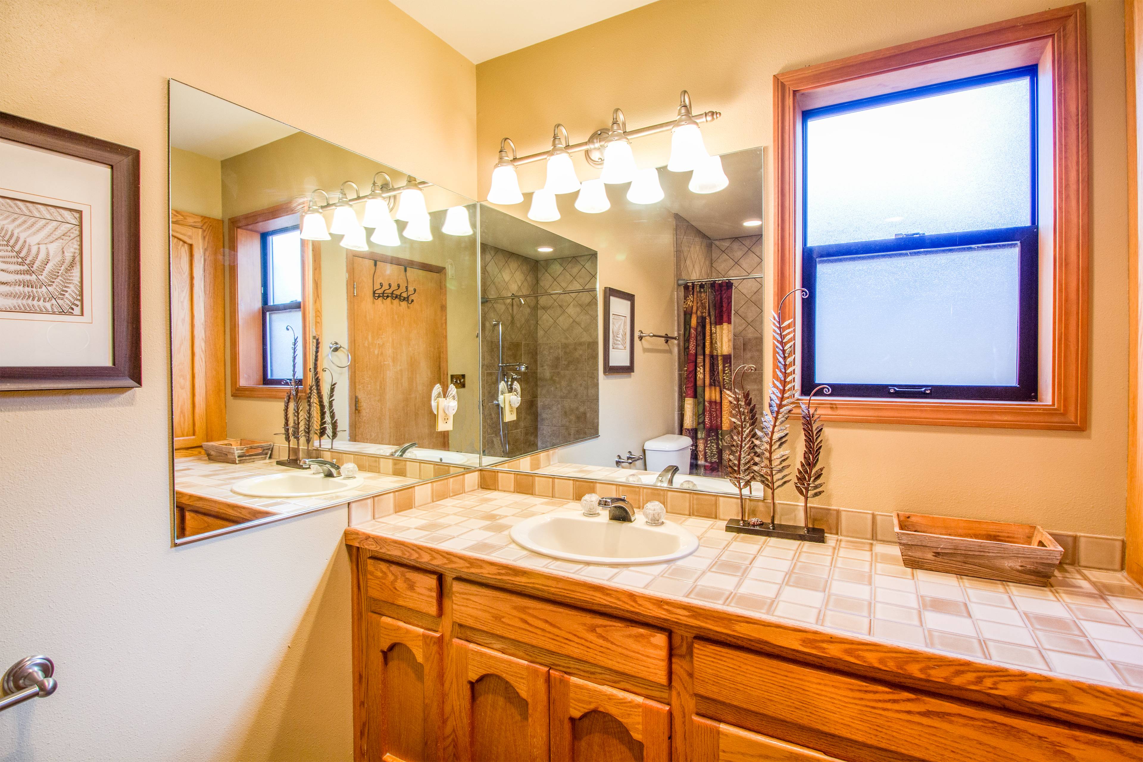 Head upstairs to find 2 additional bedrooms, each with a Queen bed and TV, a well-lit loft with a reading nook, and a large, shared bathroom. A second deck on this upper level is a great place to enjoy the peaceful setting with a warm cup of coffee in the morning!